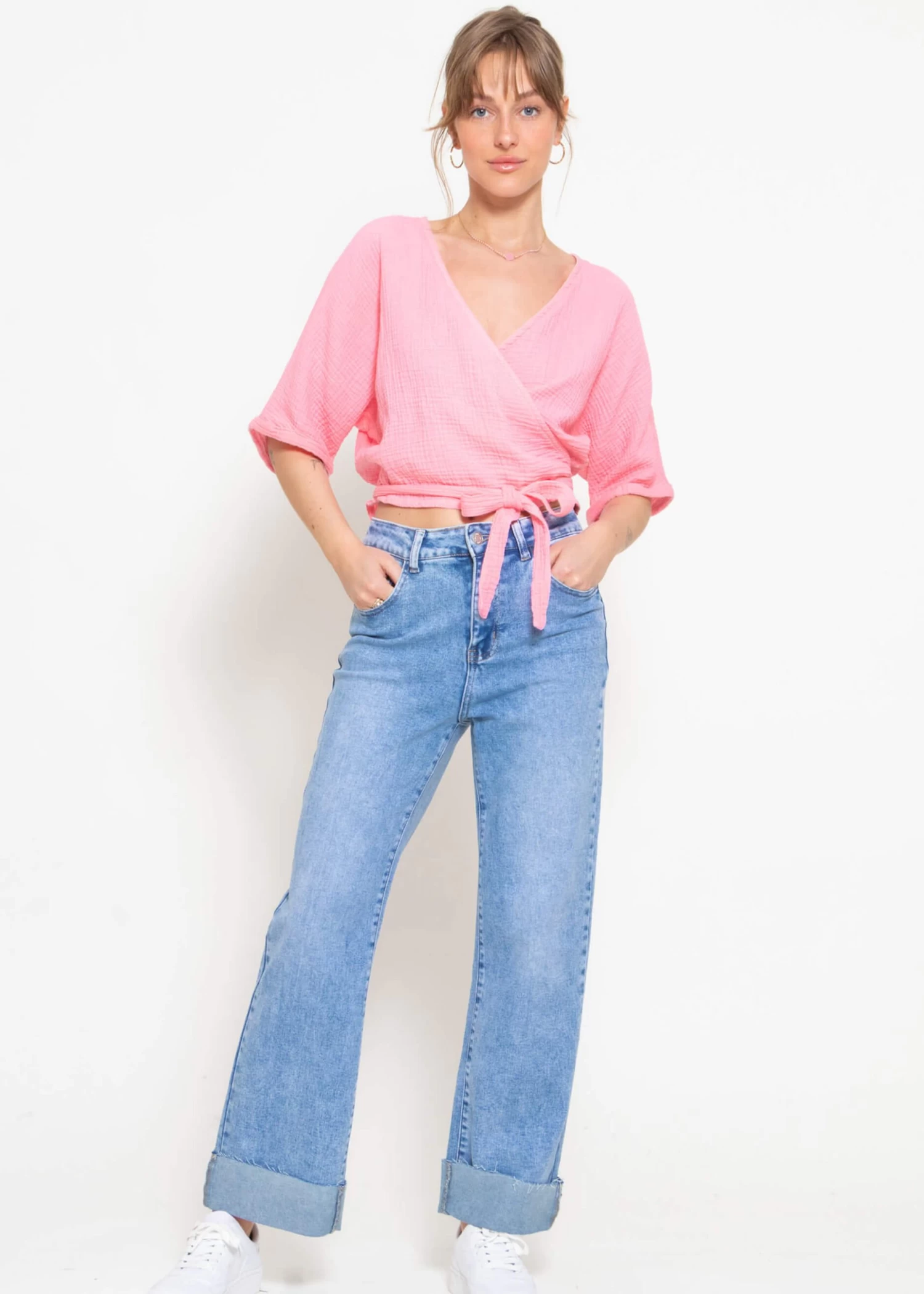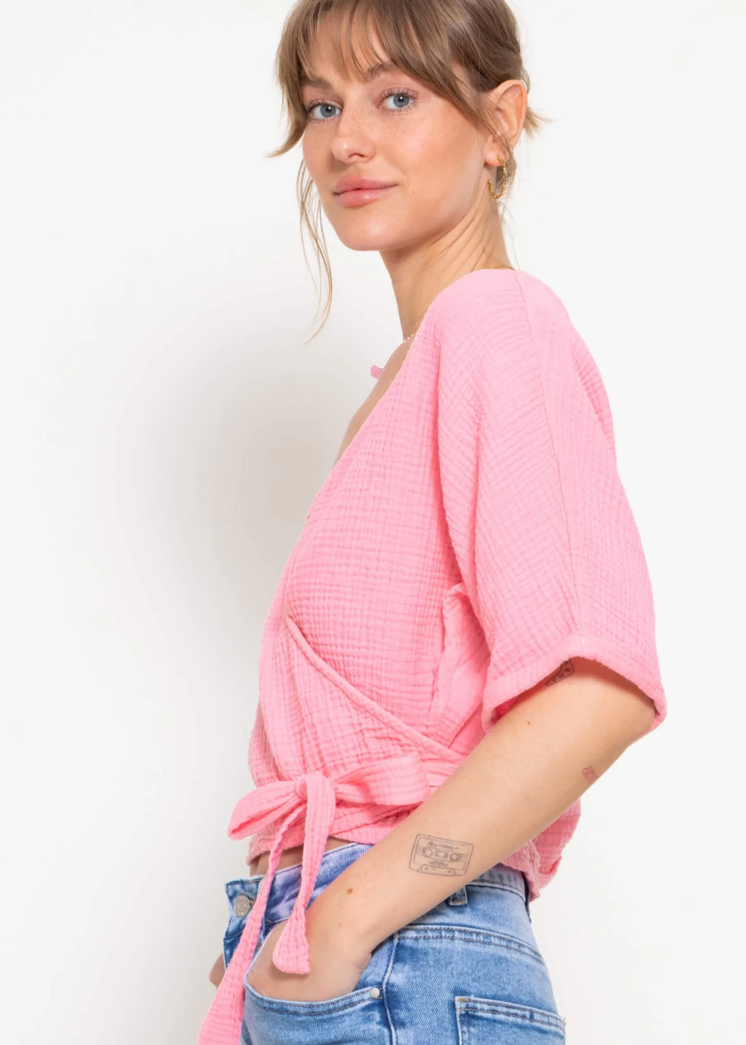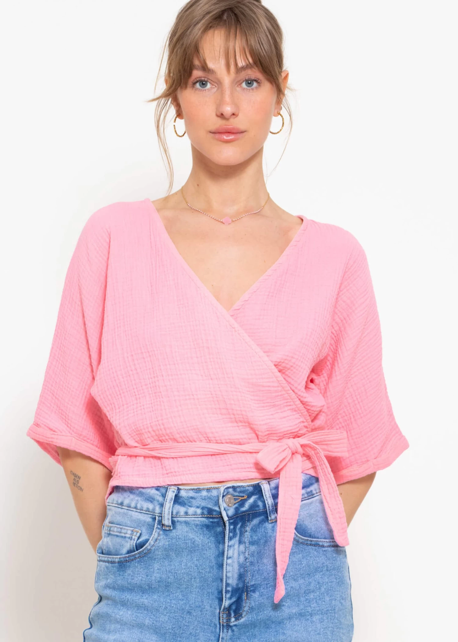 Musselin Bluse zum Wickeln in Babyrosa