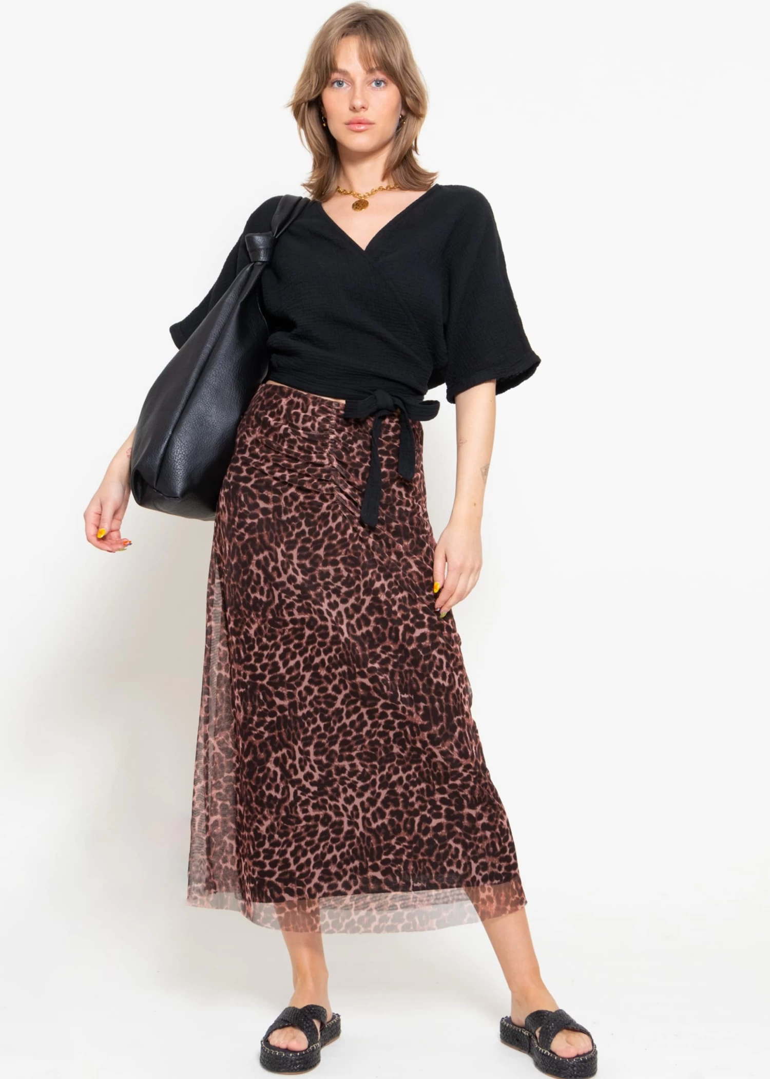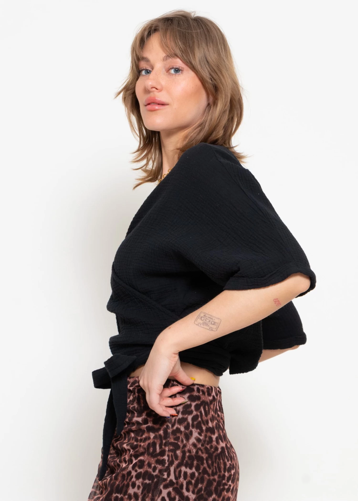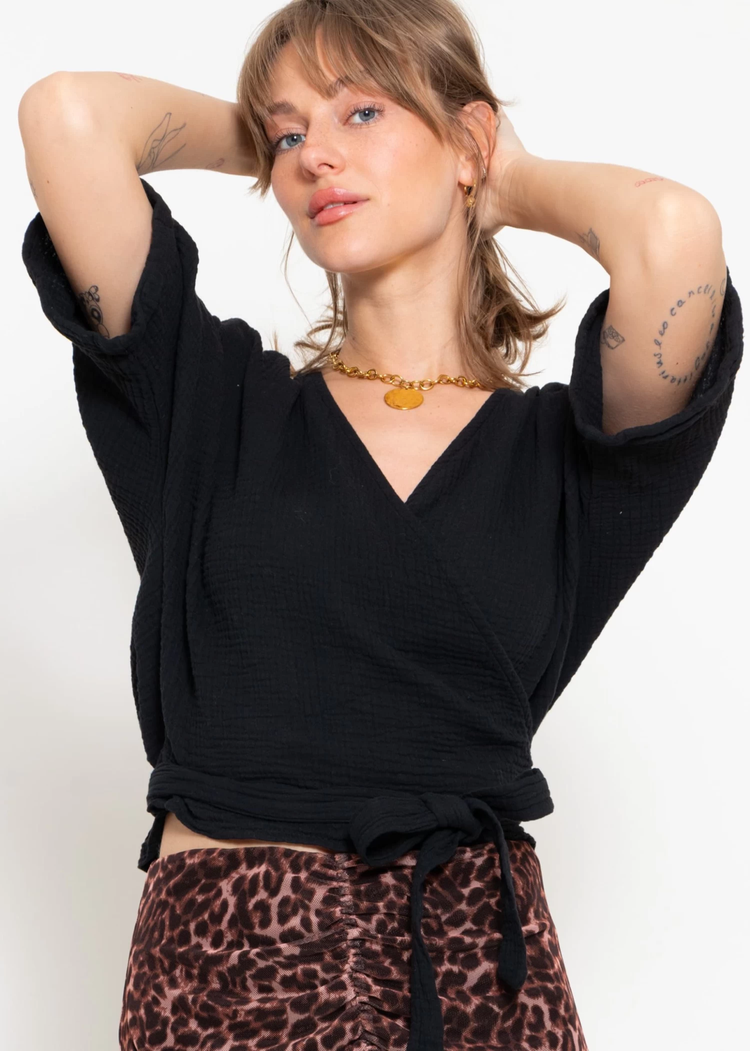 Musselin Bluse zum Wickeln in Schwarz