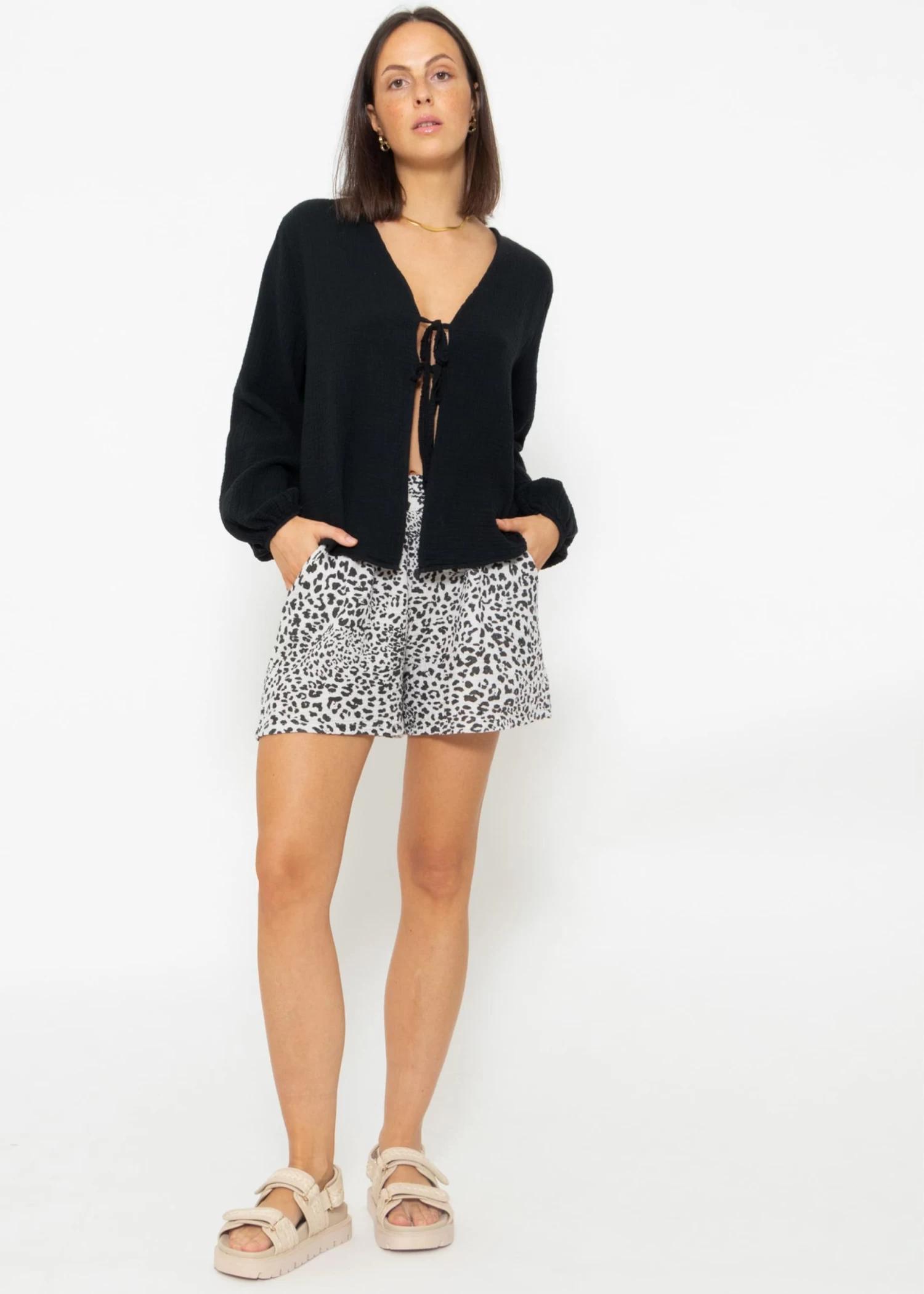 Musselin Blusenjacke mit Bindebänder in schwarz