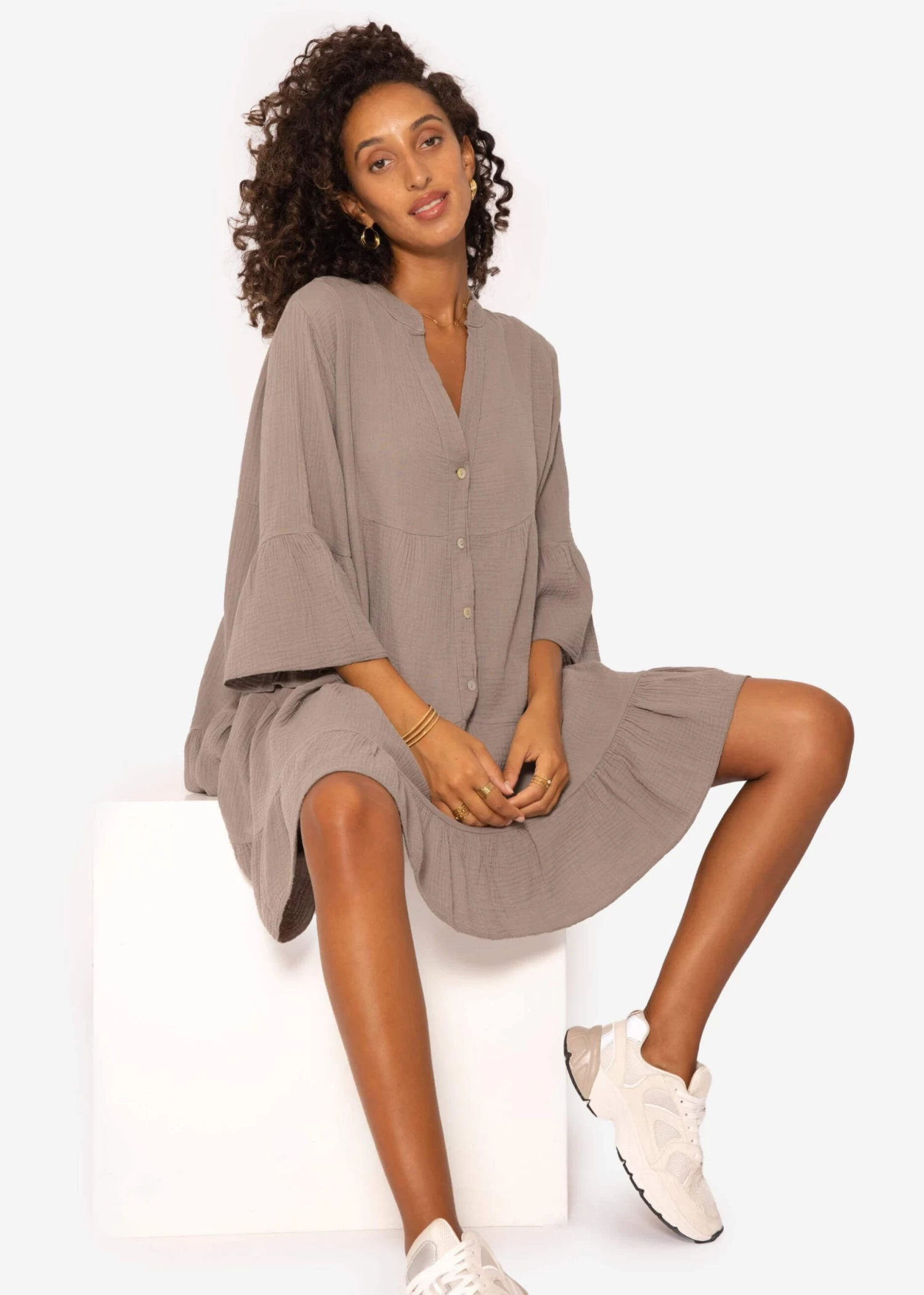 Musselin Kleid in taupe