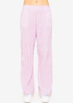 Pink/Weiß gestreifte Hose zum Schlupfen aus gemütlichem Baumwoll-Musselin. Gummibund und Bindeband sorgen für einen optimalen Halt und das weite Bein ist zugleich trendy und lässig. Die Schlupfhose verfügt über Einschubtaschen.