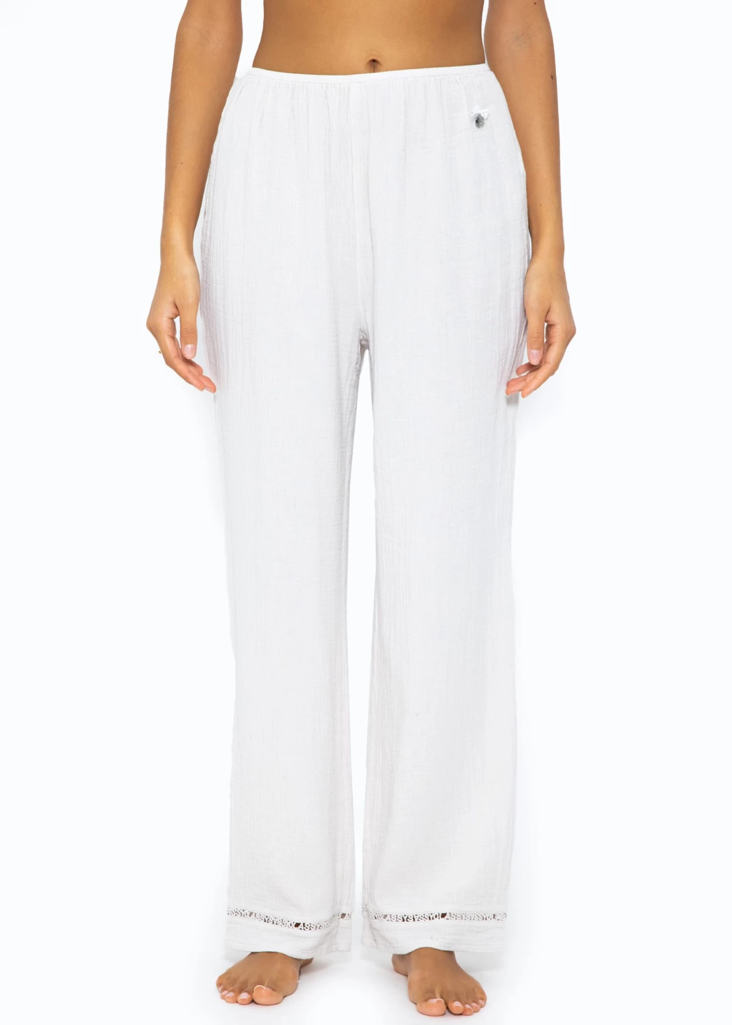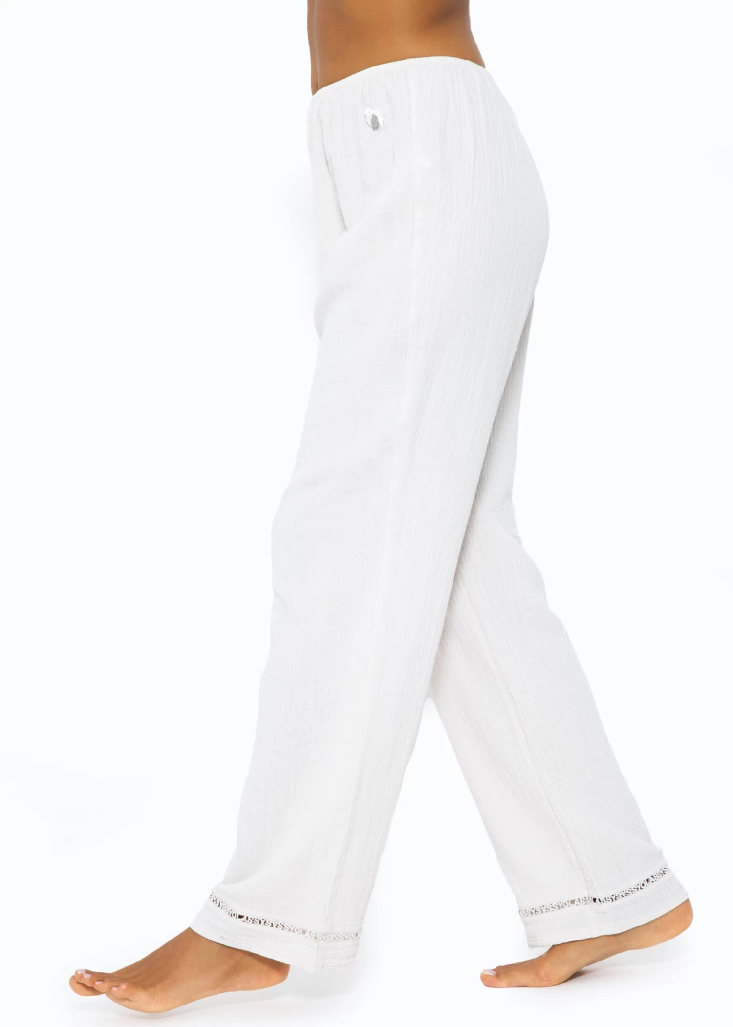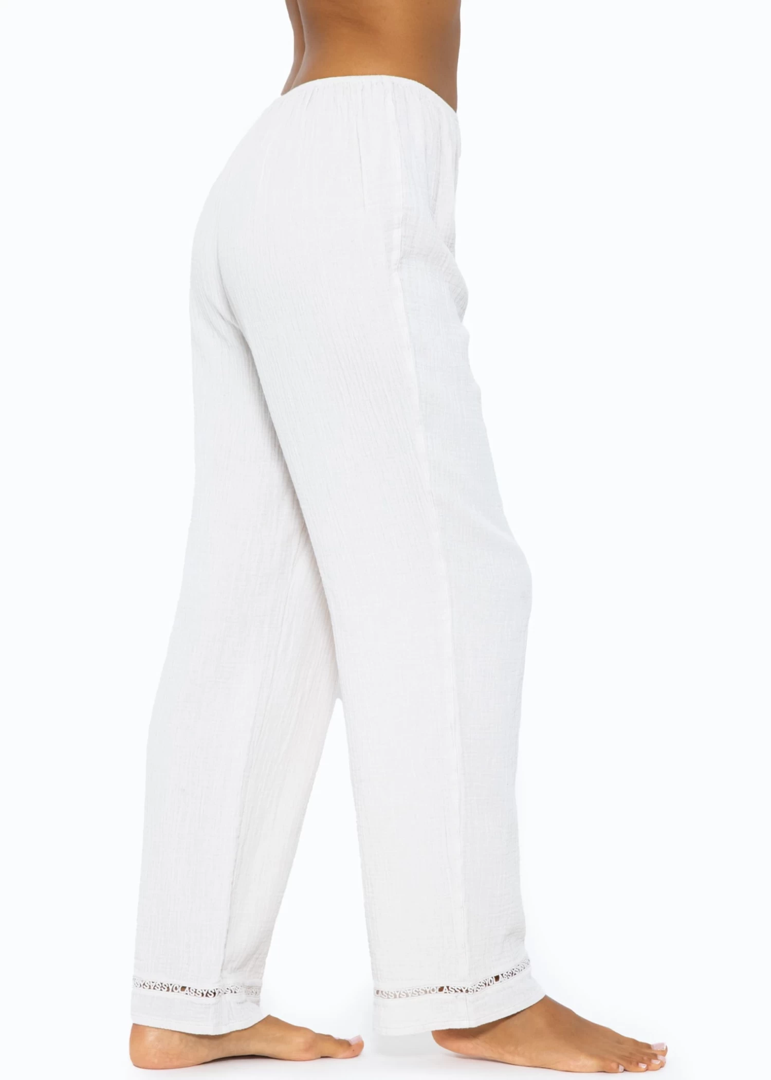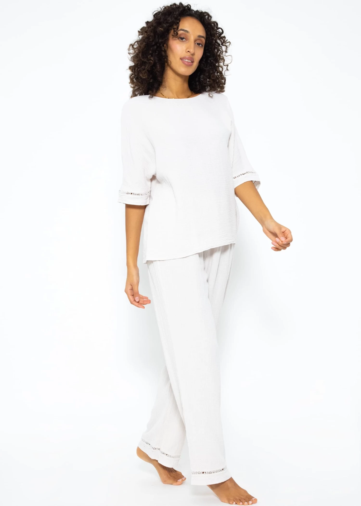 Musselin Pyjamahose mit Spitzenborte in Hellbeige