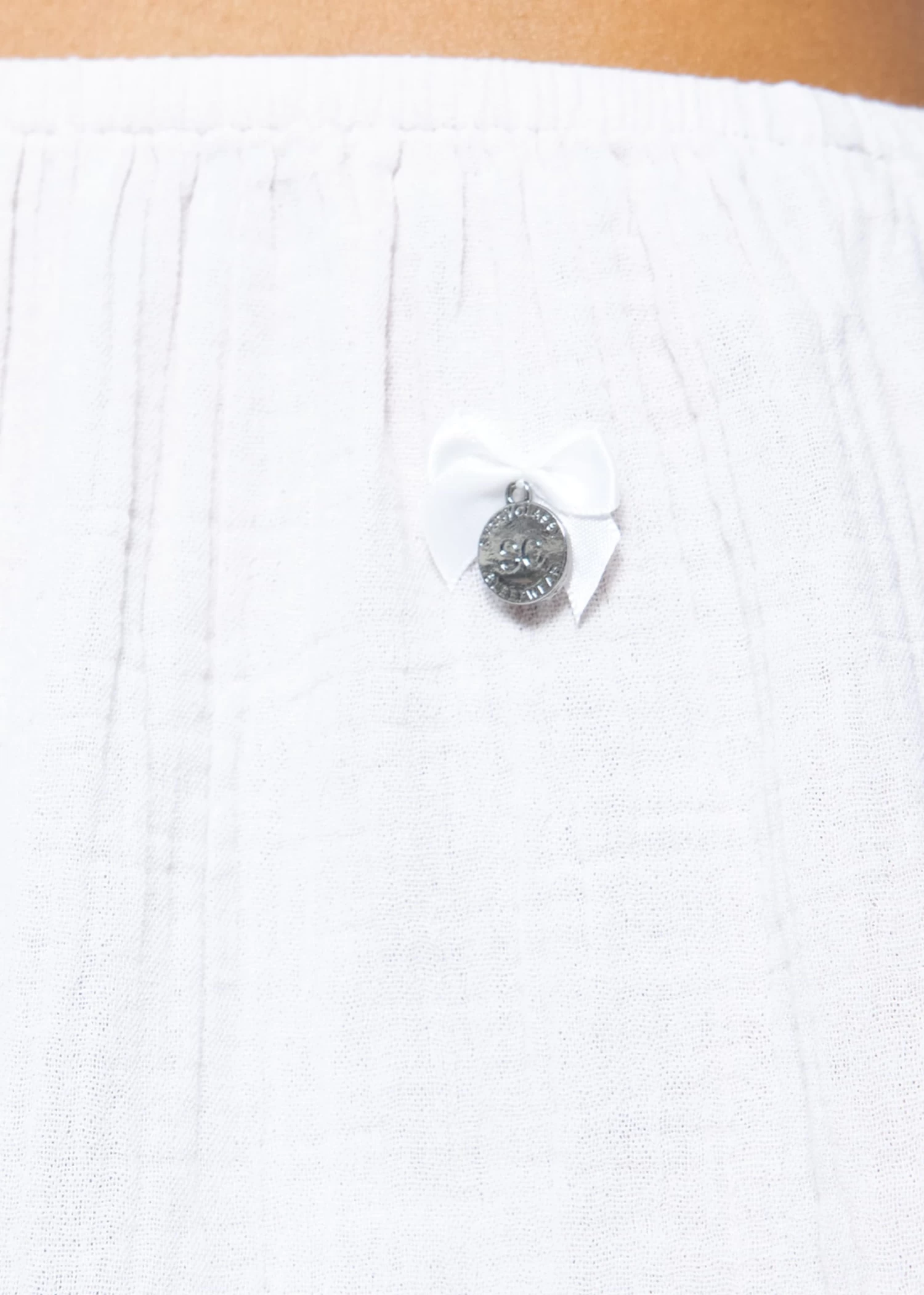 Diese lange Pyjamahose präsentiert eine lockere Passform, ein weites Bein sowie einen elastischen Gummibund. Hergestellt aus hochwertigem Baumwoll-Musselin, bietet diese Schlafhose eine hervorragende Atmungsaktivität. Die SASSYCLASSY Logo Schleife am Bund setzt einen verspielten Akzent und verleiht der Pyjama Hose eine unverkennbare Note. Highlight bildet die Spitzenborte am Beinabschluss, die für einen modischen, femininen Touch sorgt. Kombiniert mit dem dazu passenden kurzen oder langen Pyjamashirt aus der gleichen Serie, wird dieser Schlafanzug zu einer Symbiose aus Stil und Bequemlichkeit.
