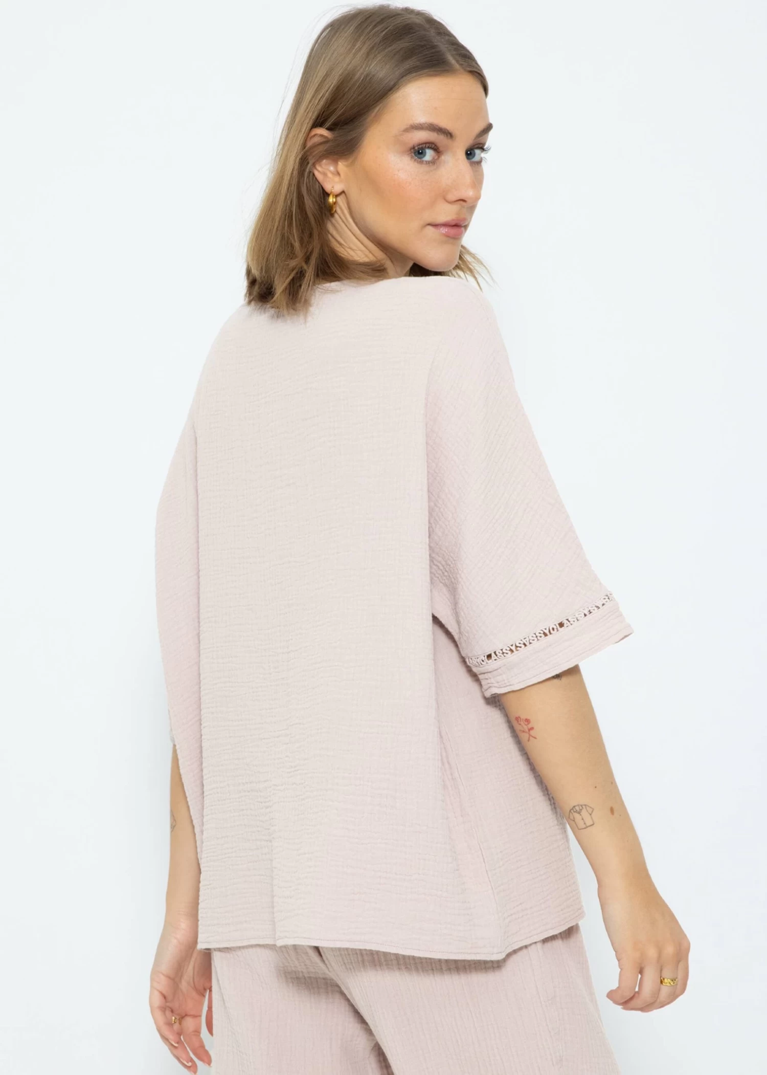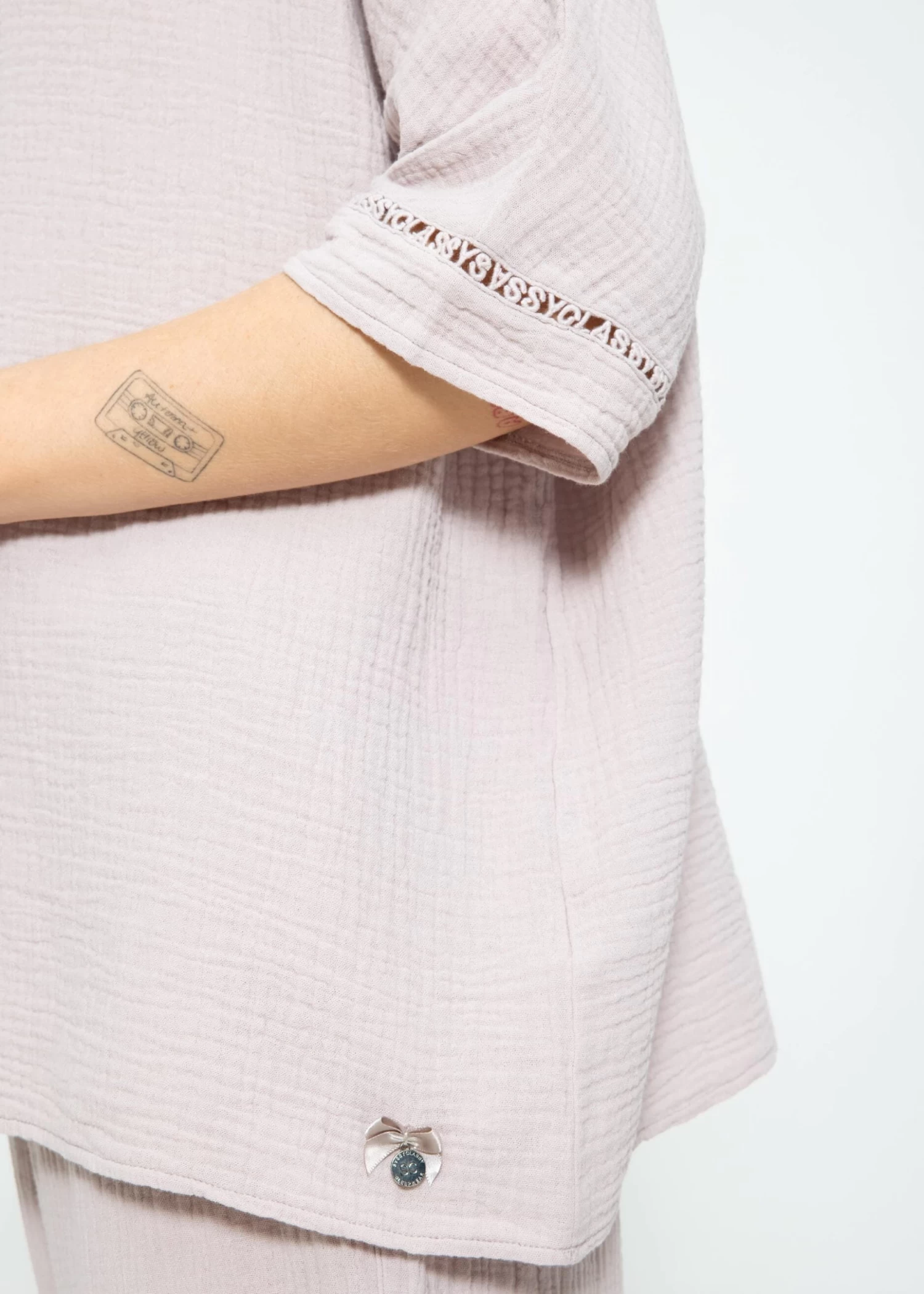 Musselin Pyjama Shirt mit Spitzenborte in Altrosa