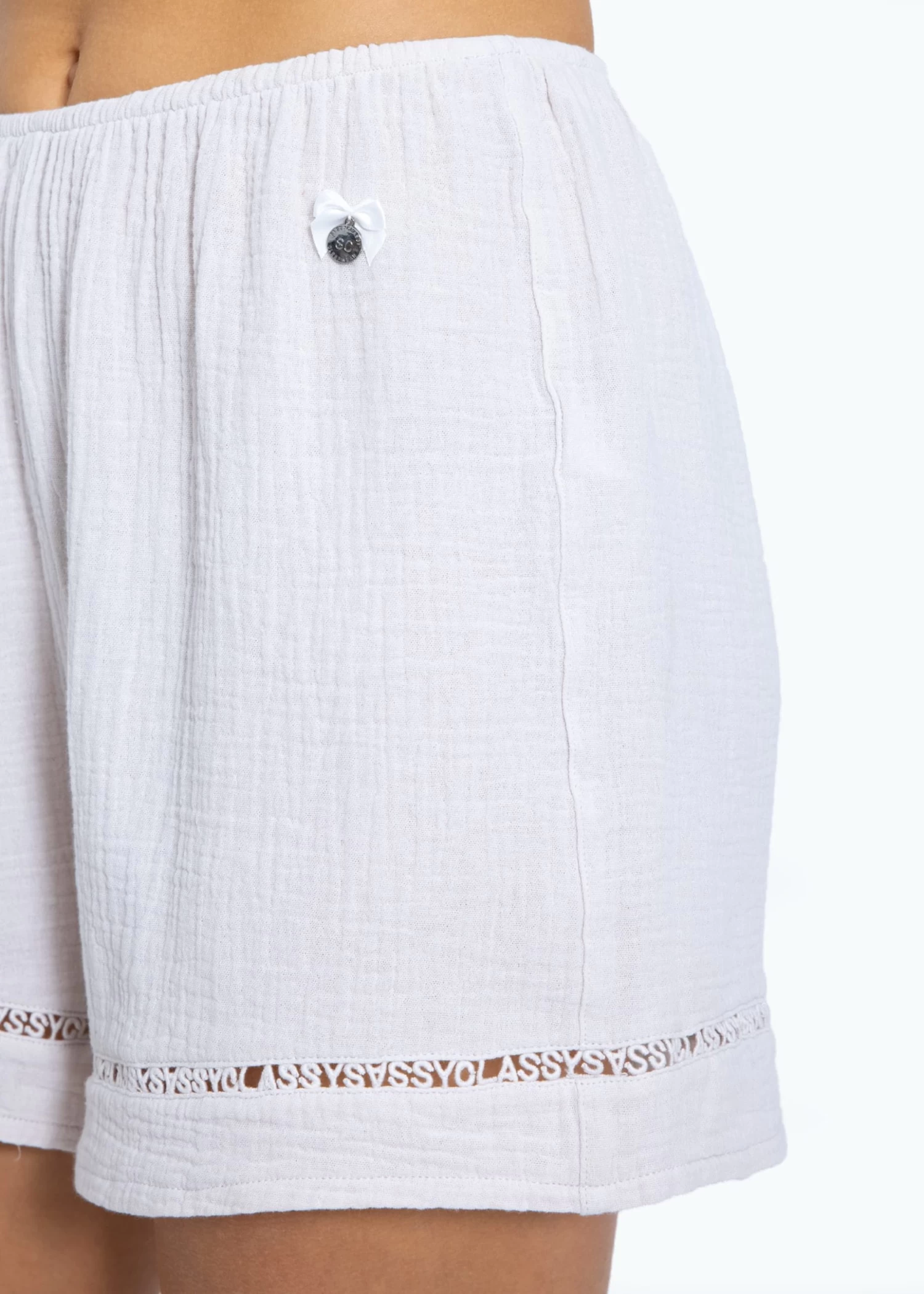 Diese Pyjamashorts präsentiert eine lockere Passform sowie einen elastischen Gummibund. Highlight bildet die Spitzenborte am Beinabschluss, die für einen modischen, femininen Touch sorgt. Hergestellt aus hochwertigem Baumwoll-Musselin, bietet diese Schlafshorts eine hervorragende Atmungsaktivität. Die SASSYCLASSY Logo Schleife am Bund setzt einen verspielten Akzent und verleiht der Pyjama Shorts eine unverkennbare Note. Kombiniert mit dem dazu passenden kurzen oder langen Pyjamashirt aus der gleichen Serie, wird dieser Schlafanzug zu einer Symbiose aus Stil und Bequemlichkeit.