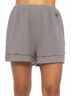 Musselin Pyjamashorts mit Spitzenborte in Taupe