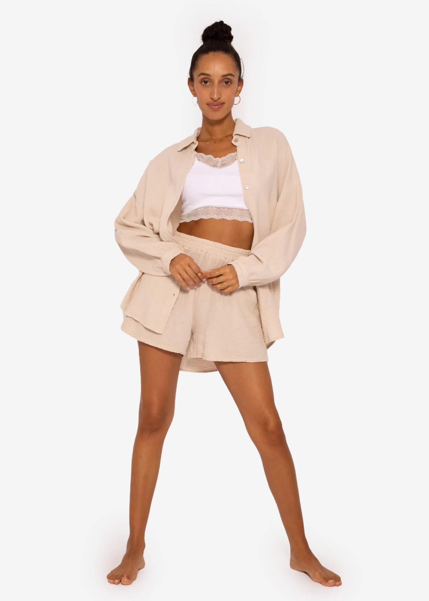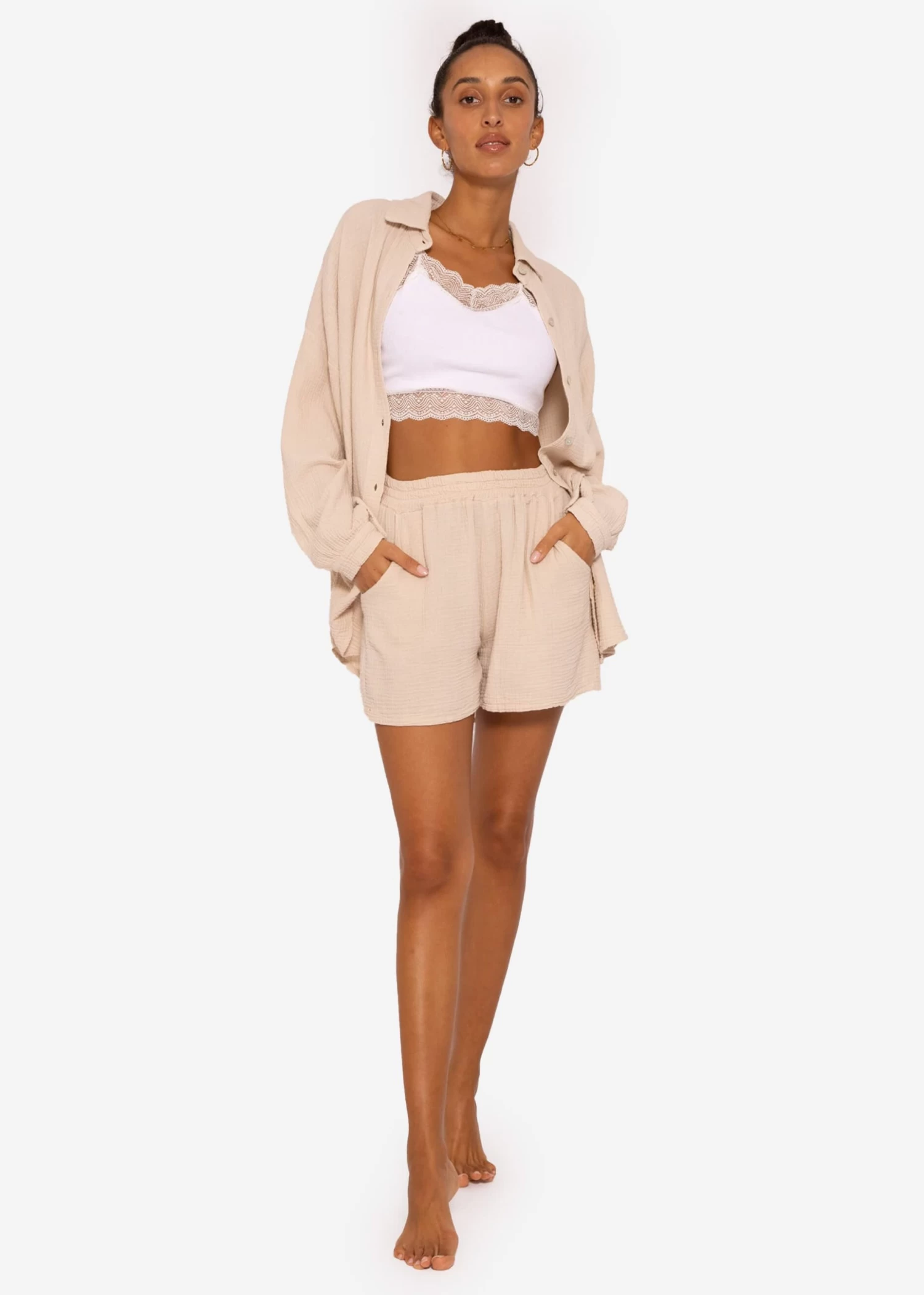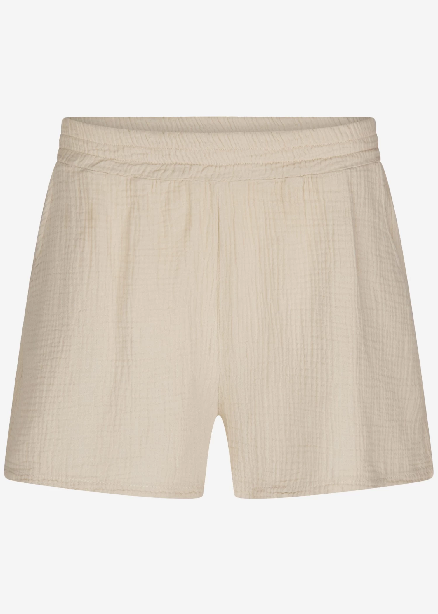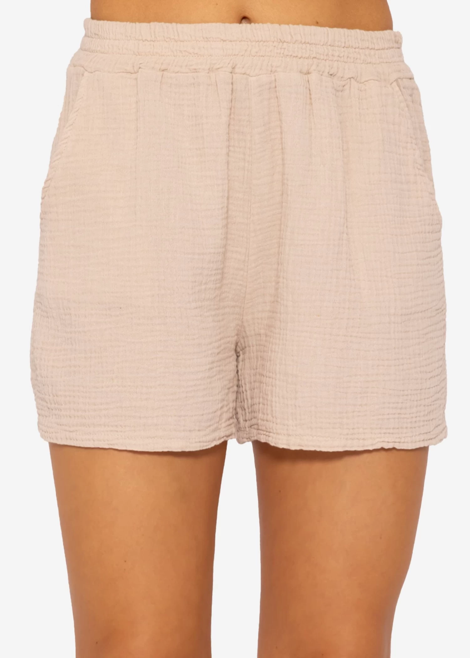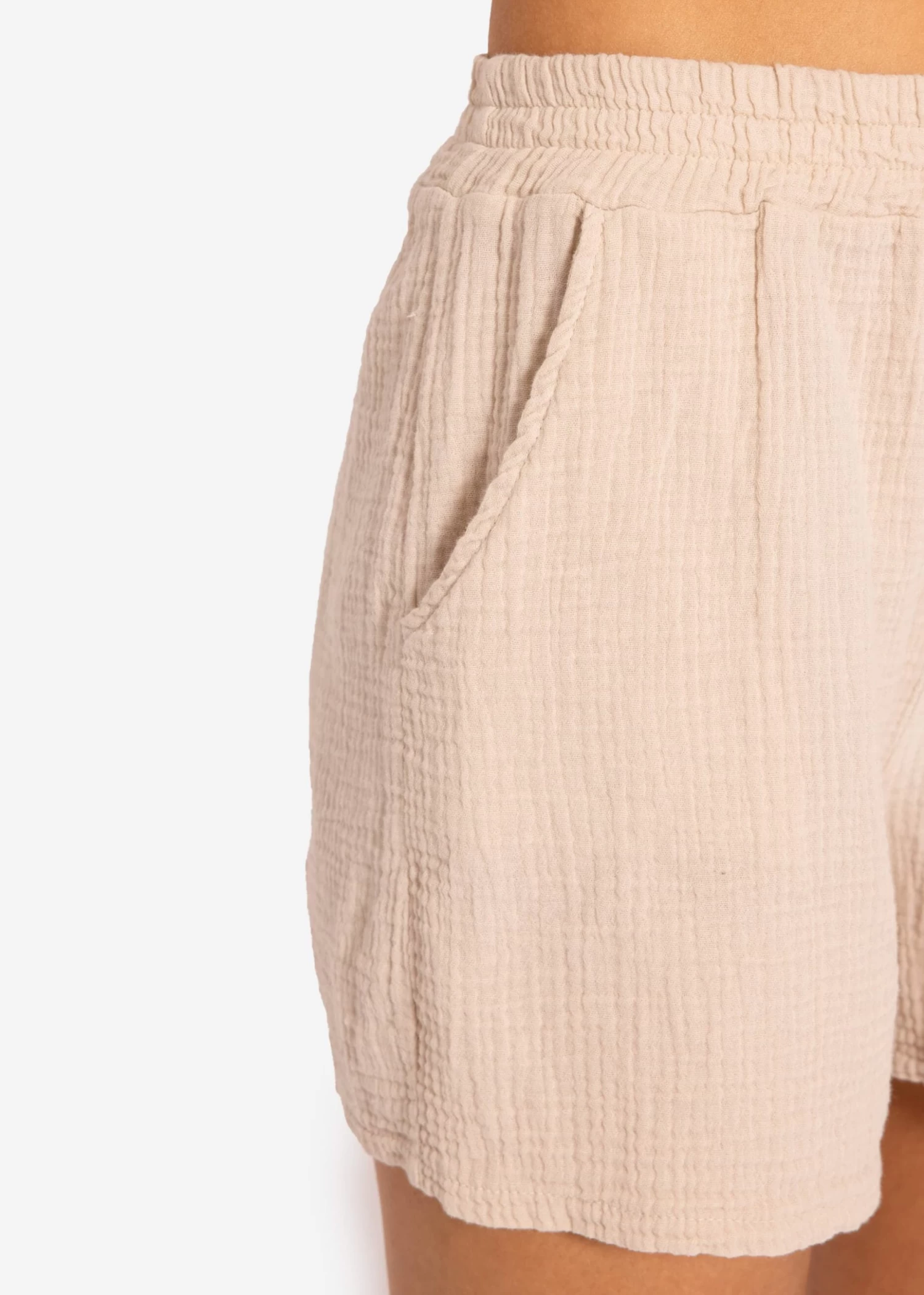 Freizeit Shorts aus softem Baumwoll-Musselin mit Gummibund. Einschubtaschen geben ihr den coolen Look.