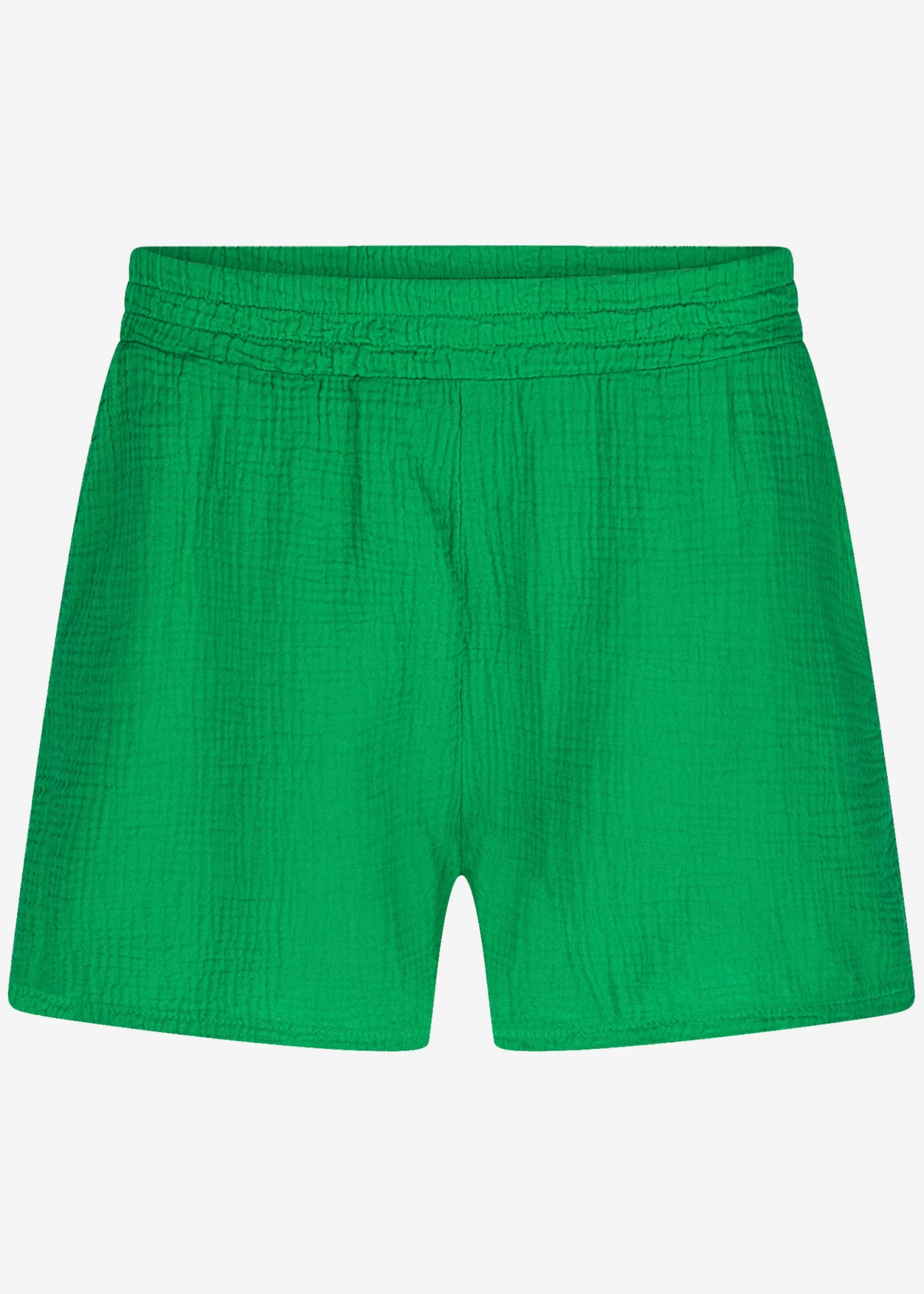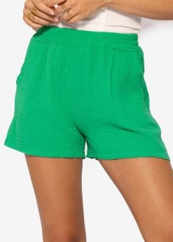 Freizeit Shorts aus softem Baumwoll-Musselin mit Gummibund. Einschubtaschen geben ihr den coolen Look.