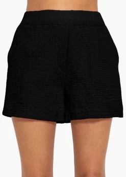 Diese Shorts aus Musselin darf in deiner Sommergarderobe nicht fehlen. Das Modell besitzt auf der Rückseite einen elastischen, gerafften Bund, der für einen hohen Tragekomfort sorgt. Ein besonderes Highlight ist die Zierleiste, die ein optisches Designelement darstellt und für eine Prise Eleganz sorgt. Das locker geschnittene Bein umschmeichelt sanft deine Silhouette und bietet eine luftige Leichtigkeit an warmen Tagen. Diese Shorts sind die ideale Wahl für alle, die in ihrer Freizeit Wert auf eine gelungene Kombination aus Komfort und dezenter Eleganz legen.
