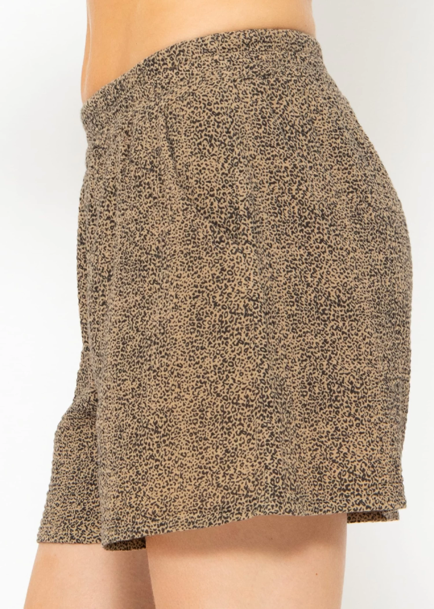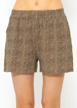 Diese lässige Musselin Shorts wird garantiert dein neuer Favorit im Sommer. Sie ist nicht nur extrem bequem und locker geschnitten, sondern avanciert durch den angesagten Leo-Print zu einem richtigen Hingucker. Das Modell besitzt sportive Einschubtaschen, einen gerafften, hohen Bund sowie eine entspannte, kurze Länge. Kombiniere die Shorts mit einem Basic Oberteil und Sneakers für einen im Handumdrehen gestylten Alltagslook.
