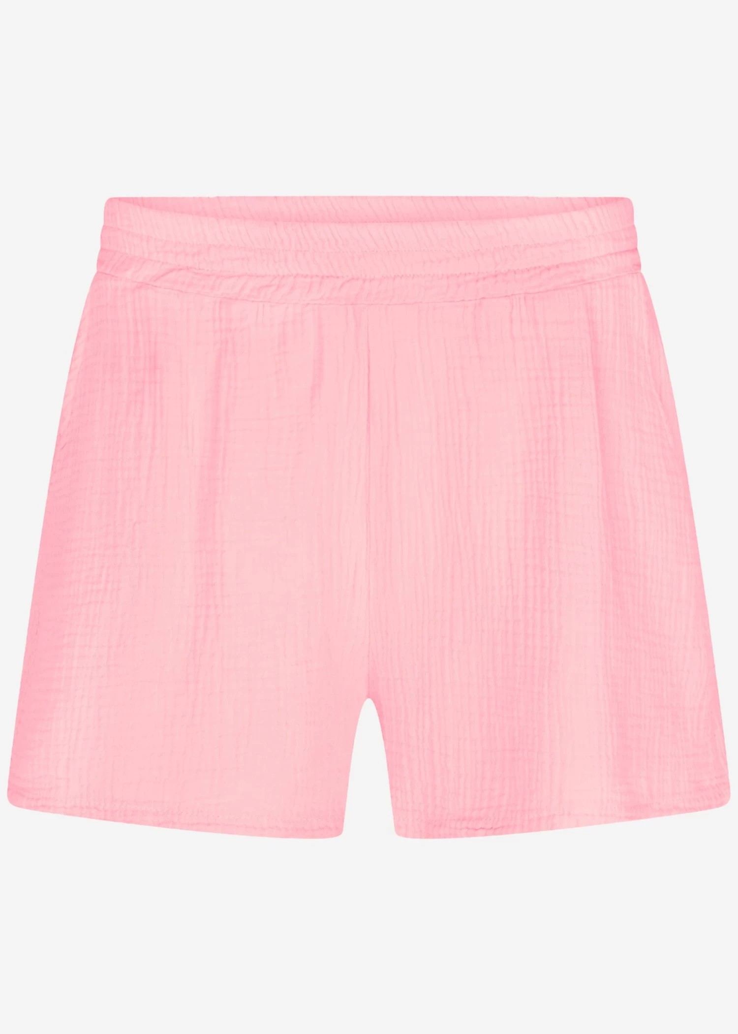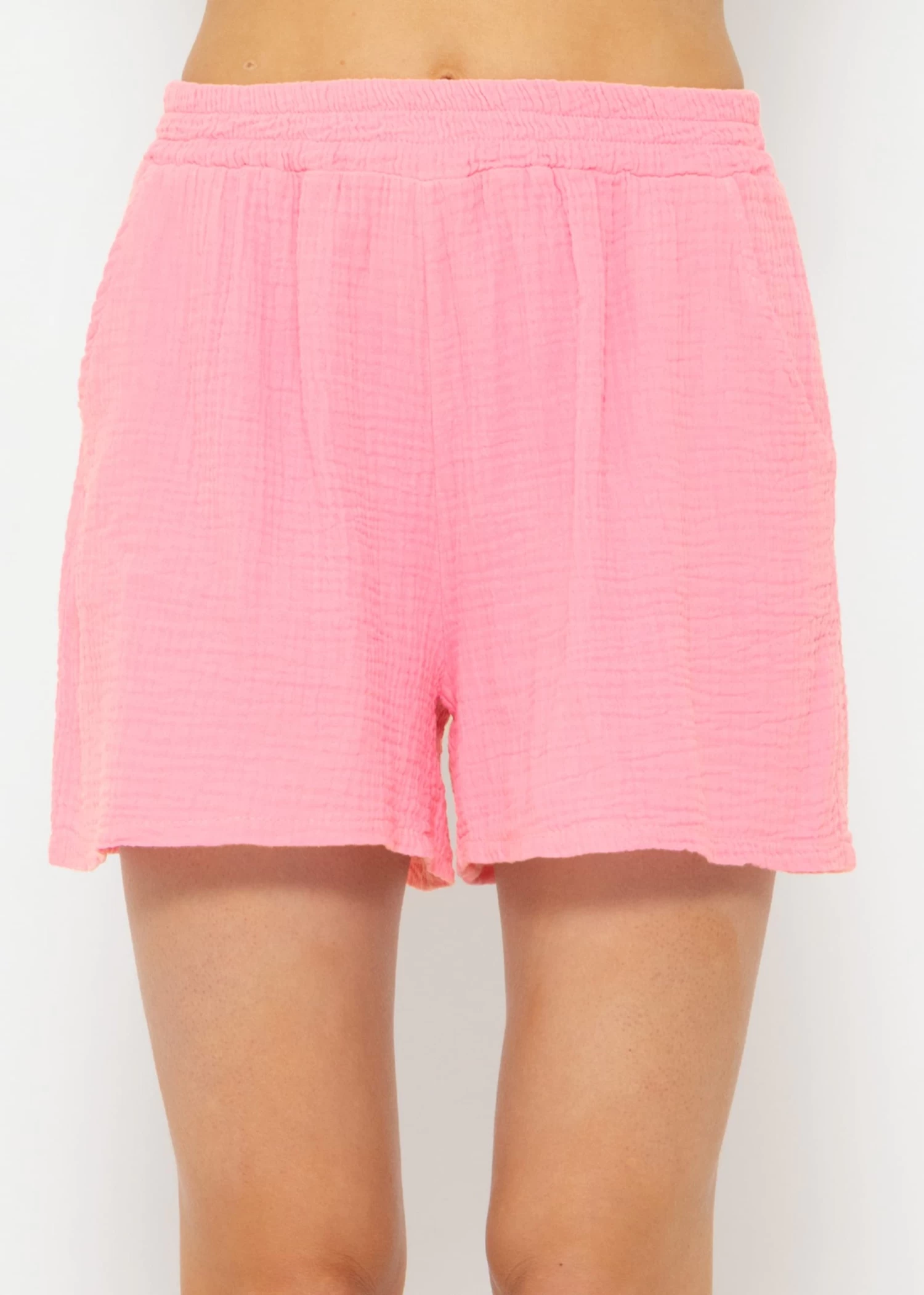 Freizeit Shorts aus softem Baumwoll-Musselin mit Gummibund. Einschubtaschen geben ihr den coolen Look.