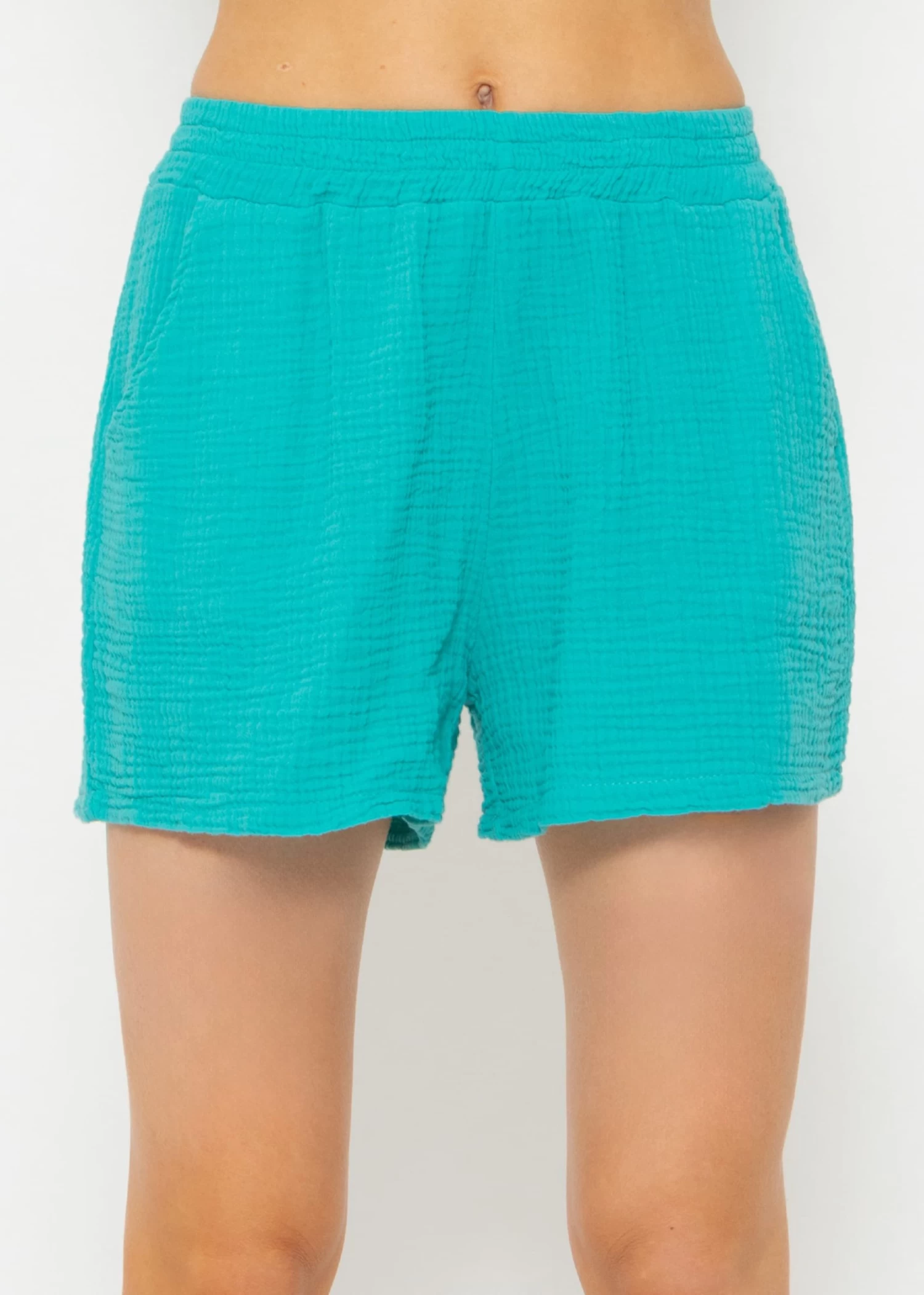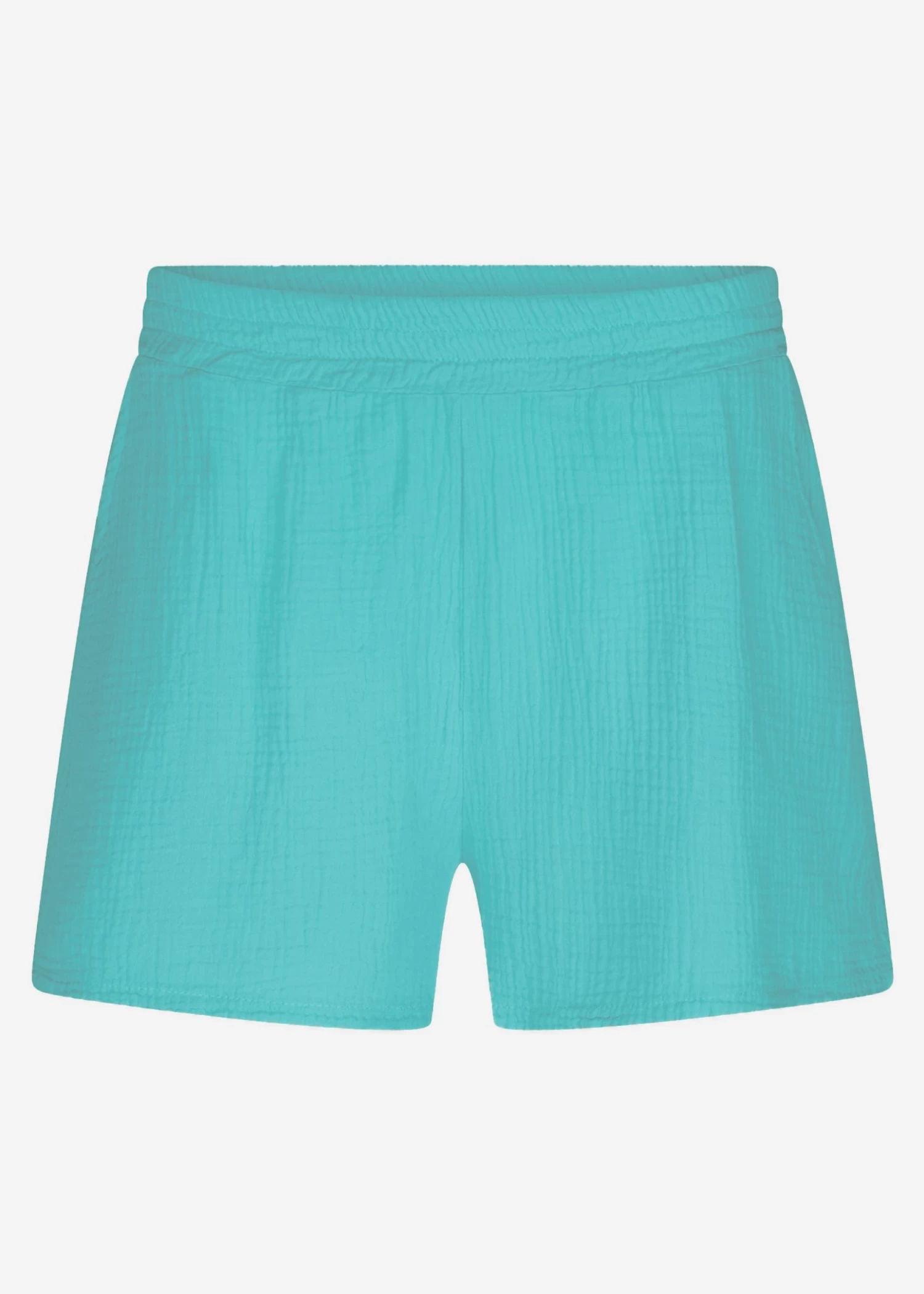 Freizeit Shorts aus softem Baumwoll-Musselin mit Gummibund. Einschubtaschen geben ihr den coolen Look.