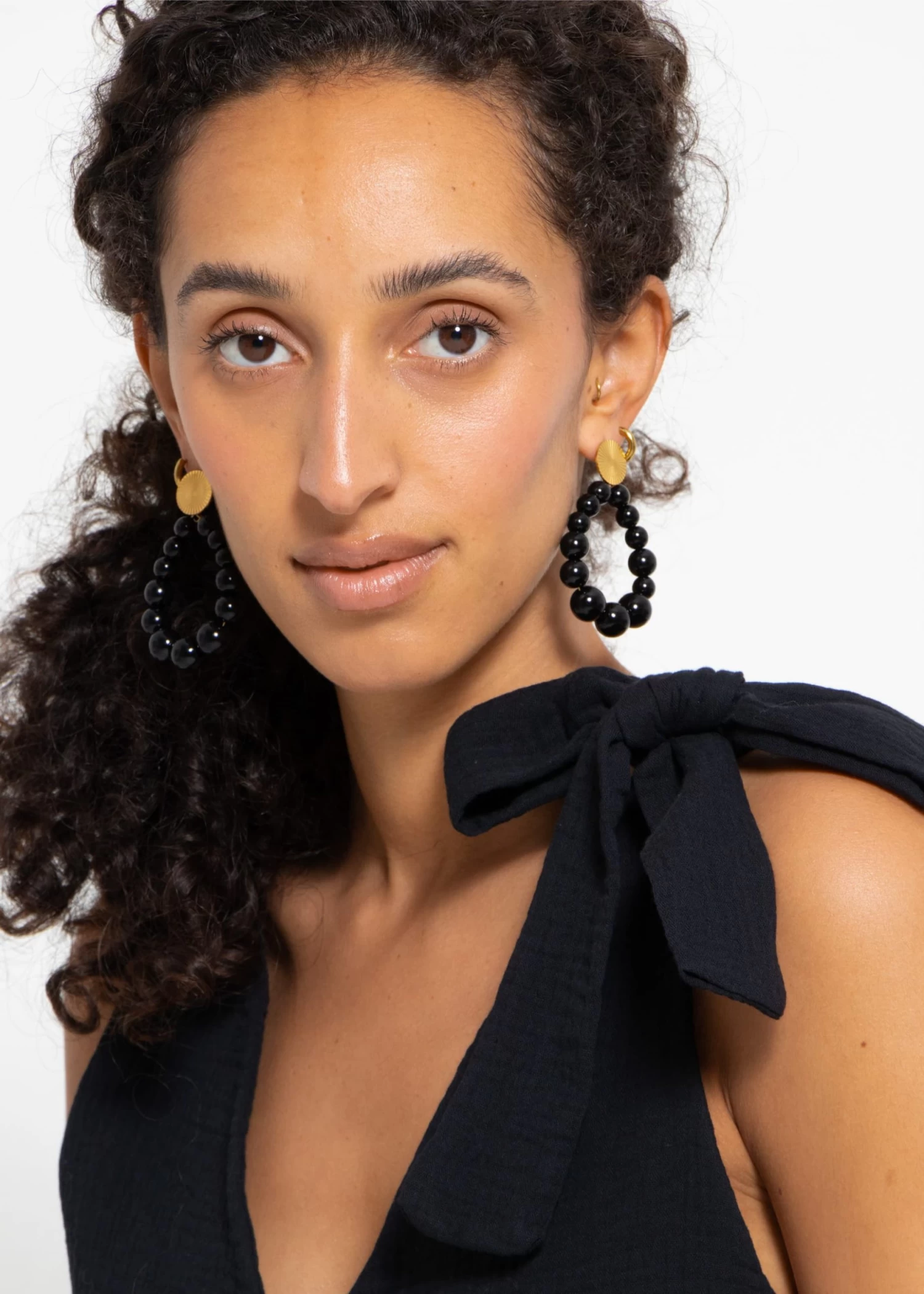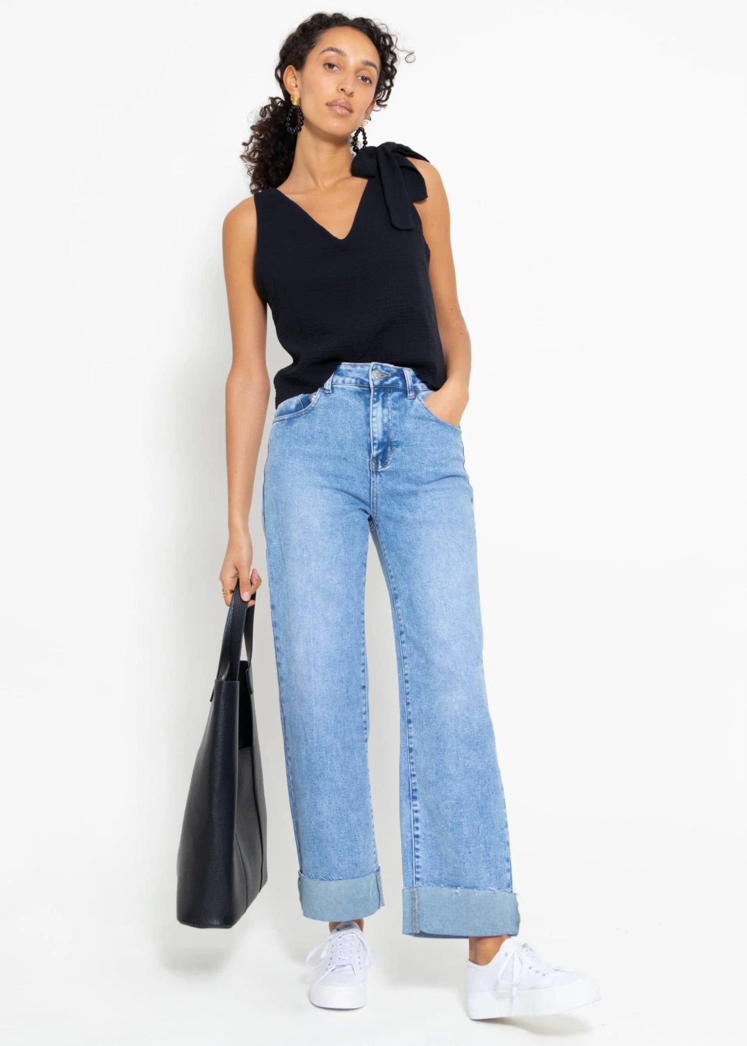 Dieses elegante Musselin Top ist ein echter Hingucker. Highlight des ärmellosen Tops bildet die großzügige Schleife im Schulterbereich, die für eine charmante und feminine Note sorgt. Der tiefe V-Ausschnitt betont das raffinierte Design. Hergestellt aus Musselin, bietet das Modell eine angenehme Leichtigkeit und Weichheit. Durch die lockere Passform fällt das Top fließend und schmeichelt deiner Figur. Es lässt sich ideal mit einer lässigen Jeans oder einem eleganten Rock kombinieren und kann sowohl im Büro als auch zum Abendessen getragen werden.