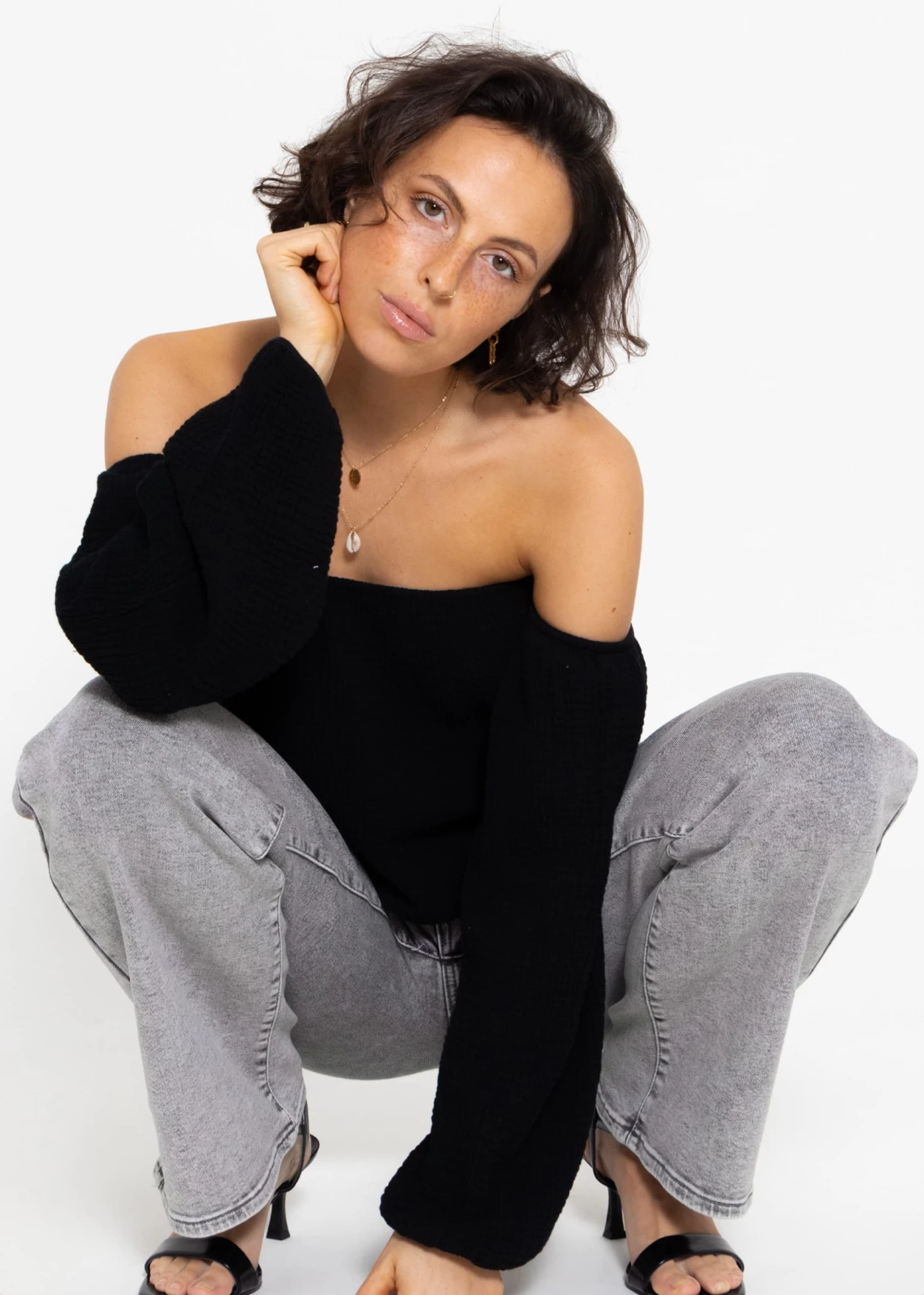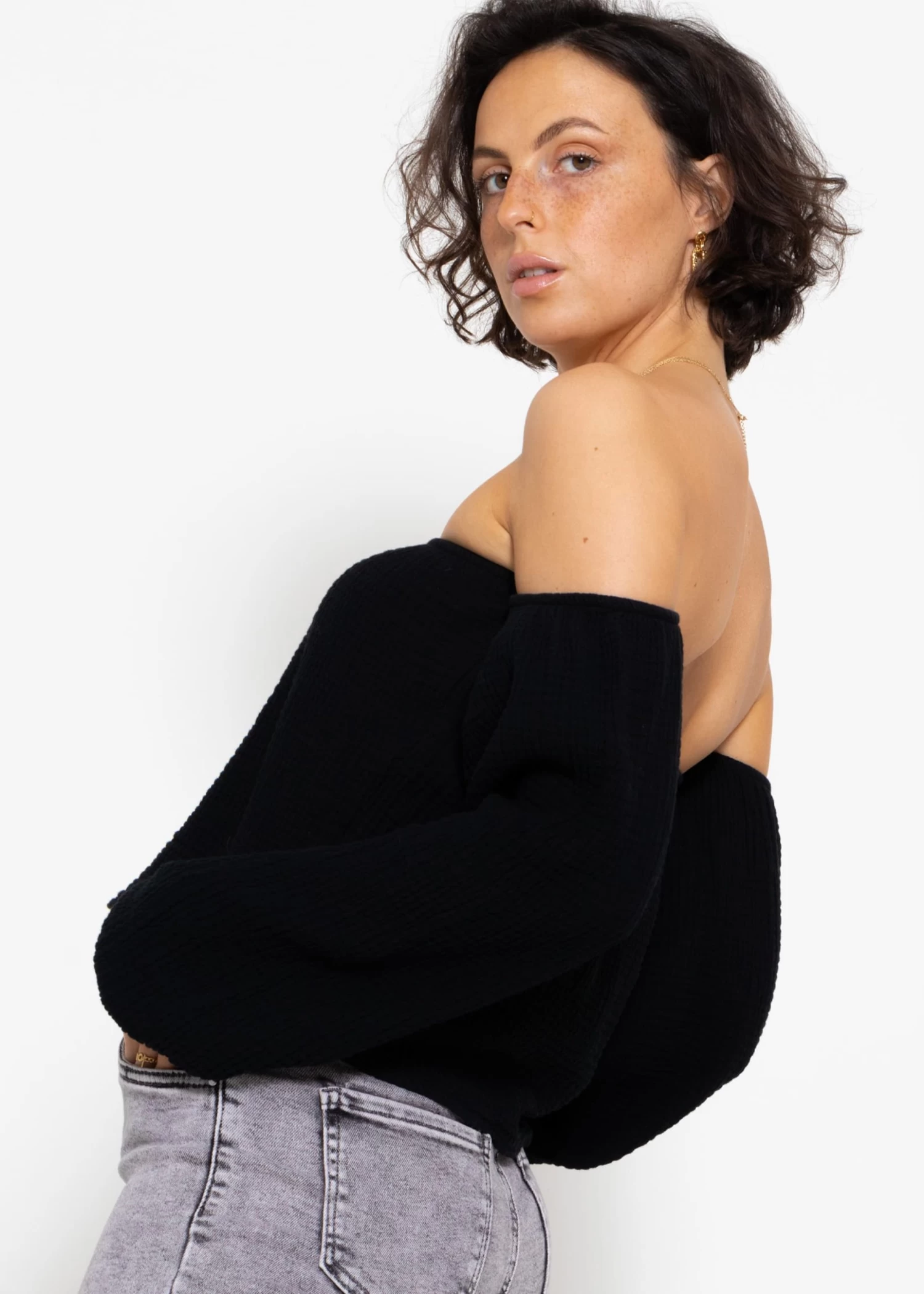 Dieses Musselin Top präsentiert sich in einer Cropped-Länge, einem geraden Ausschnitt und Saum sowie einer Oversized-Passform. Das schulterfreie Design sowie die voluminösen Ballonärmel sorgen für einen Eyecatcher und wirken frech-raffiniert. Hergestellt aus reinem, nachhaltigen Baumwoll-Musselin, trägt sich das Top angenehm und weich auf der Haut. Für einen angesagten Look eignet sich eine Ton-in-Ton Shorts als bewährter Kombinationspartner. Minimalistische Accessoires runden dein Outfit perfekt ab.