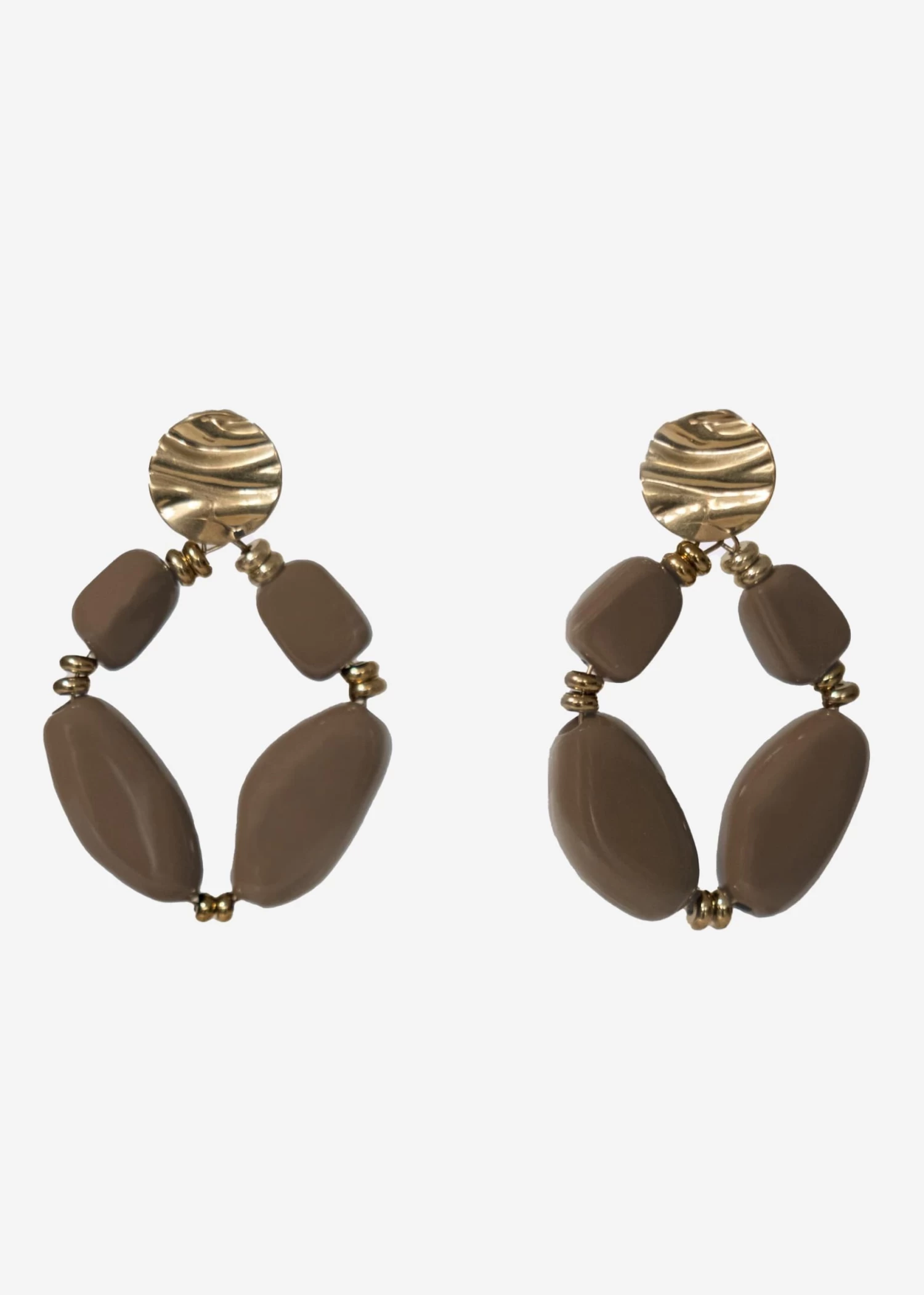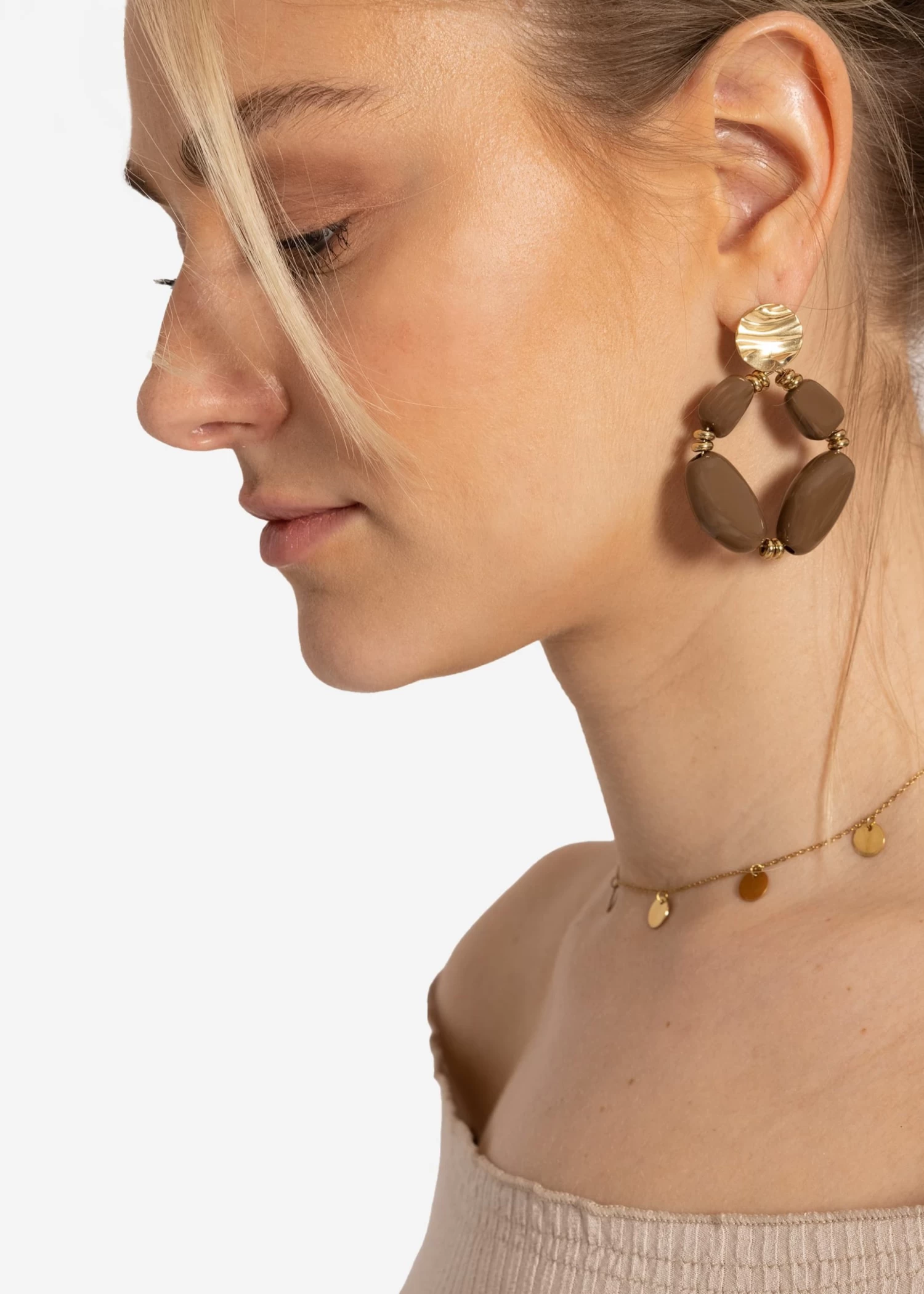 Ohrhänger mit farbigen großen Perlen und kleinen goldfarbenen Perlchen. Die Ohrringe haben einen Steckverschluss.