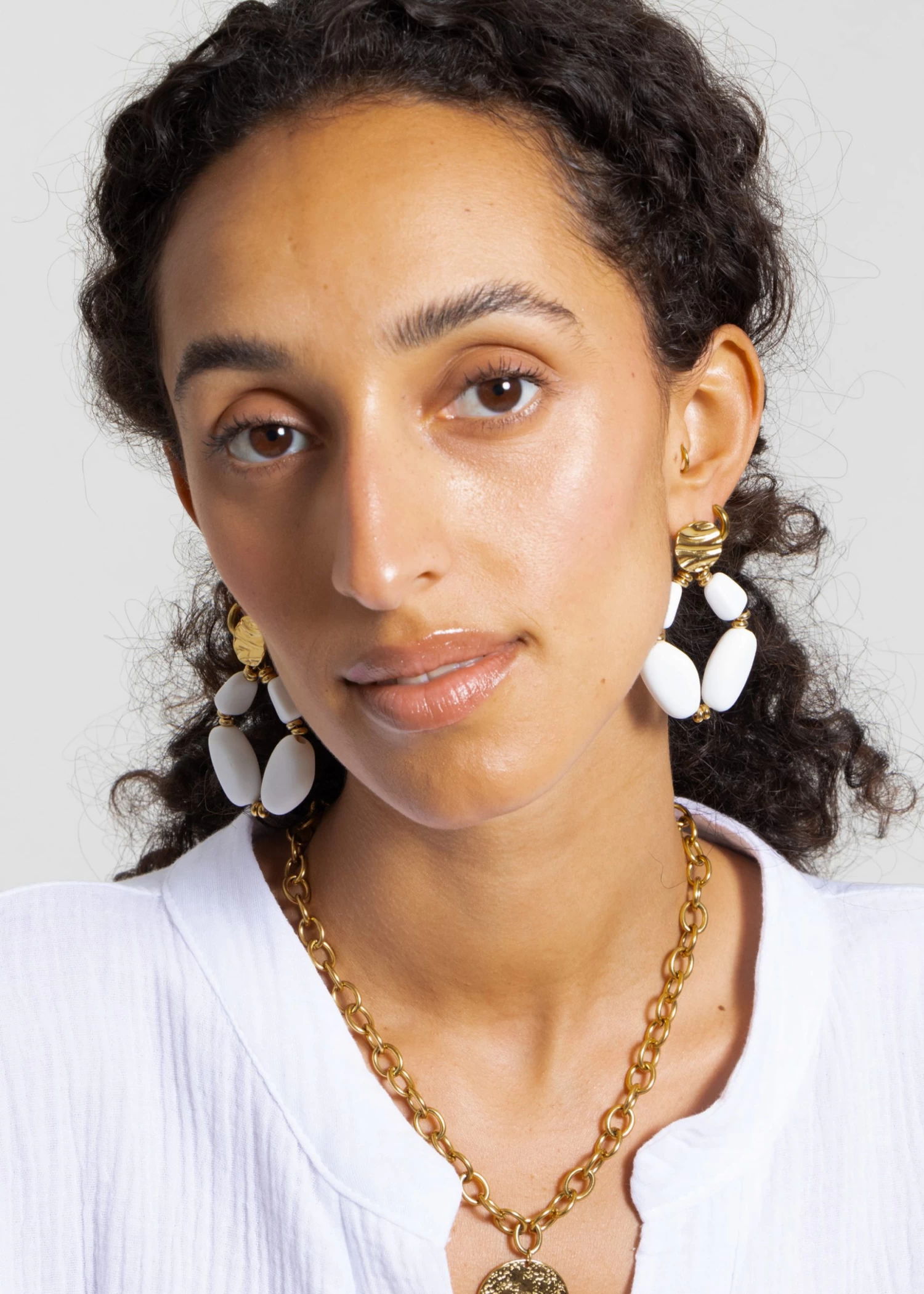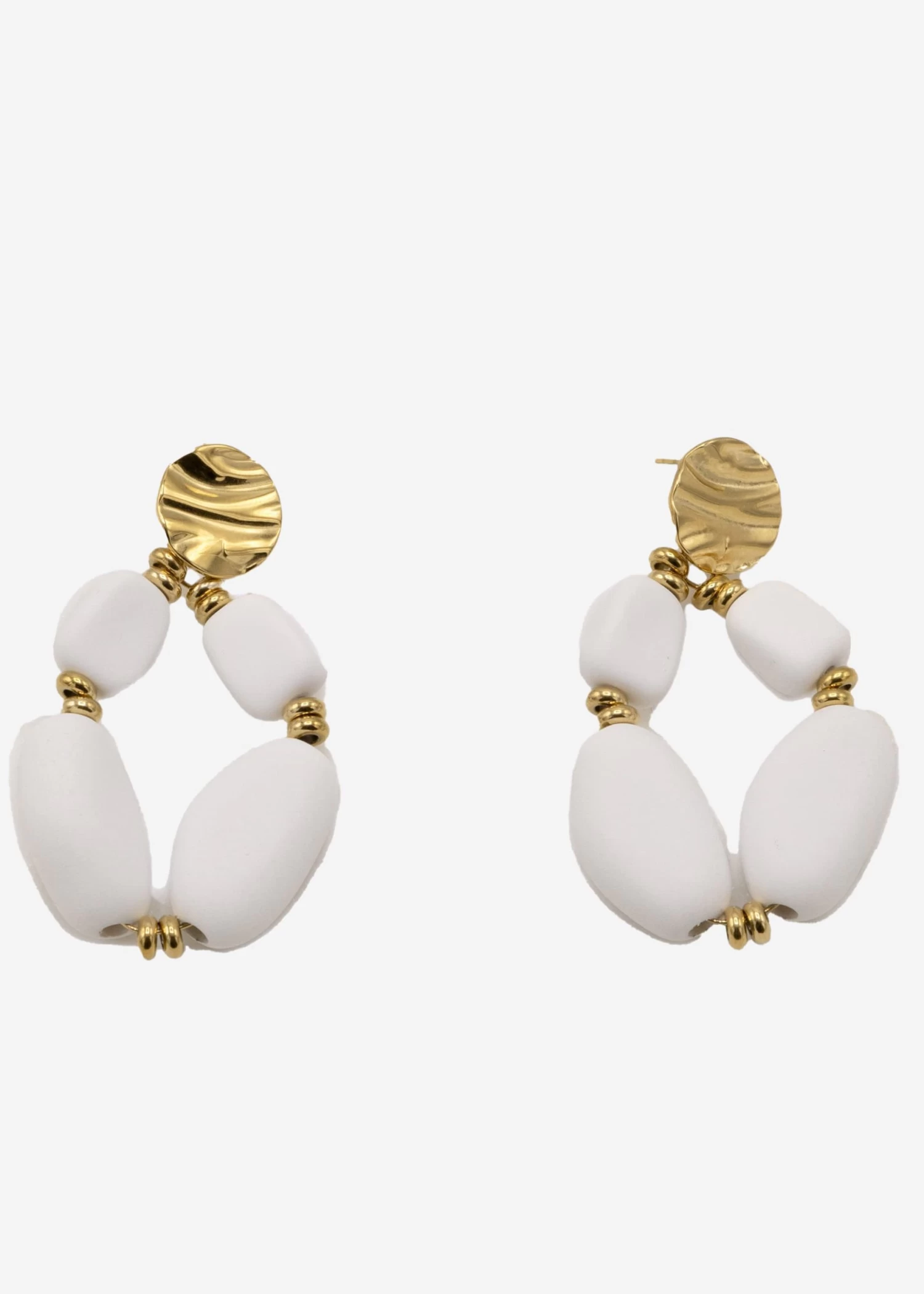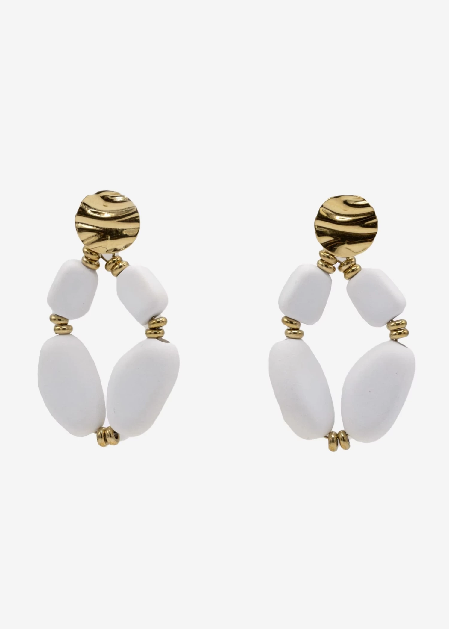 Ohrhänger mit farbigen, großen, matten Perlen und kleinen goldfarbenen Perlchen. Die Ohrringe haben einen Steckverschluss.