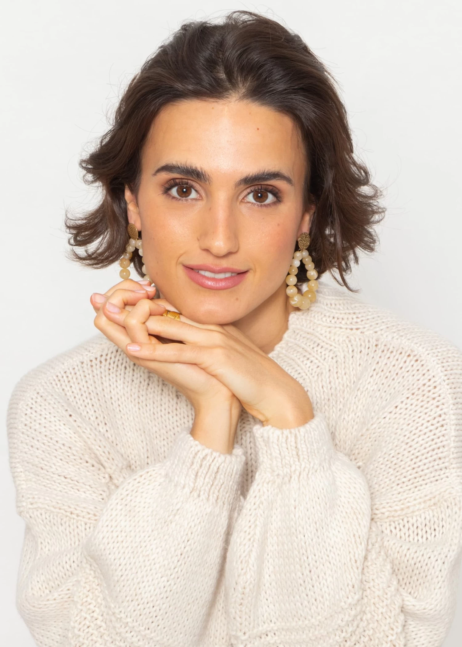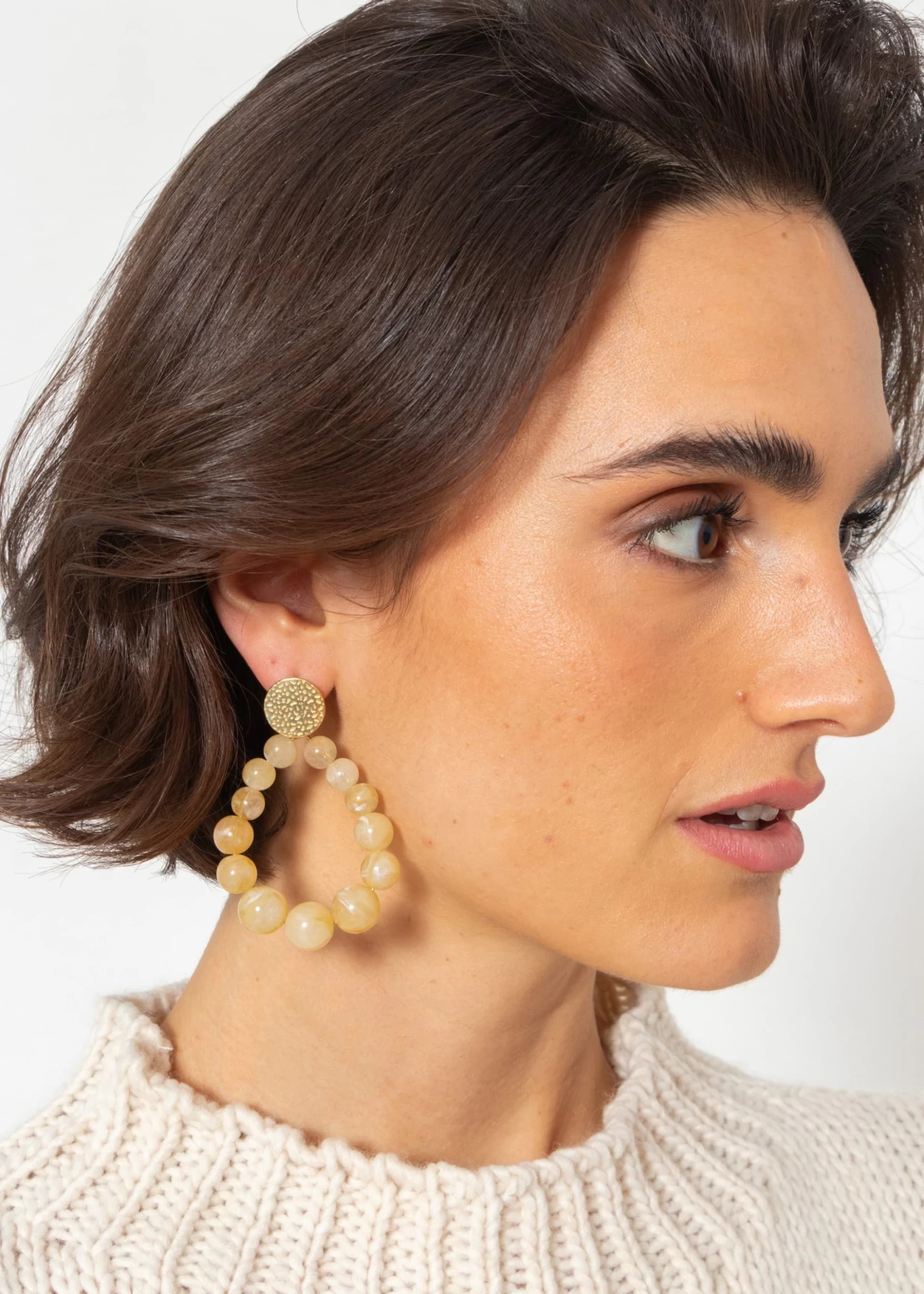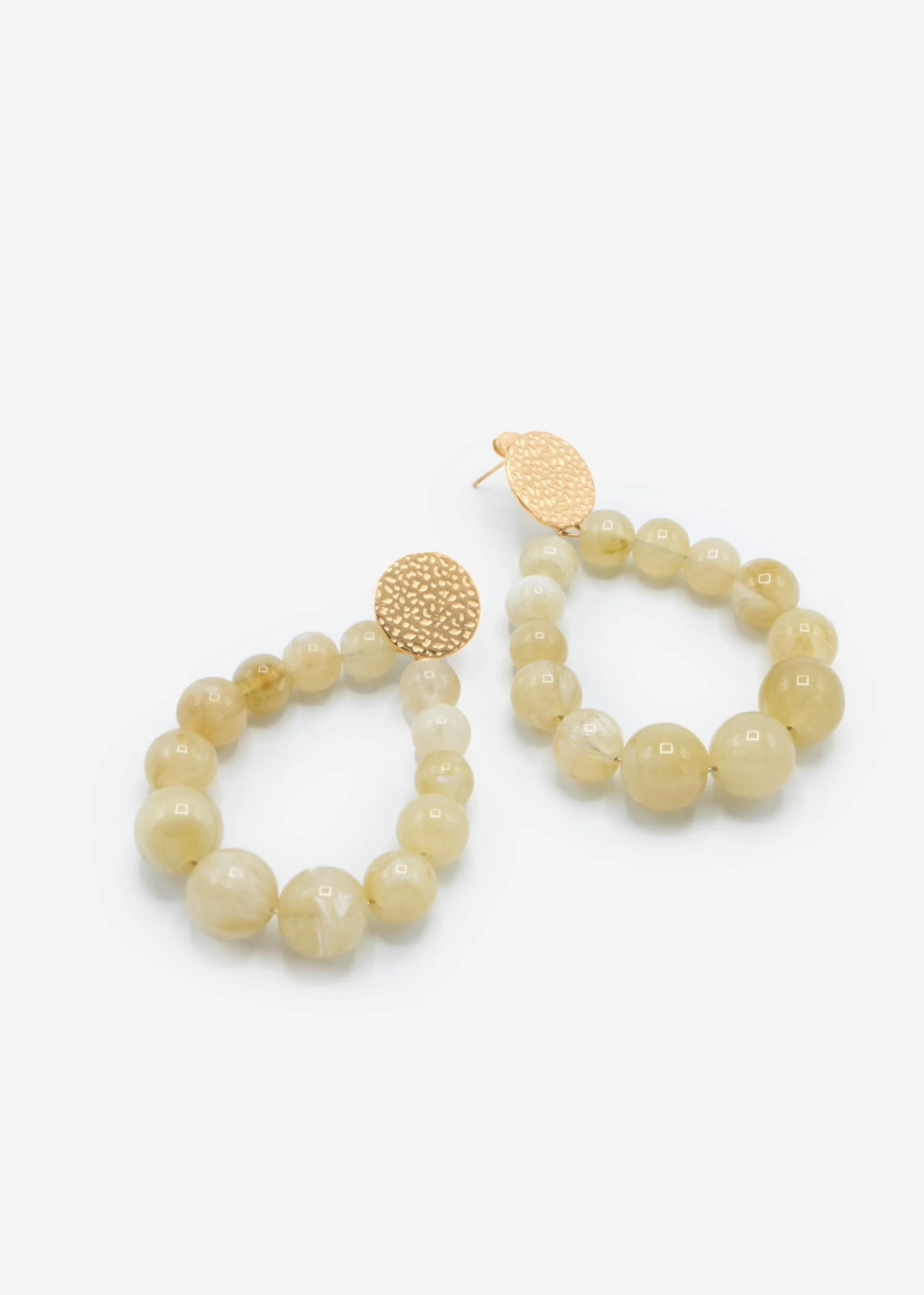 Ohrhänger mit farbigen Perlen. Das Modell besticht durch ihre leicht transparent, scheinende Optik. Die Ohrringe beweisen sich als vielseitiger Begleiter und runden dein Outfit ab. Sie sind mit einem Steckverschluss versehen.