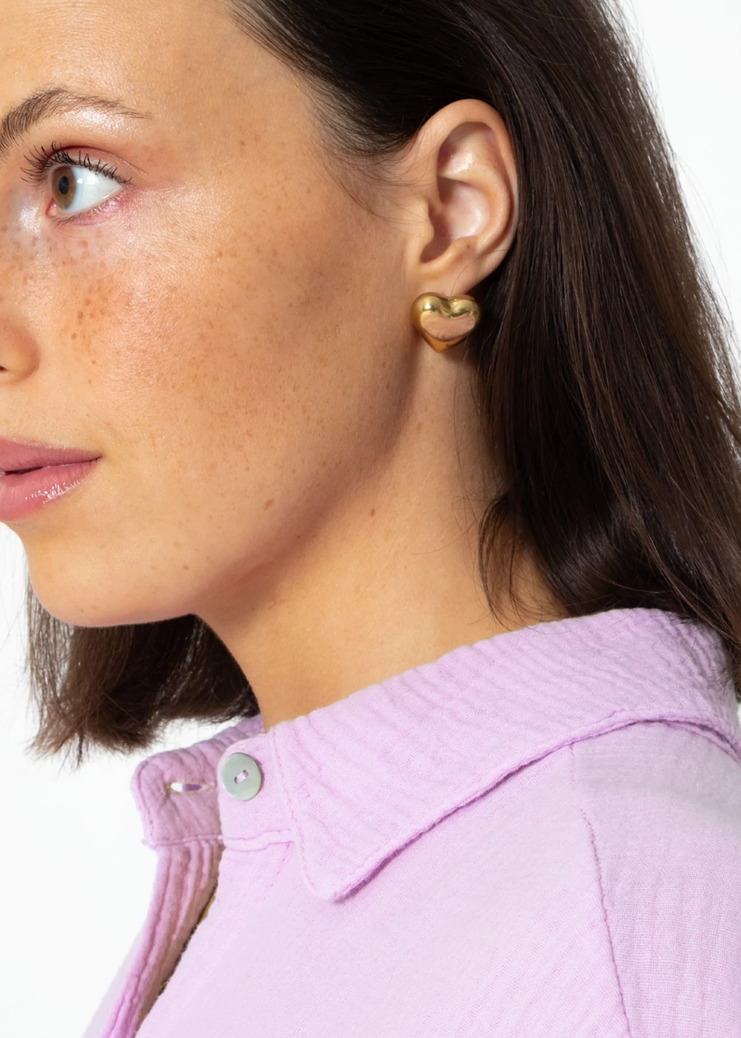 Diese Statement Ohrstecker in goldfarbener Ausführung dürfen in deiner Schmucksammlung auf keinen Fall fehlen. Sie überzeugen durch ihr abgerundetes, bauschiges Design mit glatter Oberfläche. Das Modell präsentiert sich in einer Herzform, die nicht nur für romantische Eleganz steht, sondern auch für einen kühnen Ausdruck und Selbstbewusstsein. Dank des Steckverschlusses bieten diese Ohrstecker nicht nur ein sicheres Trageerlebnis, sondern ermöglichen auch ein müheloses An- und Ausziehen.