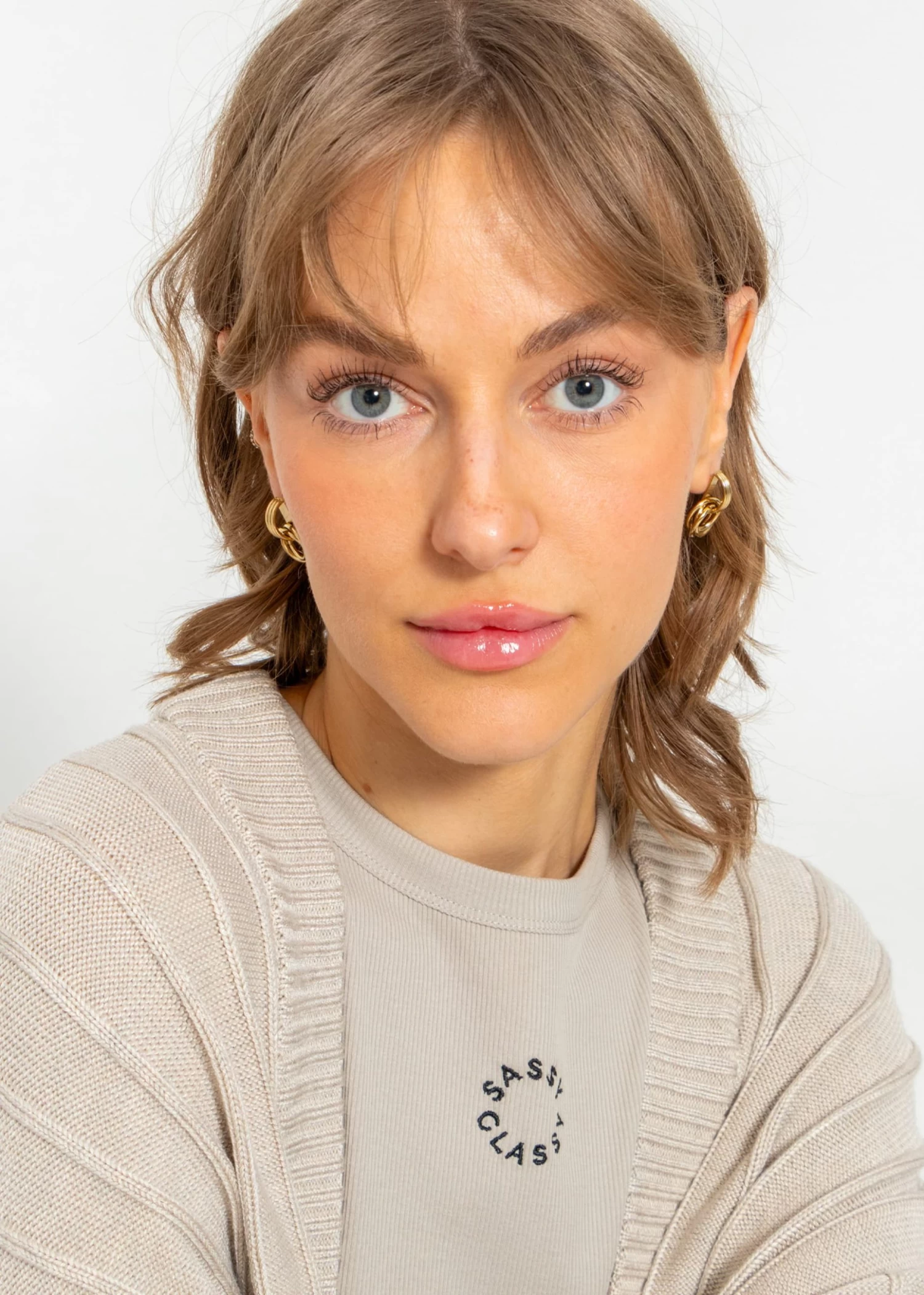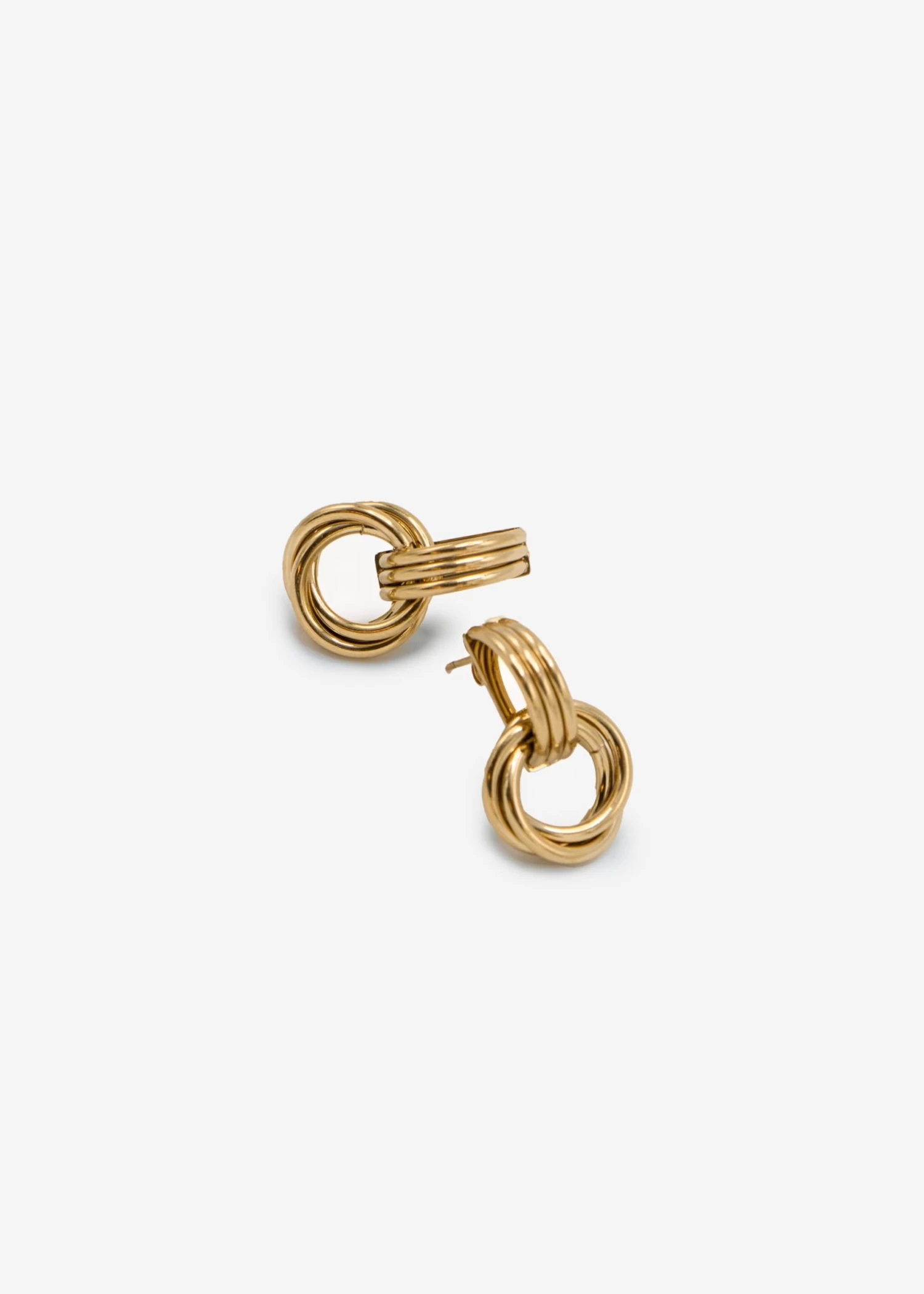 Lass dich von der Schönheit dieser goldfarbenen Ohrstecker bezaubern. Das Design umfasst zwei ineinander gereihte Ringe, die einen ansprechenden visuellen Effekt erzeugen. Die Ohrringe fügen jedem Outfit einen Hauch von Raffinesse hinzu. Sie sind leicht zu tragen und bieten durch ihren klassischen Steckverschluss den ganzen Tag über einen sicheren Halt.