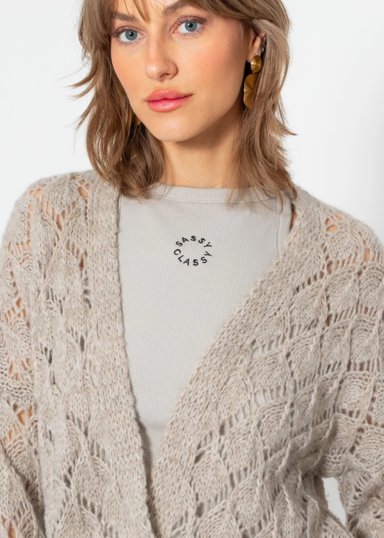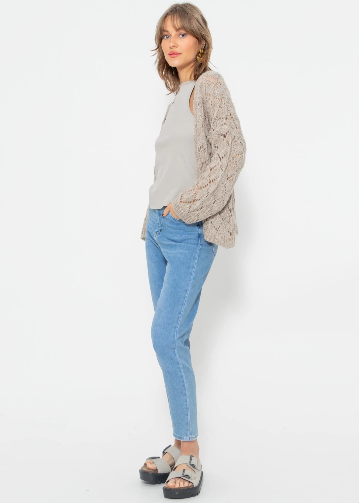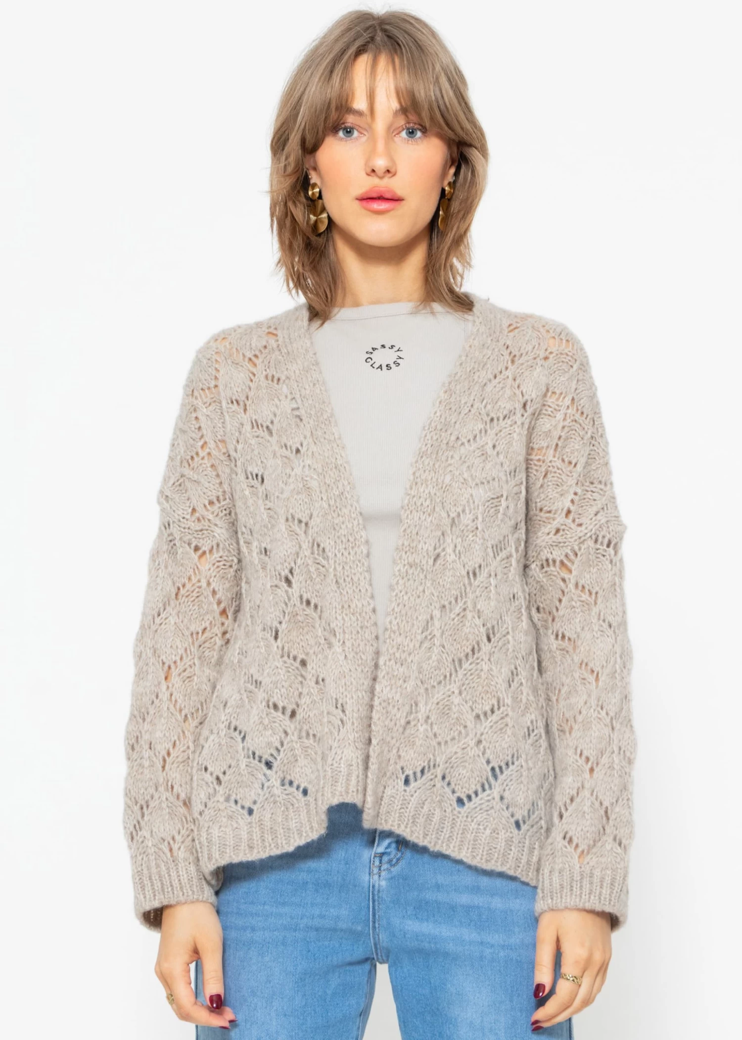 Oversize Cardigan in Ajour Strick in Beige
