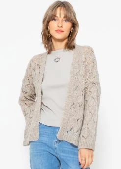 Dieser Cardigan verfügt über ein wunderschönes Ajourstrickmuster, das eine feminine Eleganz verleiht und für eine ansprechende Optik sorgt. Die offene Silhouette und der lockere Schnitt schaffen eine moderne Passform und verstärken das Gefühl von Leichtigkeit und Komfort. Gerippte Bündchen an Ärmeln und Saum geben dem Design Struktur und sorgen dafür, dass der Cardigan gut sitzt. Die Strickjacke lässt sich mühelos zu Tops und schönen Kleidern kombinieren.