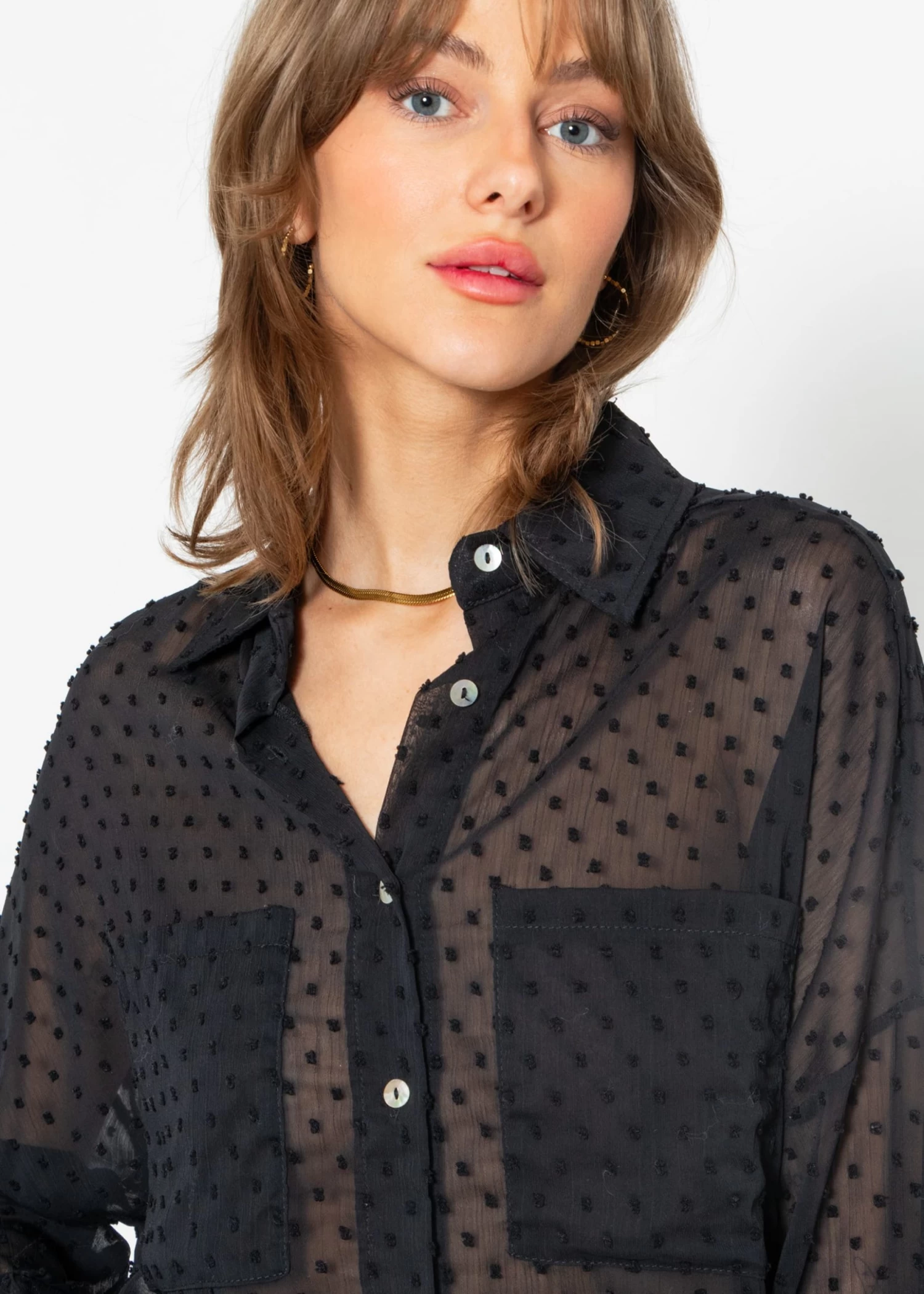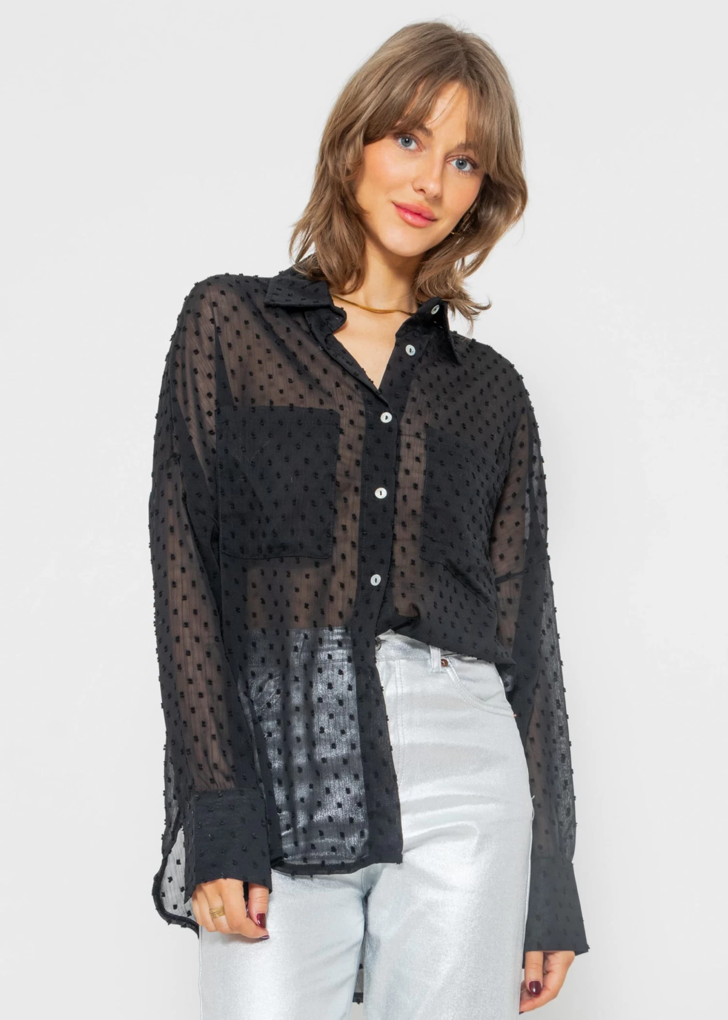 Oversize Plumetis Bluse in schwarz