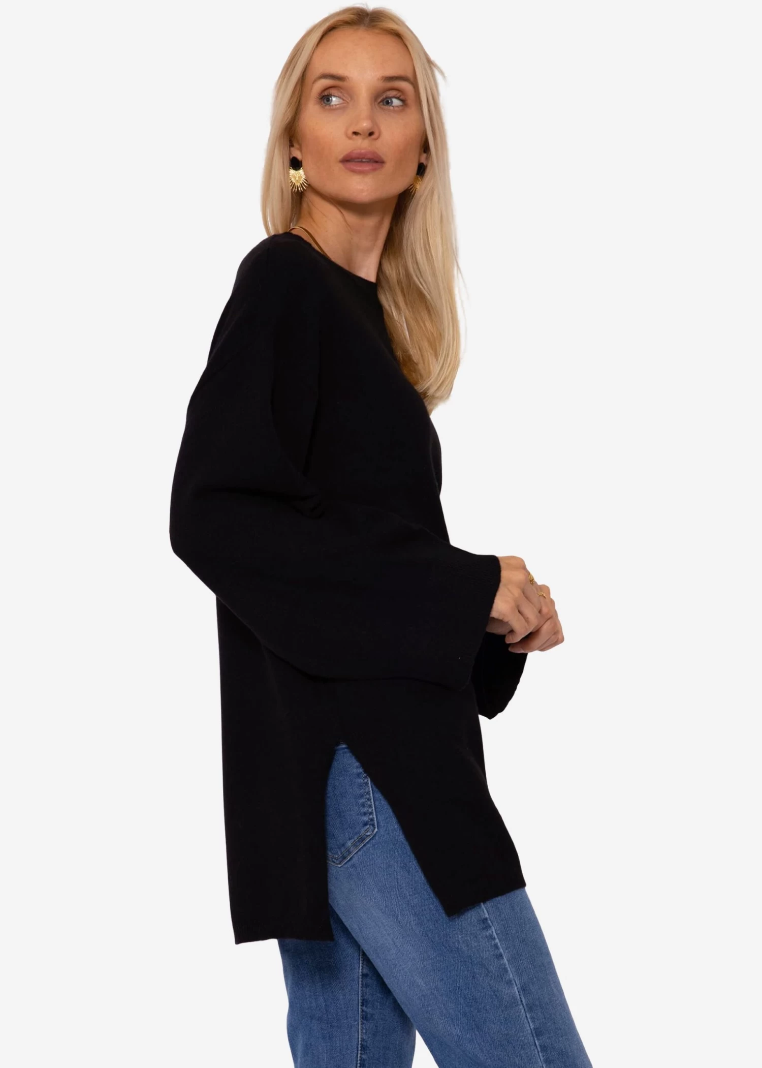 Oversize Pullover mit Seitenschlitzen in schwarz