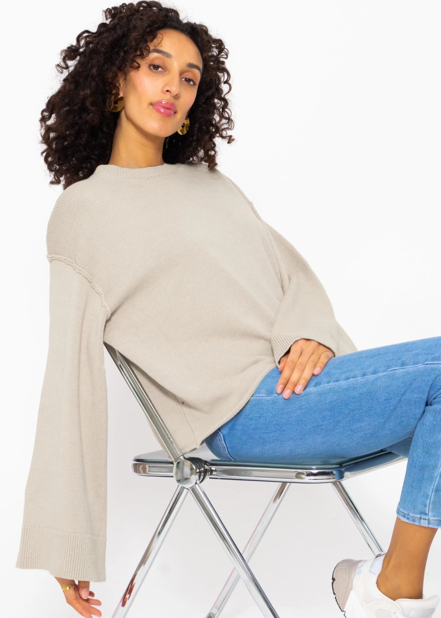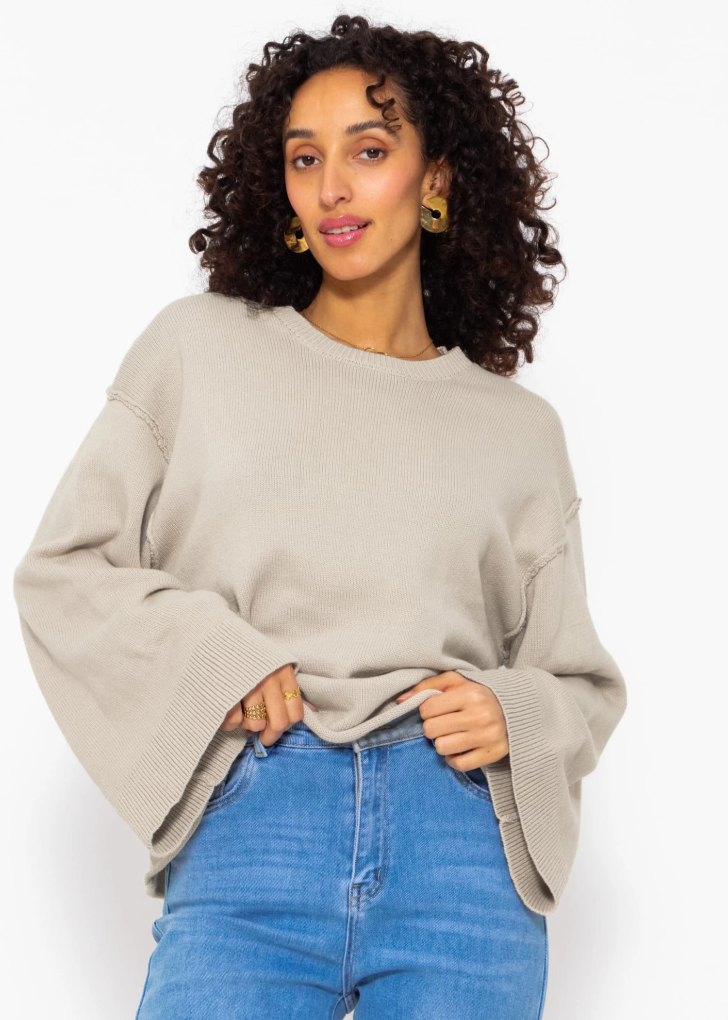 Oversize Pullover mit weiten Ärmeln in Beige