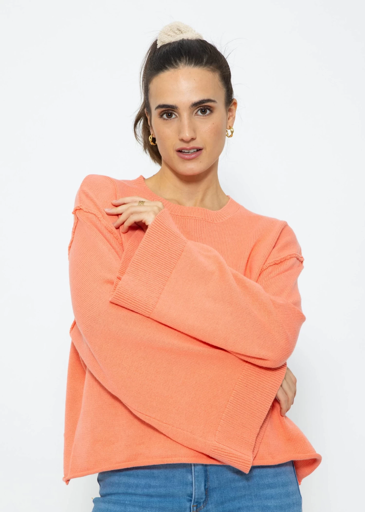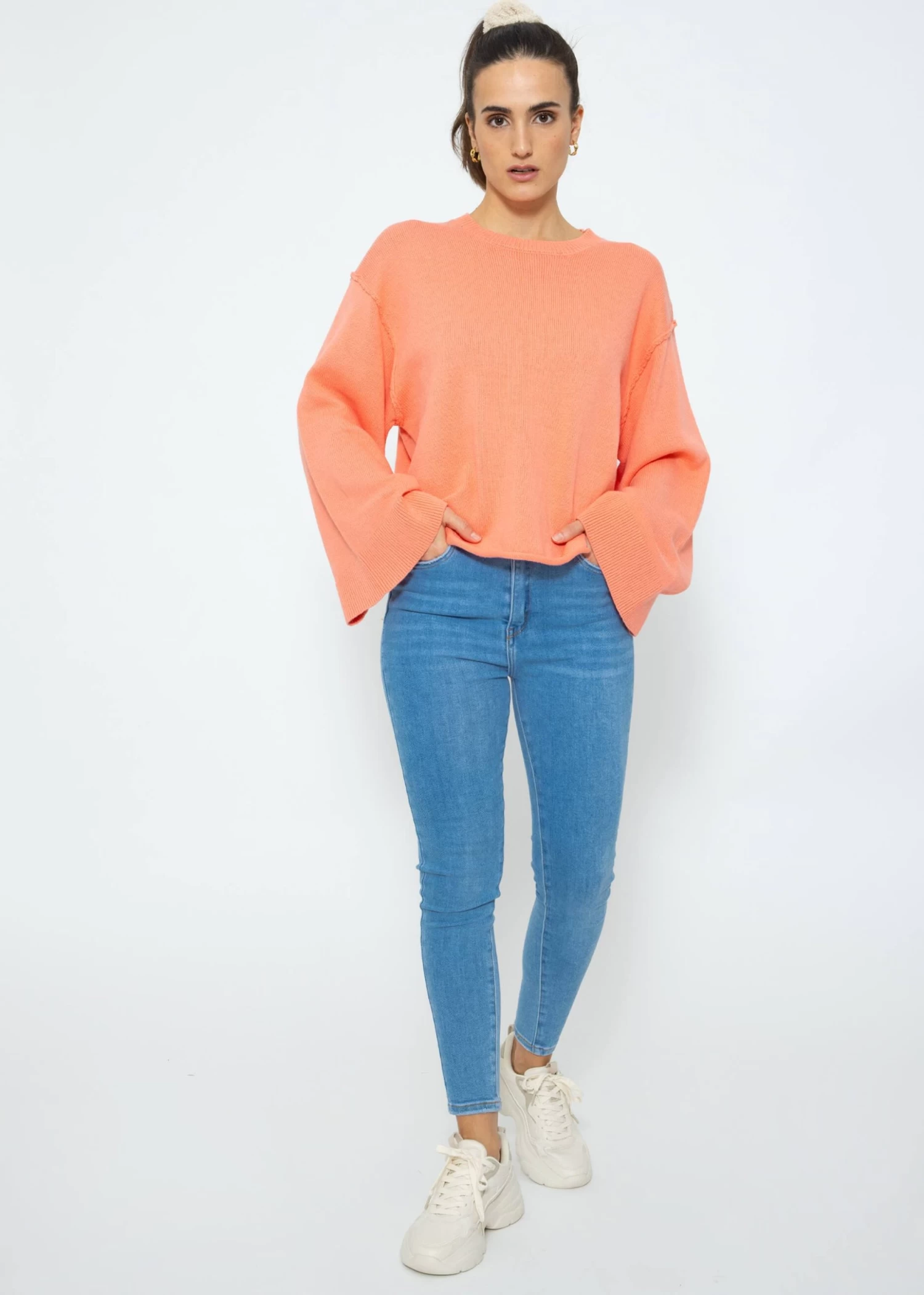 Oversize Pullover mit weiten Ärmeln in Lachsorange
