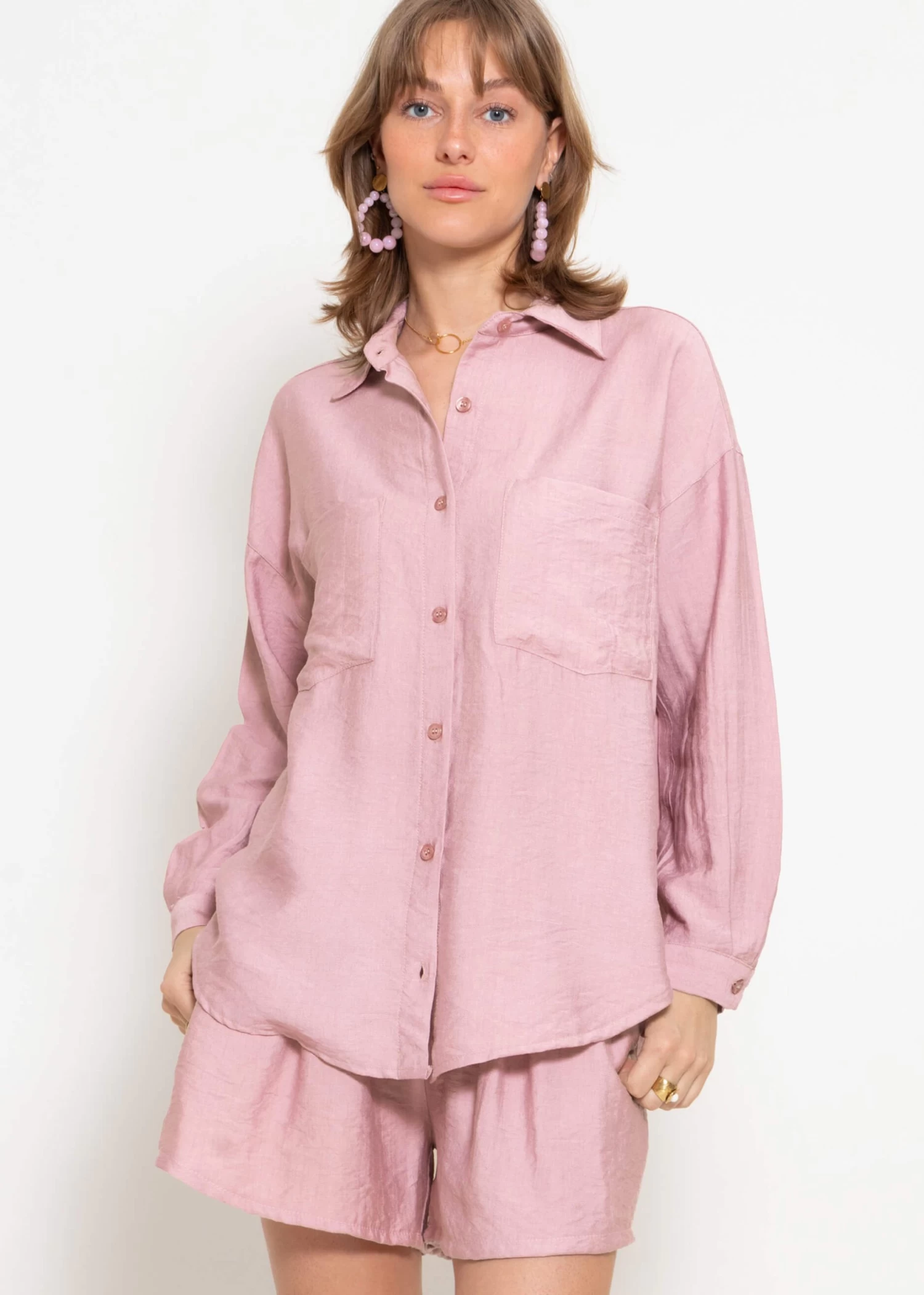 Oversize Bluse mit aufgesetzten Taschen in Altrosa