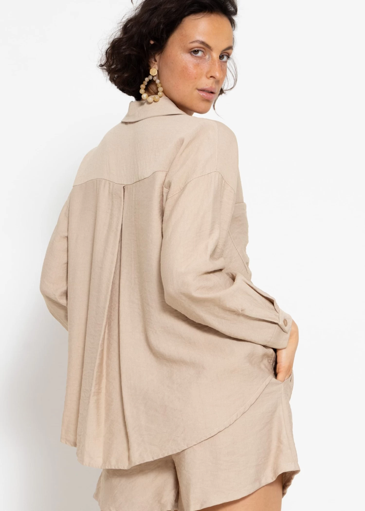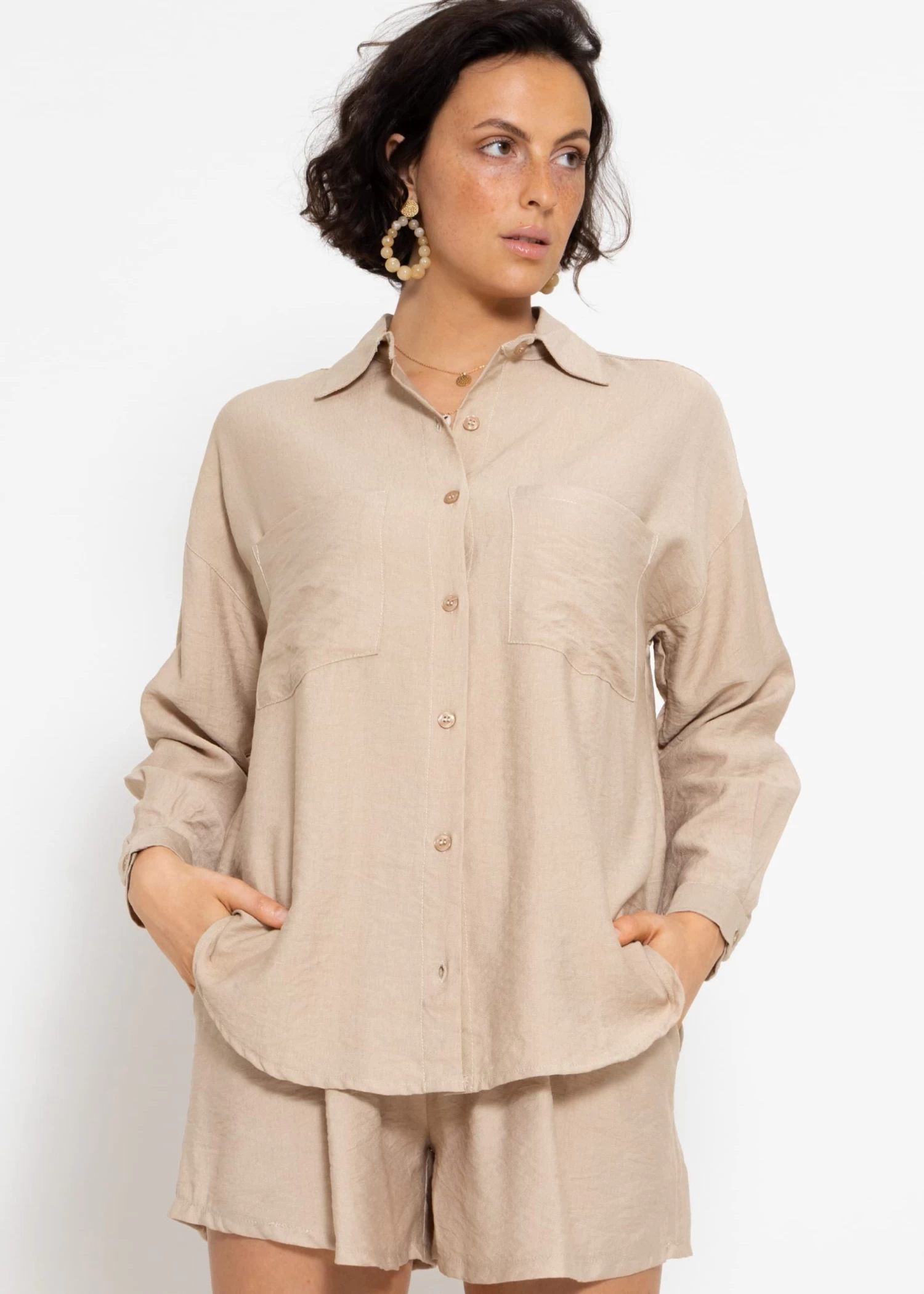 Oversize Bluse mit aufgesetzten Taschen in Beige
