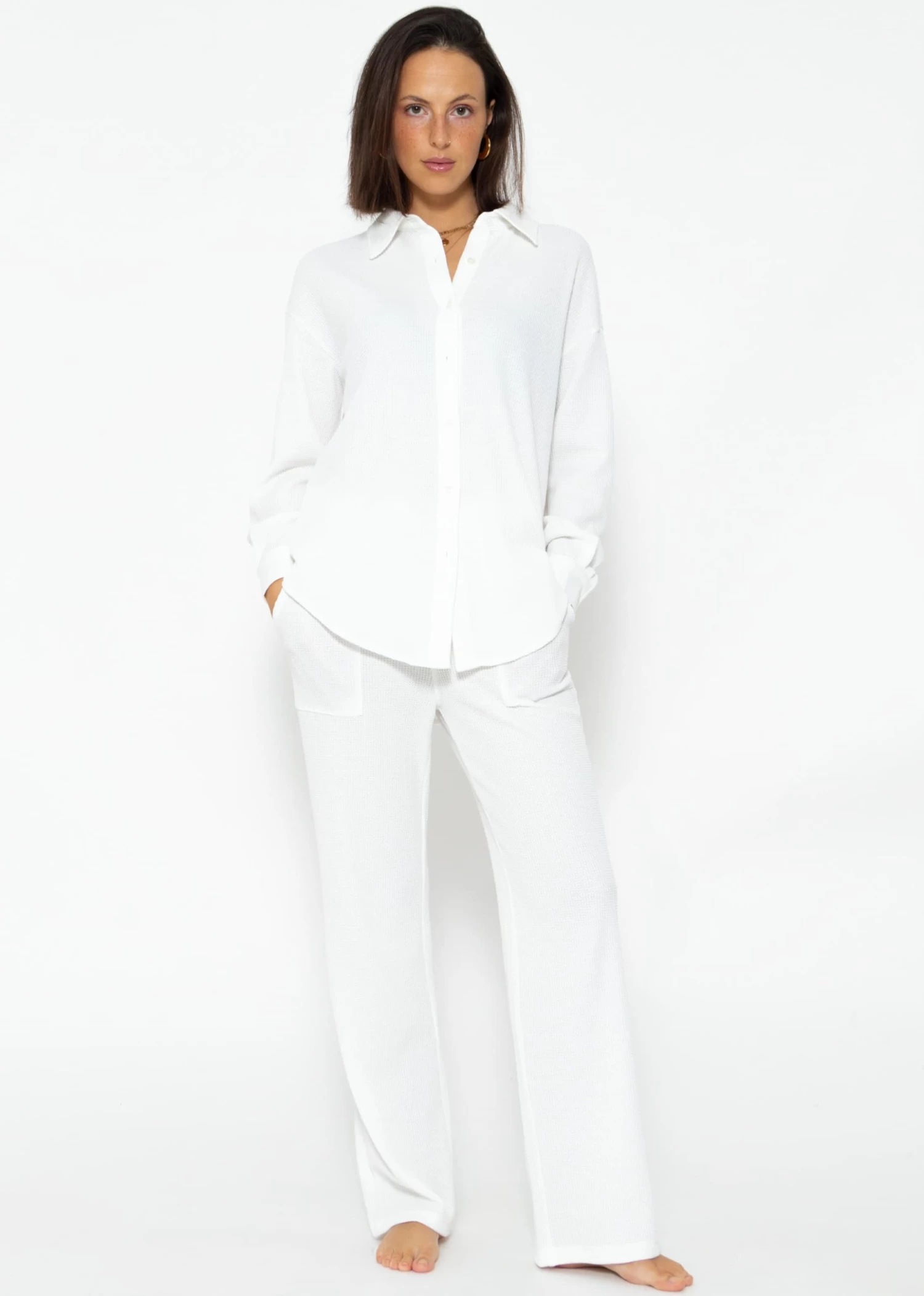 Oversize Waffelpiqué Bluse in offwhite