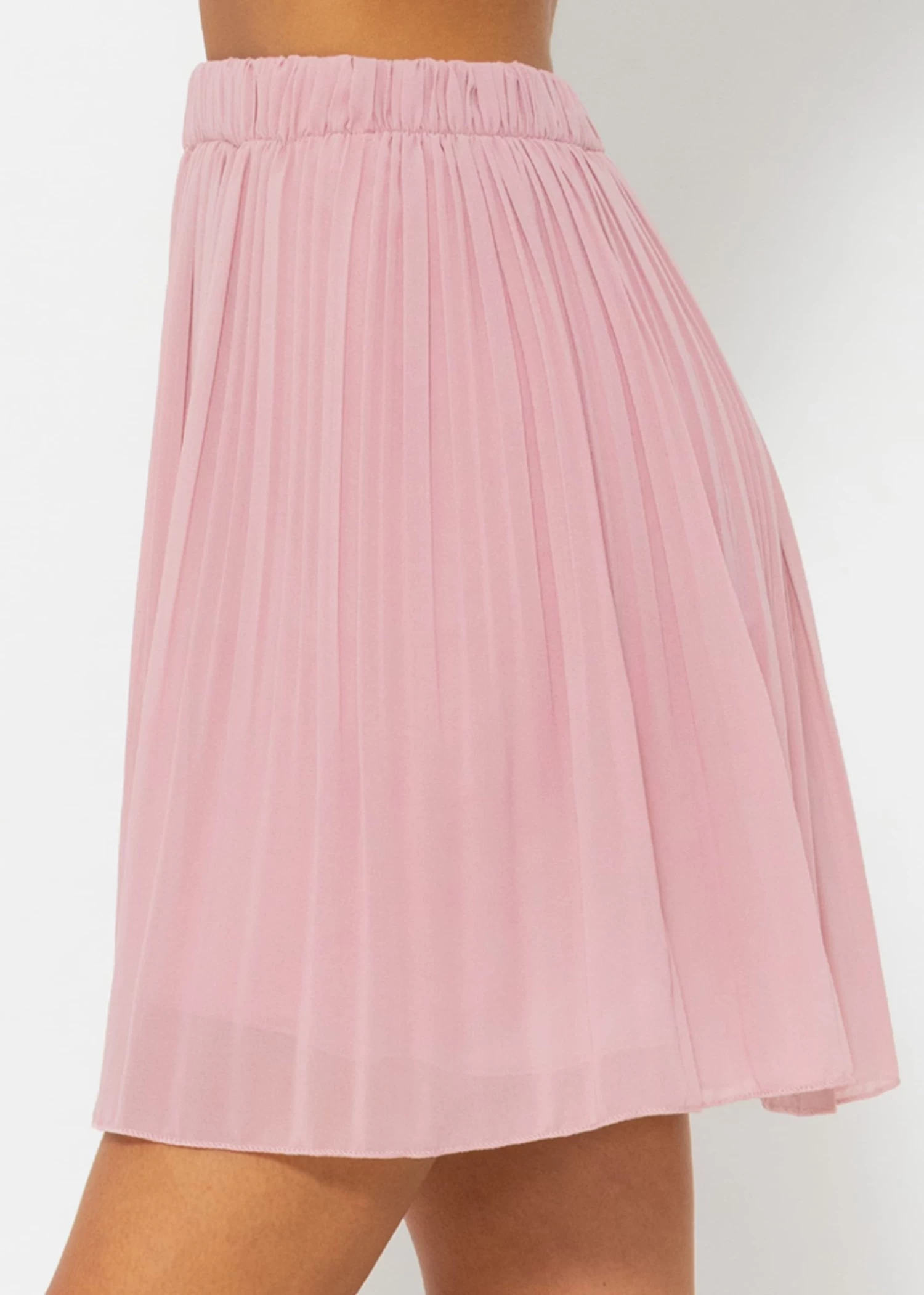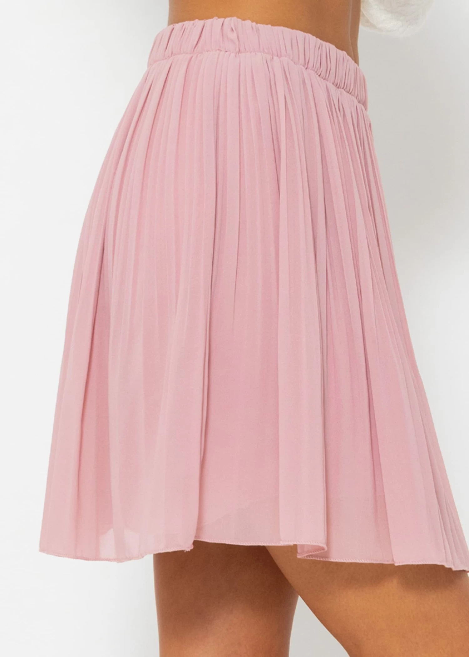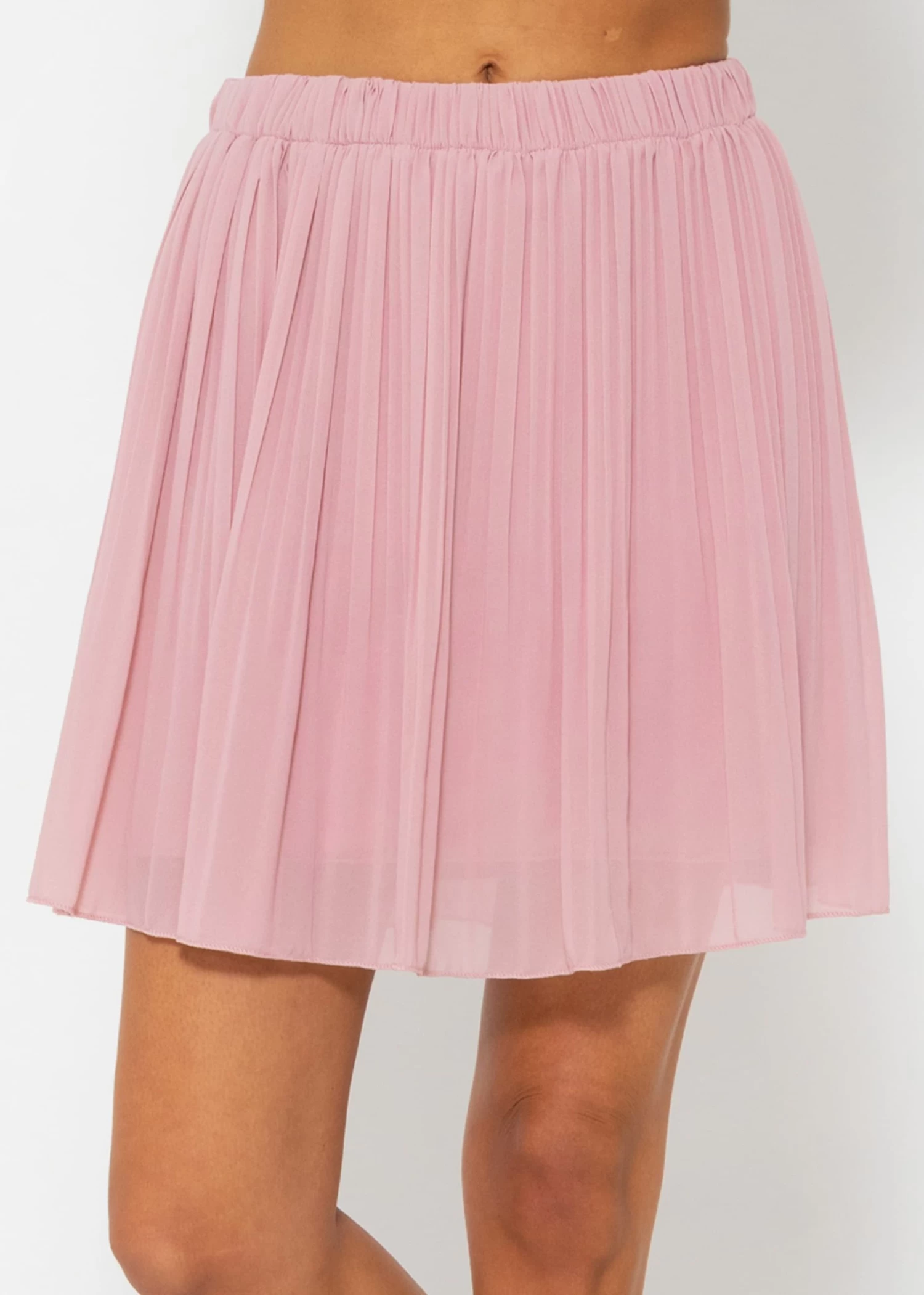 Gefütterter Rock mit Gummibund aus fließendem Chiffon. Der plissierte, nach unten offene Schnitt verleiht Leichtigkeit.