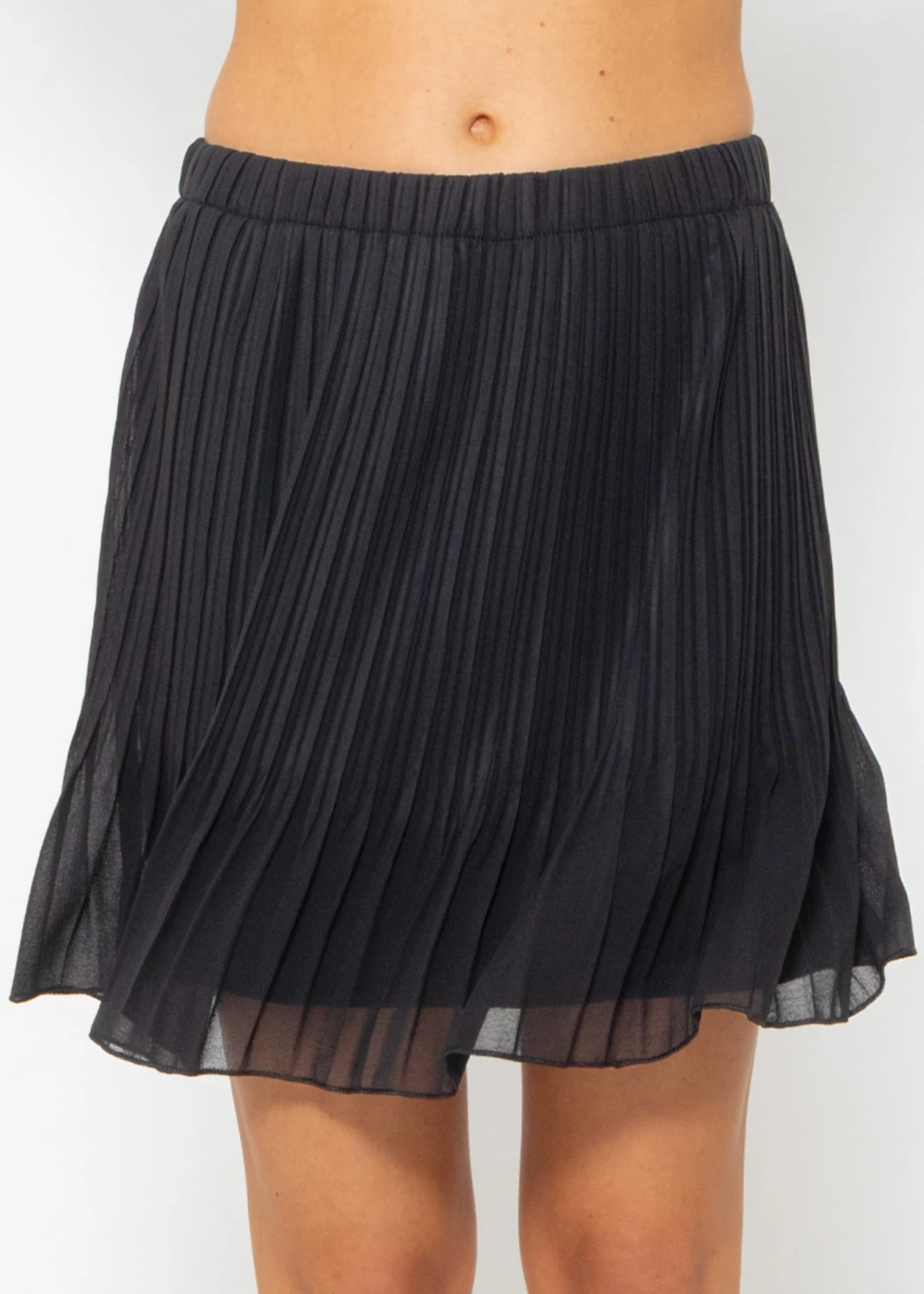 Gefütterter und plissierter Rock mit Gummibund. Das Material aus fliessendem Chiffon verleiht dem Rock ein leichtes und verspieltes Flair.