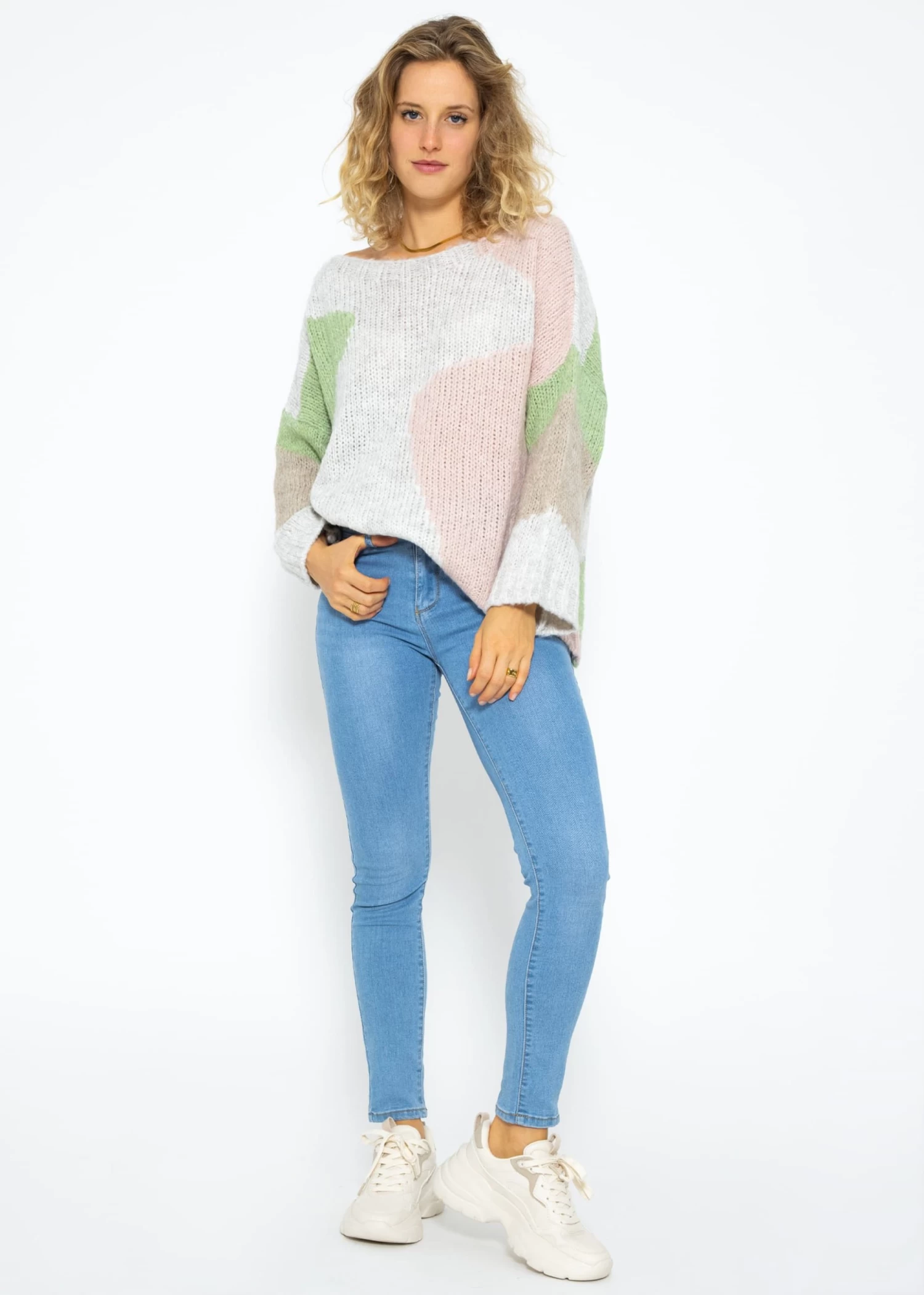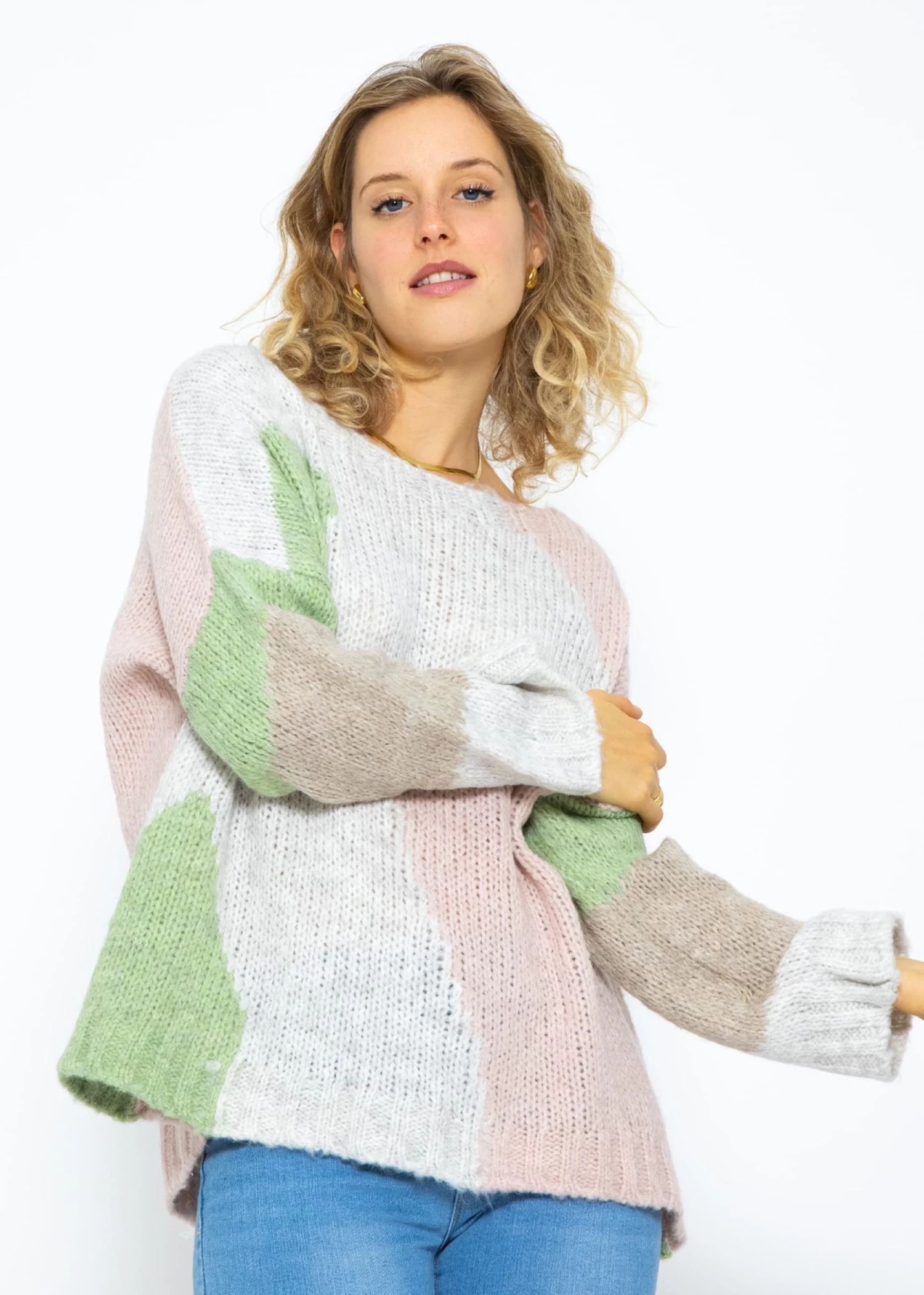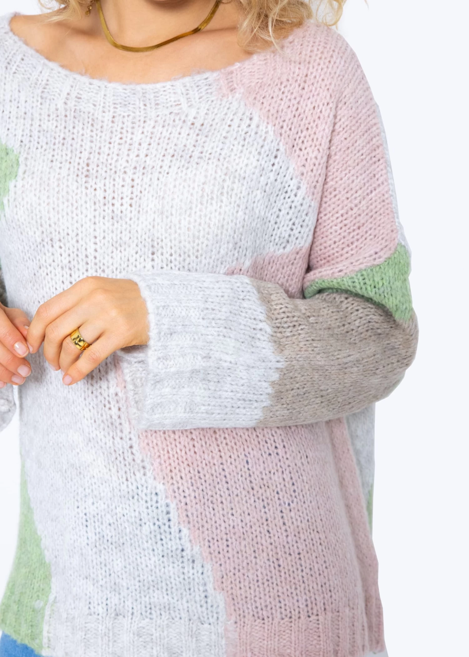 Pullover mit Color-Blocking in rosa-beige-grau-grün