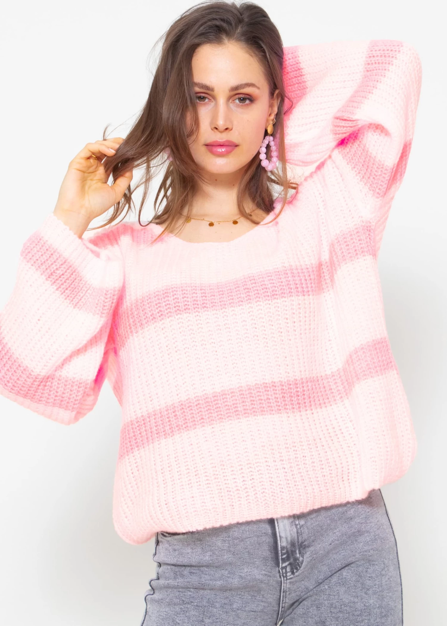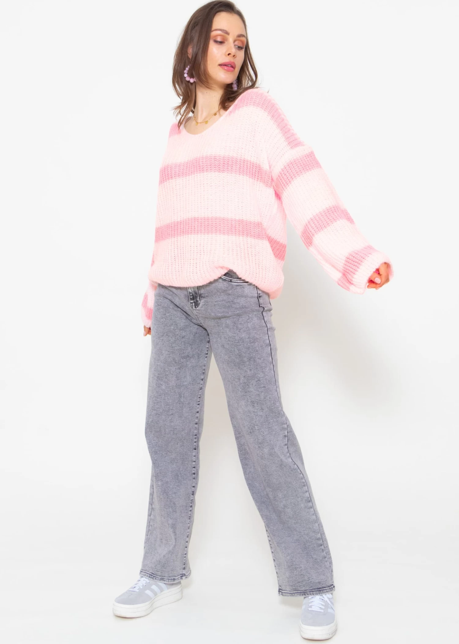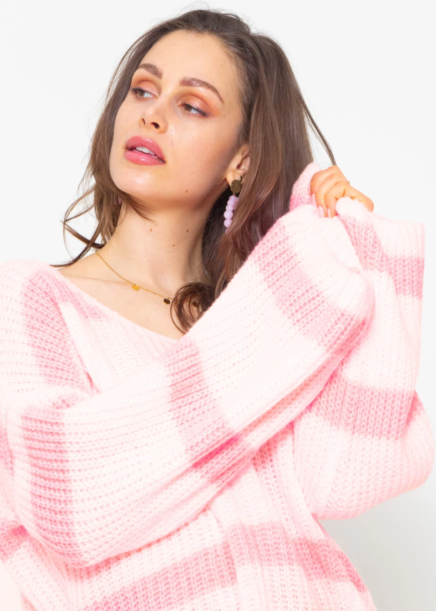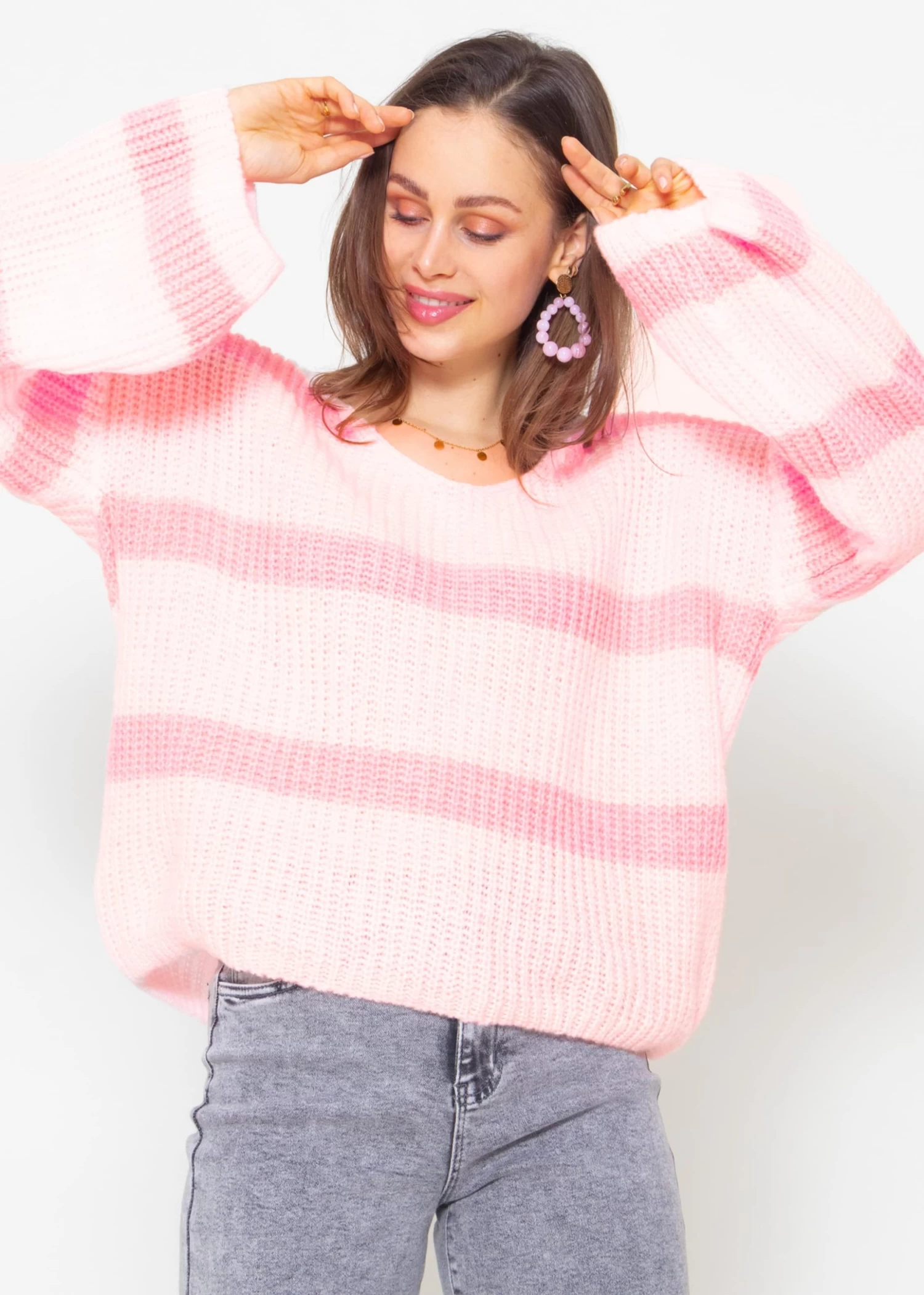 Pullover mit Streifen und V-Ausschnitt in Hellrosa und Rosa