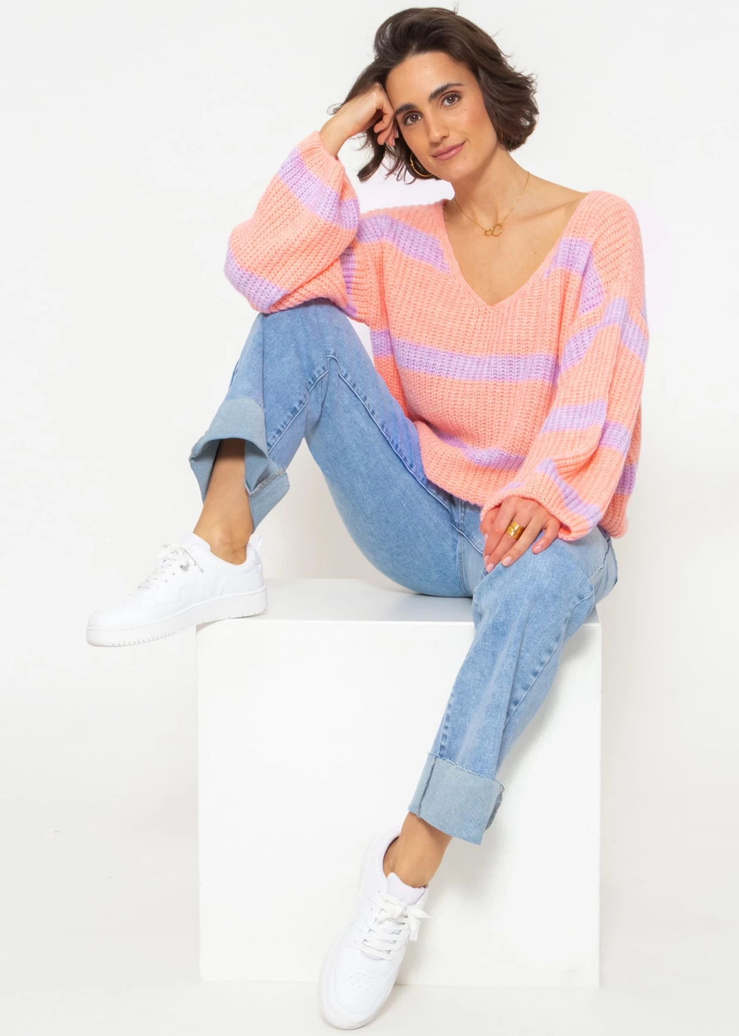 Pullover mit Streifen und V-Ausschnitt in Peach und Flieder