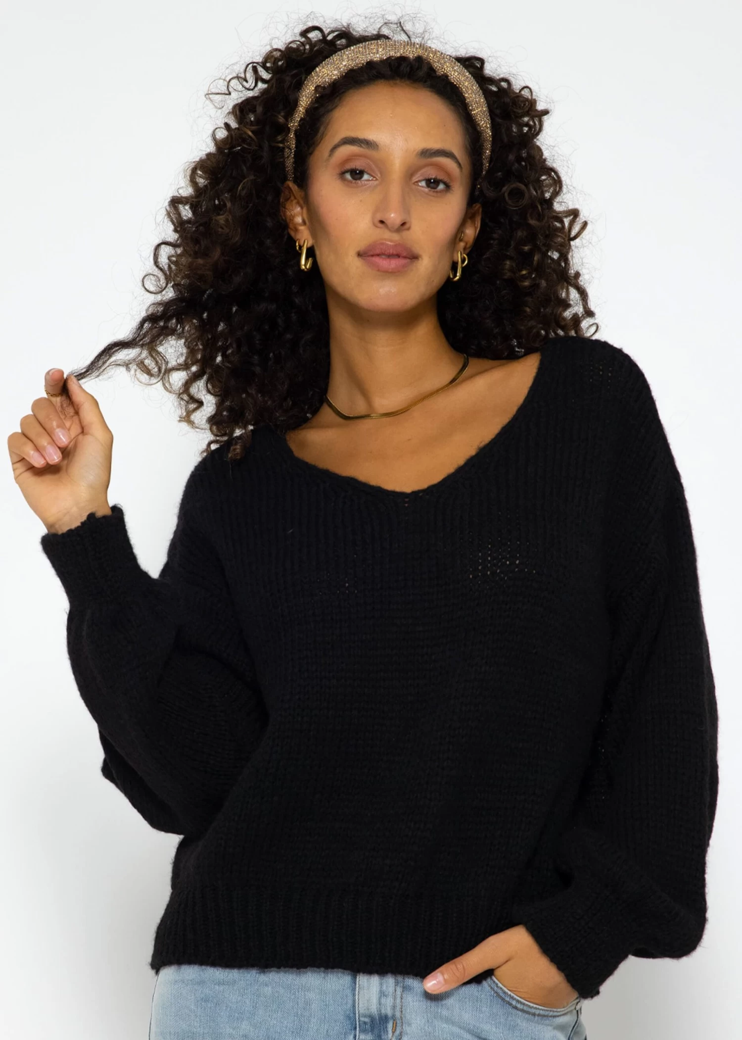 Oversize Pullover aus super weichem lockeren Strick. Der Pullover hat einen V-Ausschnitt und lange Ärmel mit Bündchen. Du findest diesen basic Pullover hier in mehreren Farben.
