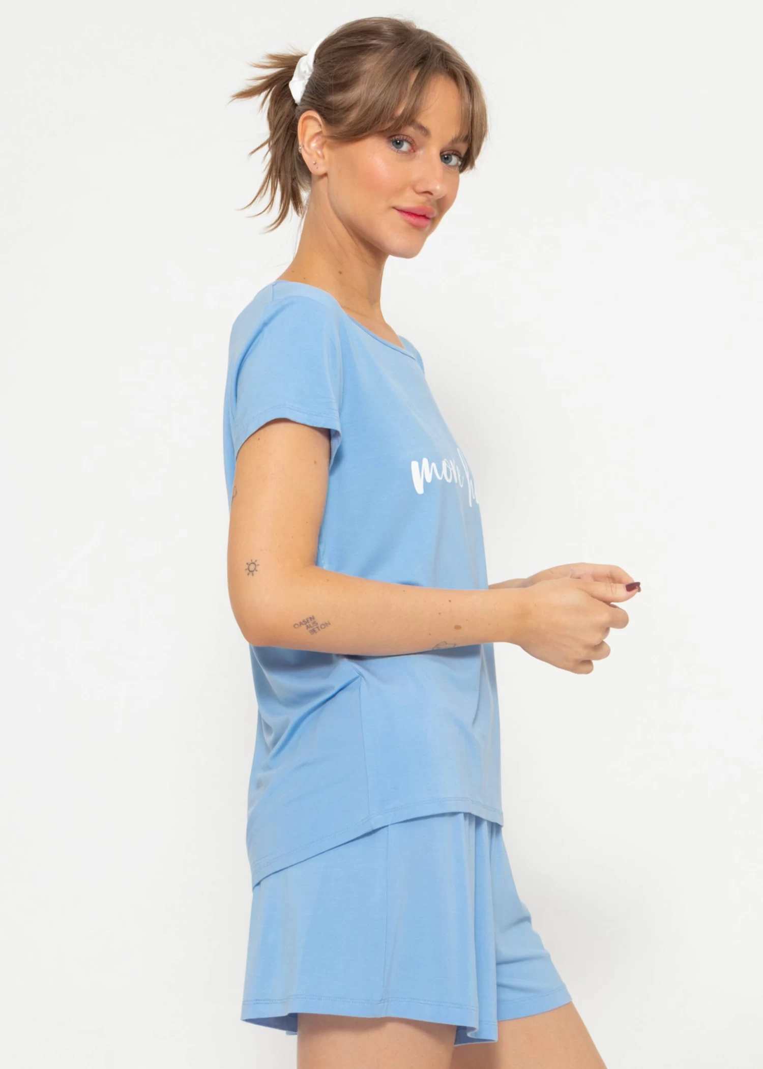 Pyjama Shirt mit Print in Hellblau