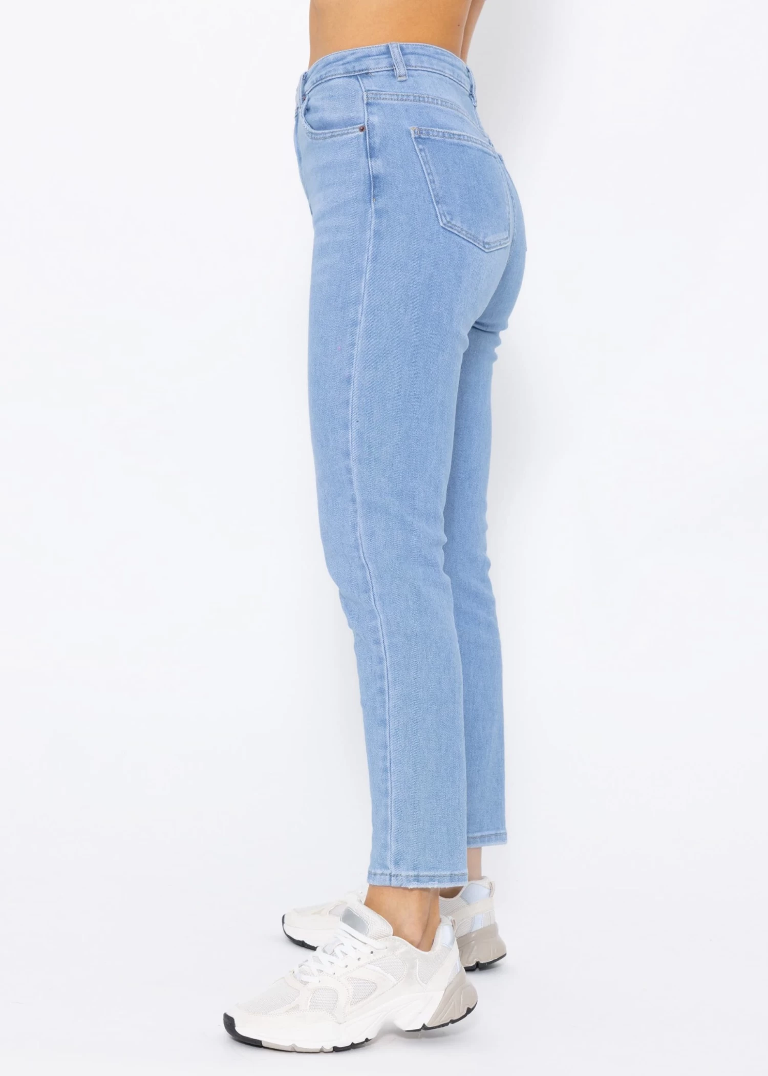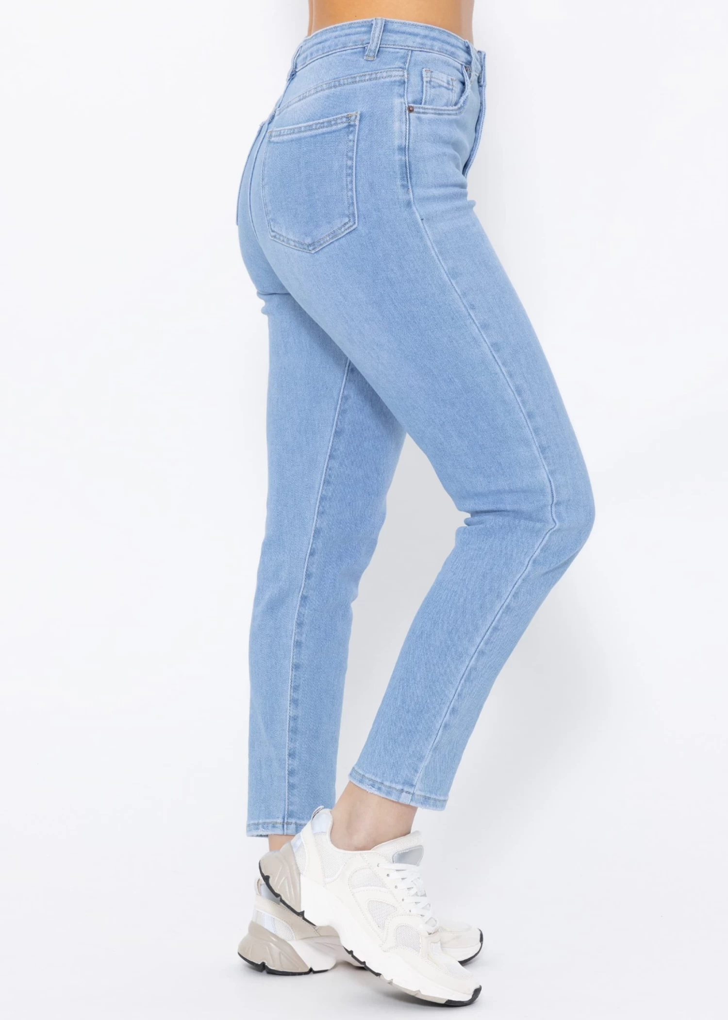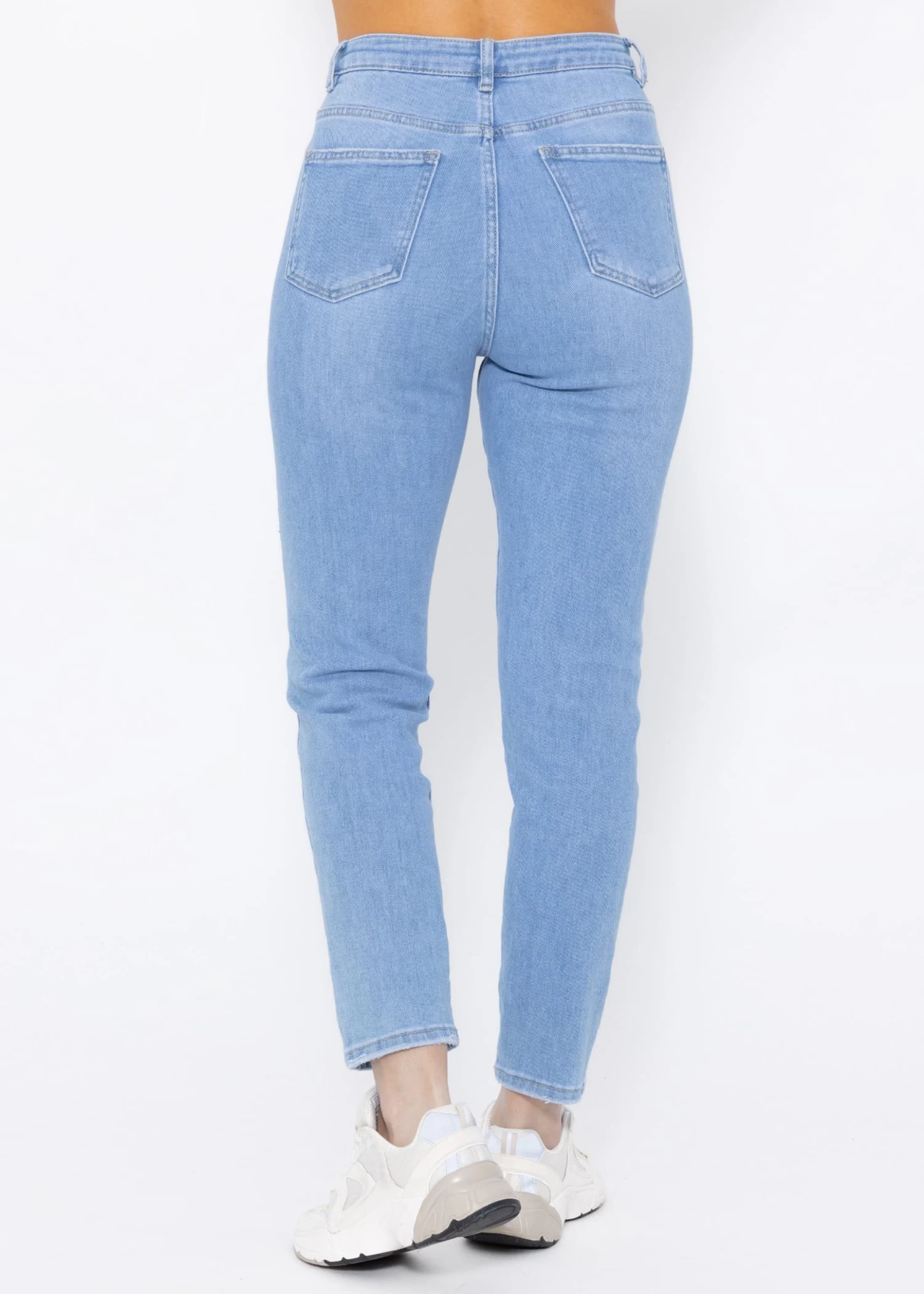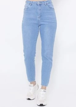 Relax Fit Denim-Jeans in Blau. Dieses Modell wurde aus einem angenehmen Baumwollgemisch gefertigt und präsentiert sich in einer bequemen, lässigen Passform. Der lockere Schnitt macht sie zu einem absoluten Wohlfühl-Piece. Die Hose besitzt einen Knopf- und Reißverschluss, High-Waist-Sitz und ist im 5-Pocket-Design gehalten. Kombiniert mit Sneakers und einem coolen T-Shirt, verleiht die Hose deinem Outfit einen angesagten Look.