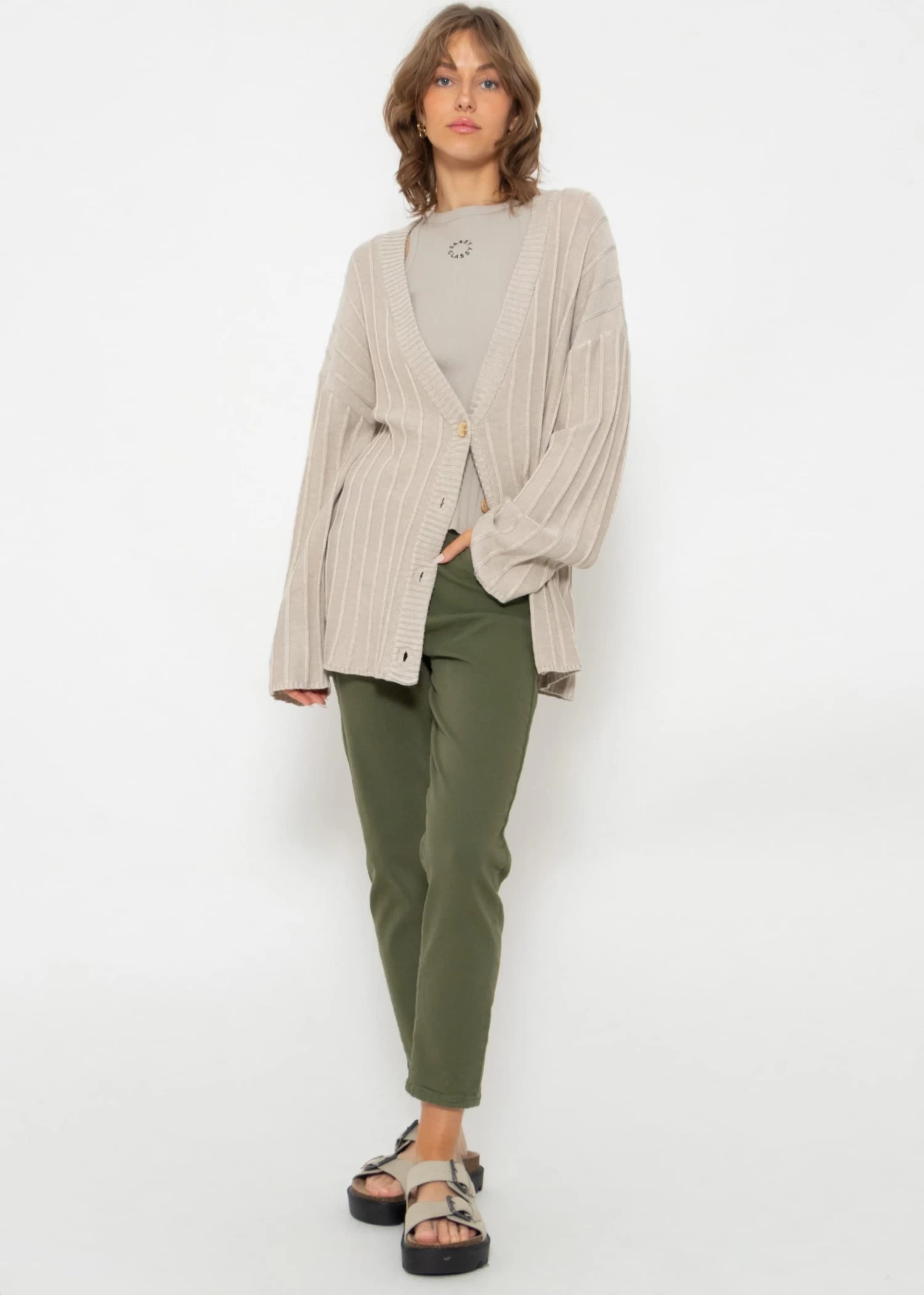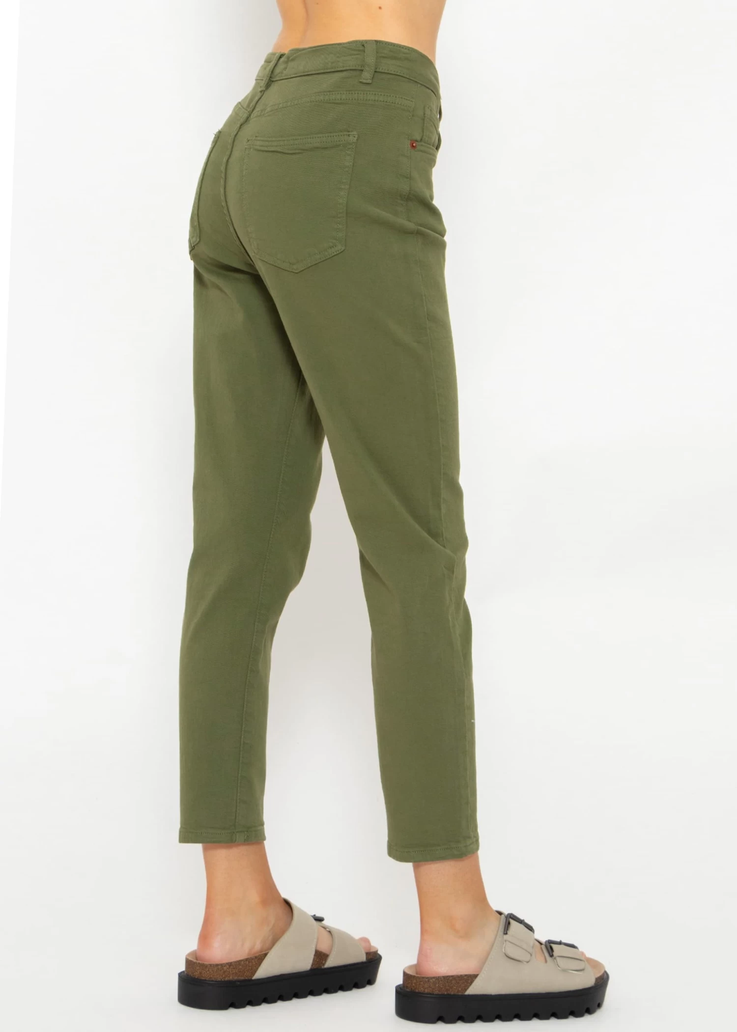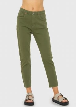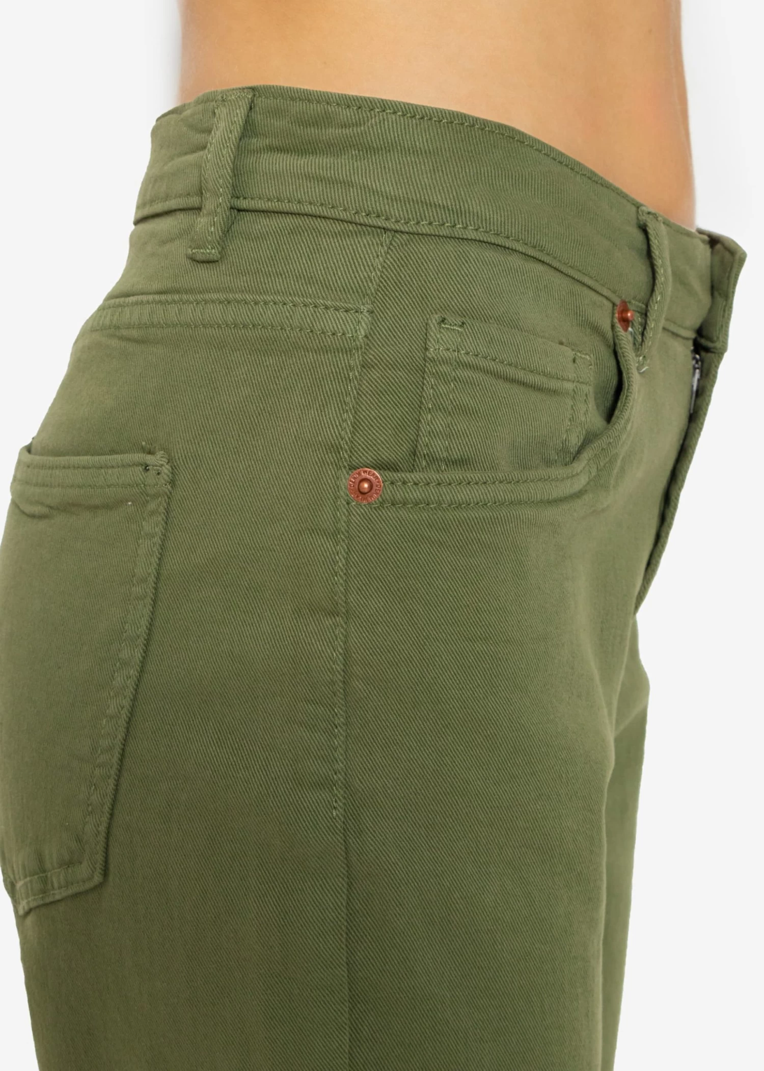 Relax Fit Denim-Jeans in Khaki. Dieses Modell wurde aus einem angenehmen Baumwollgemisch gefertigt und präsentiert sich in einer bequemen, lässigen Passform. Der lockere Schnitt macht sie zu einem absoluten Wohlfühl-Piece. Die Hose in heller Waschung besitzt einen Knopf- und Reißverschluss, High-Waist-Sitz und ist im 5-Pocket-Design gehalten. Kombiniert mit Sneakers und einem coolen T-Shirt, verleiht die Hose deinem Outfit einen angesagten Look.