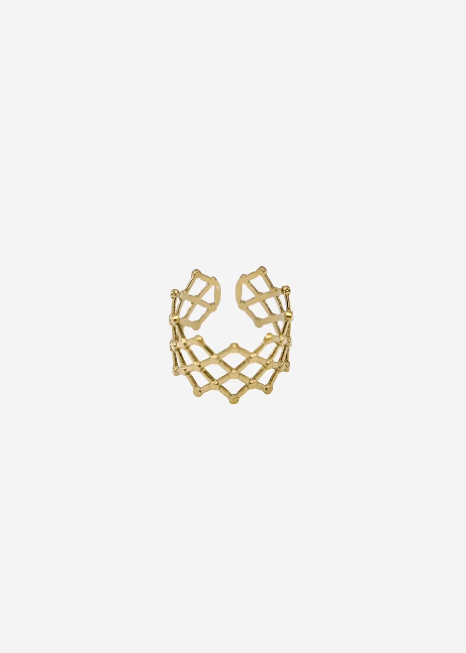 Ring aus Metall mit interessantem Gitter-Muster. Die Größe ist verstellbar.