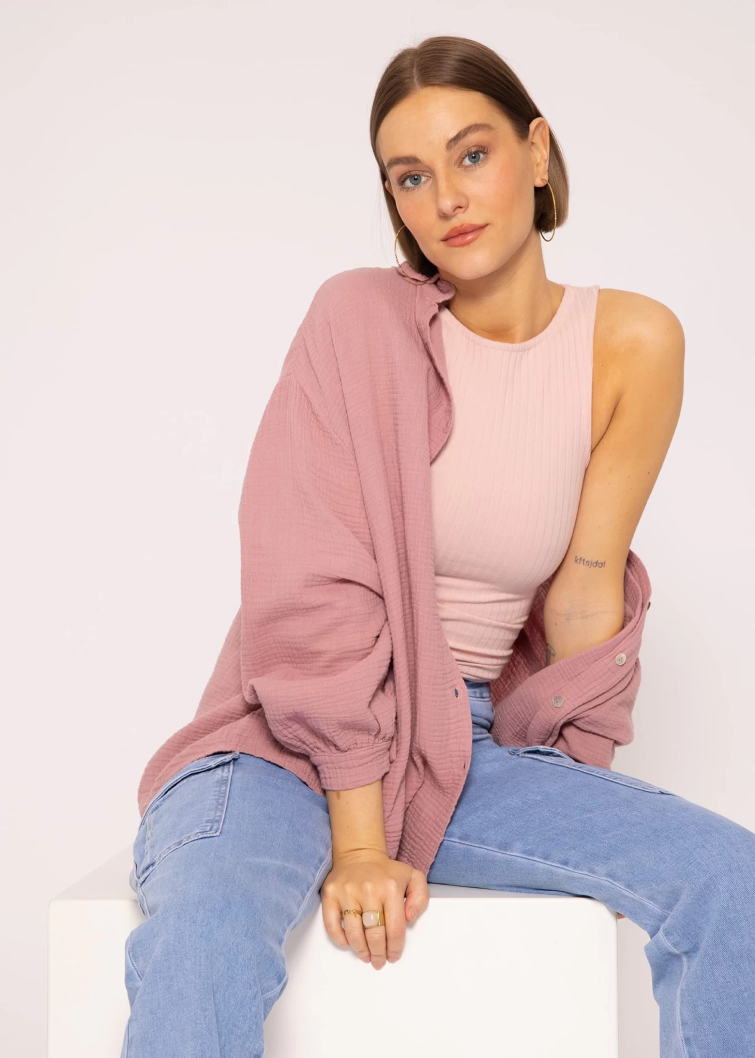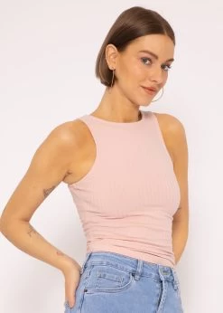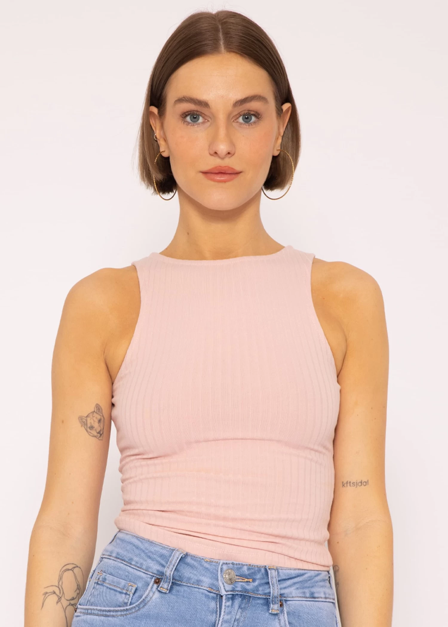 Baumwoll Rip Jersey Top mit hohem Rundhals. Es ist enganliegend geschnitten und somit ein idealer Unterzieher unter Cardigans oder Blusen.