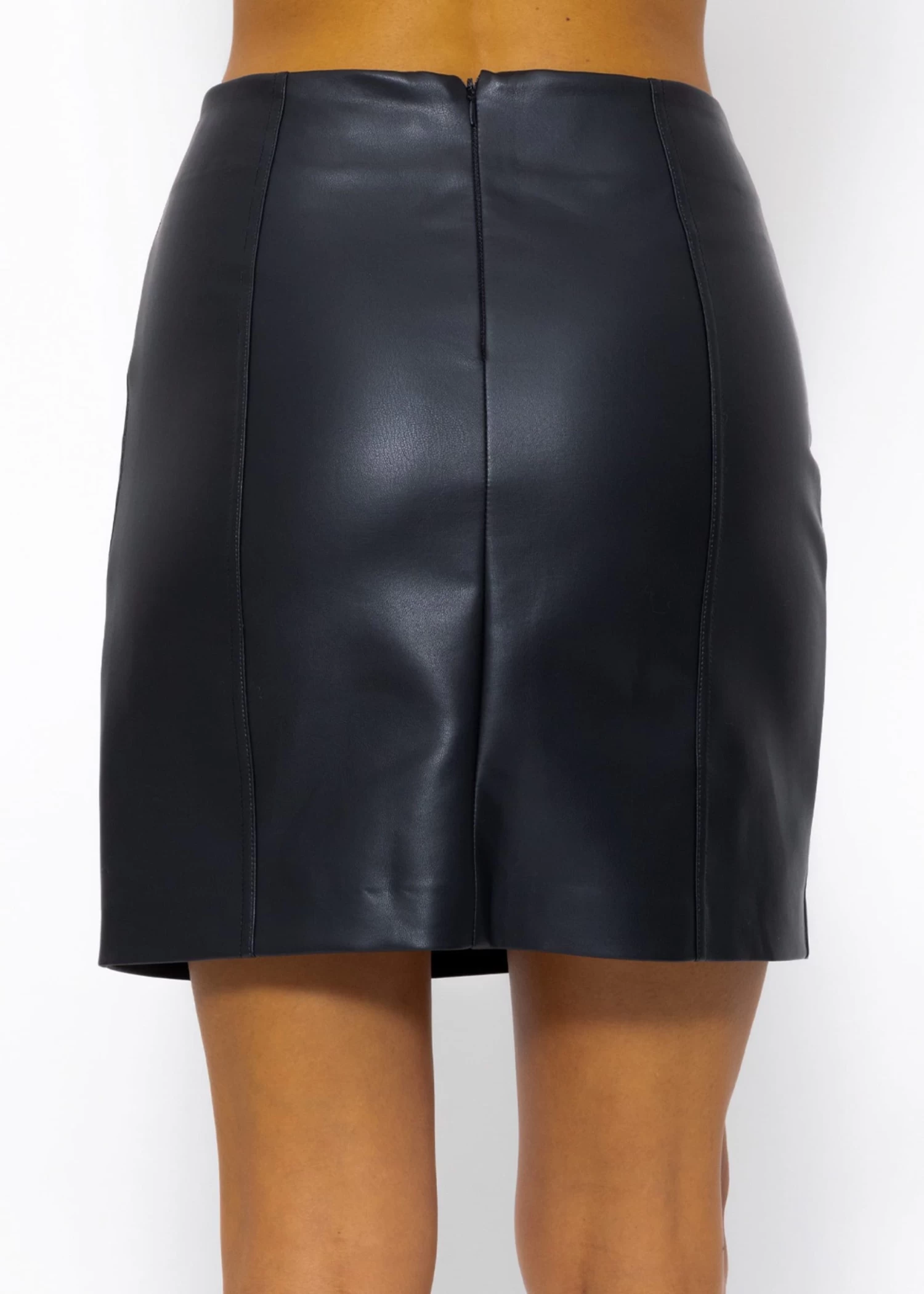 Dieser zeitlose und vielseitige Rock vereint modernen Stil mit edlen Details, die ihn zu einem Must-have in deiner Garderobe machen. Das Modell zeichnet sich durch prägnante Teilungsnähte aus, die nicht nur eine interessante Textur bieten, sondern auch eine schmeichelhafte Silhouette schaffen. Ein hinten mittig platzierter Reißverschluss setzt nicht nur einen markanten Akzent, sondern ermöglicht auch ein einfaches An- und Ausziehen. Hergestellt aus hochwertigem Kunstleder verbindet der Rock geschmeidigen Tragekomfort mit einem Hauch von Luxus. Egal, ob du ihn mit einer schicken Bluse für einen classy Auftritt oder mit einem lässigen Pullover für ein casual Outfit kombinierst, dieser Kunstlederrock setzt ein Fashion-Statement.