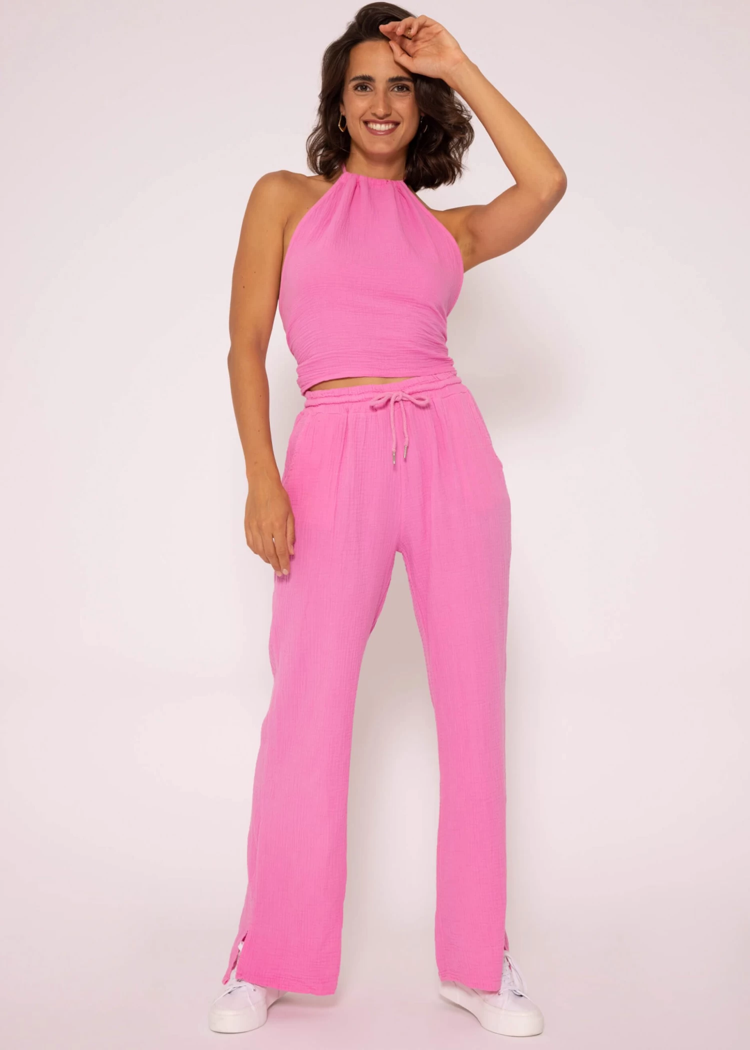 Dieses Top aus Baumwoll-Musselin ist ein wahrer Eyecatcher für deinen Sommer-Look. Das kurz gehaltene Modell im Halterneck-Stil verfügt über einen Tunnelzug am Ausschnitt und Bindebänder, die im Nacken individuell gebunden werden können. Um einen hohen Tragekomfort zu garantieren, kann der offene Rücken ebenfalls eigenhändig zugebunden werden. Trage dieses Must-Have zu einer High-Waist Shorts oder Jeans für einen angesagten Look.
