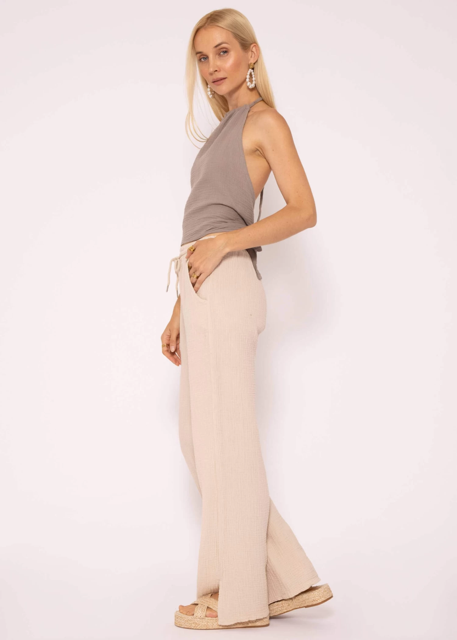 Dieses Top aus Baumwoll-Musselin ist ein wahrer Eyecatcher für deinen Sommer-Look. Das kurz gehaltene Modell im Halterneck-Stil verfügt über einen Tunnelzug am Ausschnitt und Bindebänder, die im Nacken individuell gebunden werden können. Um einen hohen Tragekomfort zu garantieren, kann der offene Rücken ebenfalls eigenhändig zugebunden werden. Trage dieses Must-Have zu einer High-Waist Shorts oder Jeans für einen angesagten Look.