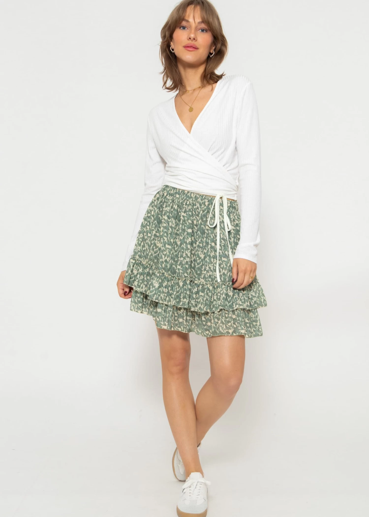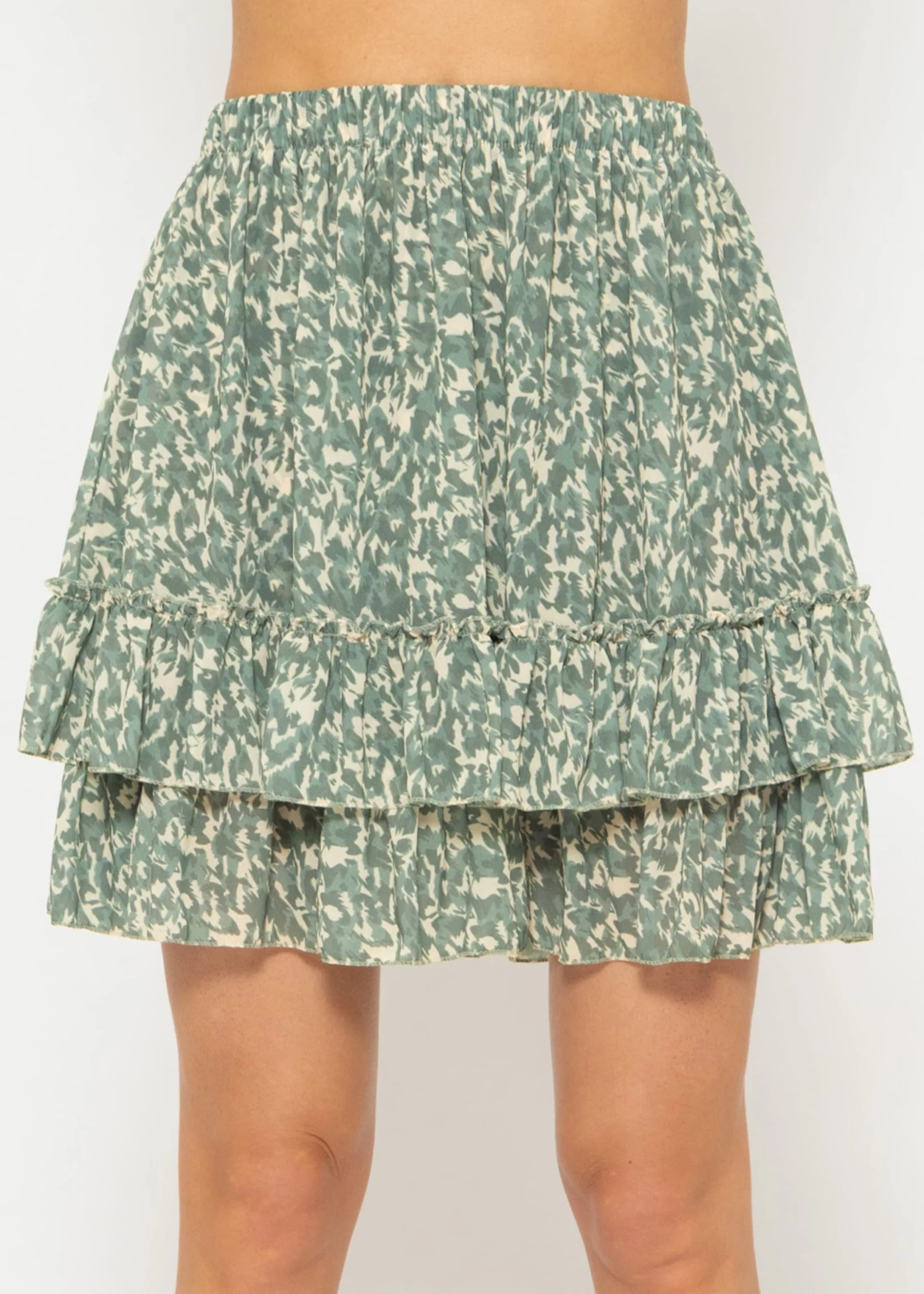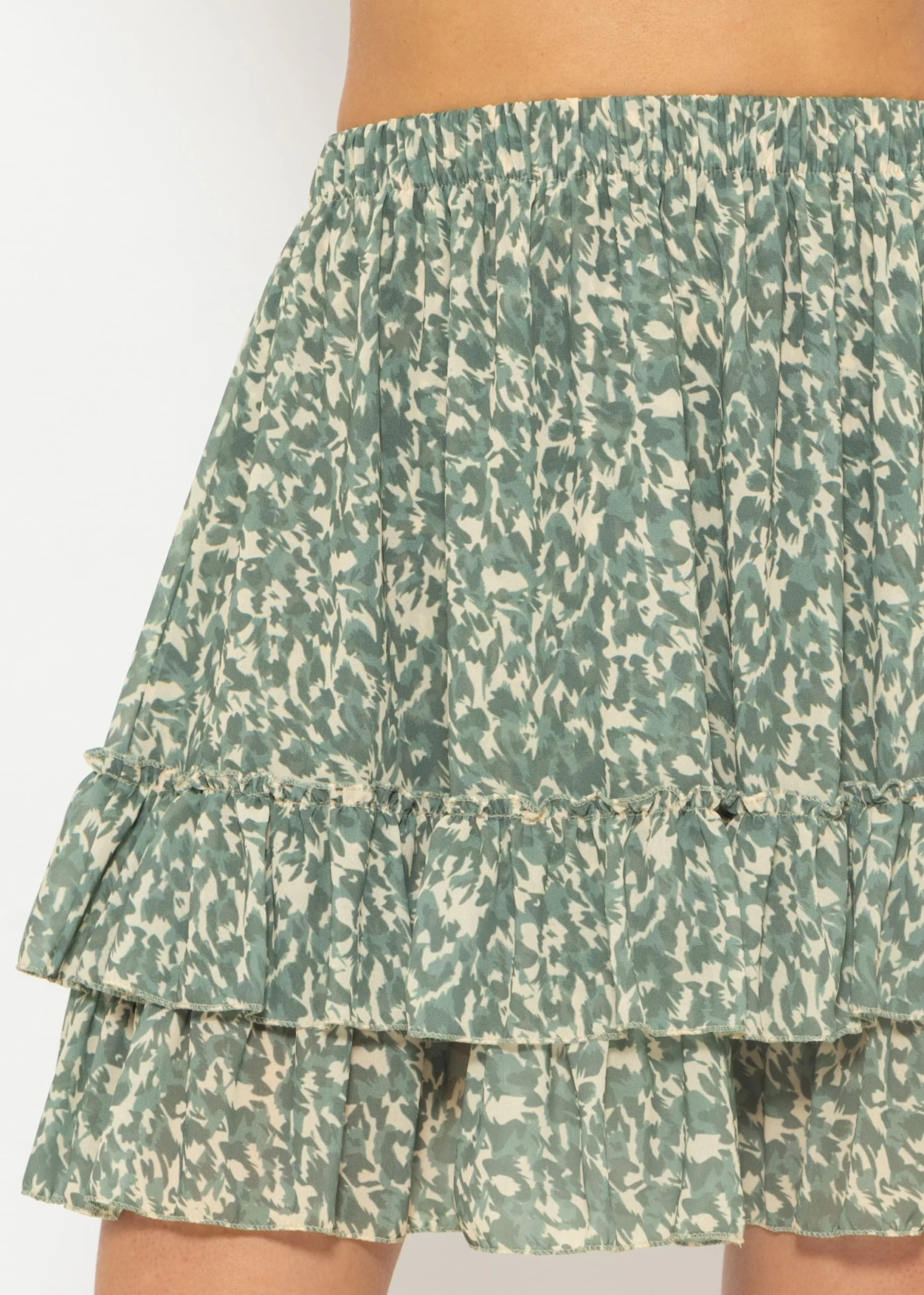 Rüschen Rock mit Print in Khaki