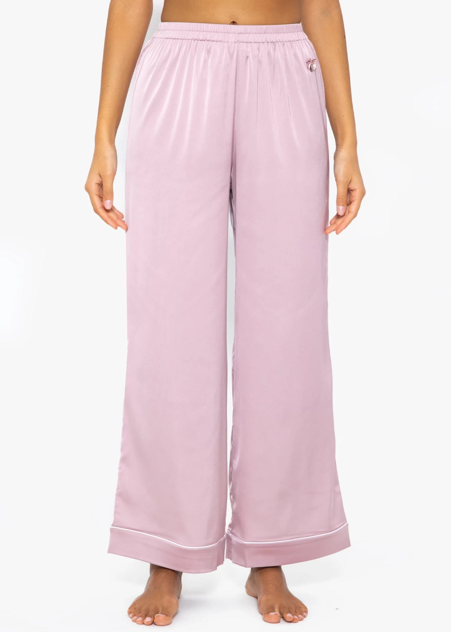 Das glatte Satinmaterial umschmeichelt deine Beine in sanfter Weichheit und sorgt zusammen mit der lockeren Passform und dem elastischen Gummibund für ein Gefühl von absolutem Komfort. Die Satinhose präsentiert eine elegante Paspelverzierung, die nicht nur raffiniert aussieht, sondern auch eine subtile Note von Luxus hinzufügt. Die kleine SASSYCLASSY Logo Schleife verleiht der Schlafhose einen süßen Touch und unterstreicht die Liebe zum Detail. Du kannst diese Pants mit der dazugehörigen Pyjamabluse oder mit dem dazu passenden Satintop kombinieren.