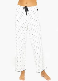 Tauche ein in eine Welt des Komforts und Stils mit dieser Schlafhose. Diese lange Pyjamahose ist ideal für gemütliche Nächte und bietet dir ein einzigartiges Schlaferlebnis. Das verspielte Pünktchenmuster sowie die Schleife am Bund verleihen dem Modell einen charmanten, femininen Touch, während der gewellte Saumabschluss eine zusätzliche Portion Eleganz verleiht. Der Gummizug im Bund gewährleistet eine bequeme Passform und ermöglicht maximale Bewegungsfreiheit, damit du dich in der Nacht frei und unbeschwert bewegen kannst. Am Bund schmückt die stilvolle gebrandete SASSYCLASSY Schleife die Hose und fungiert dabei als charakteristisches Element, das die Schlafhose veredelt.