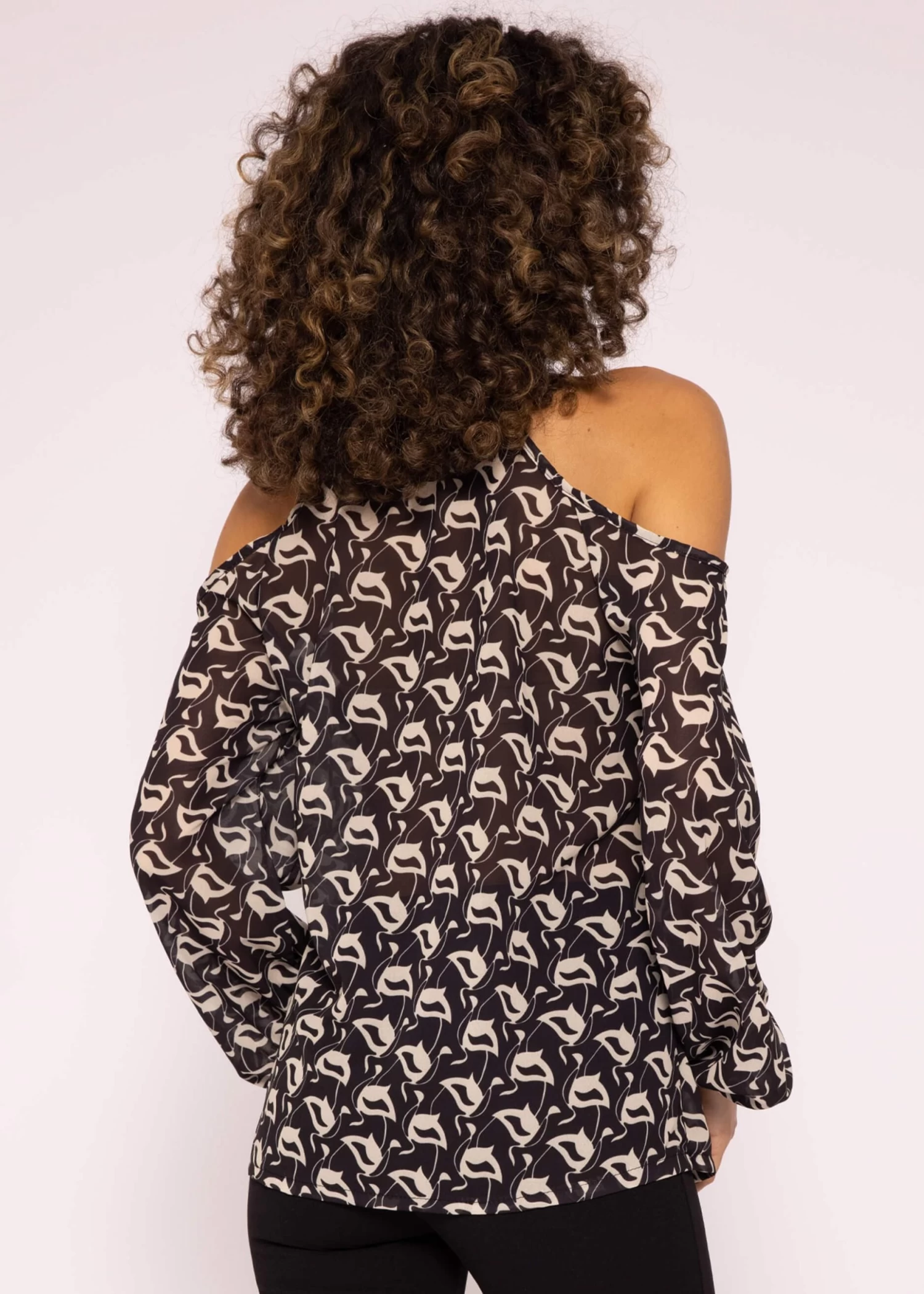 Schulterfreie Chiffonbluse mit Print in schwarz